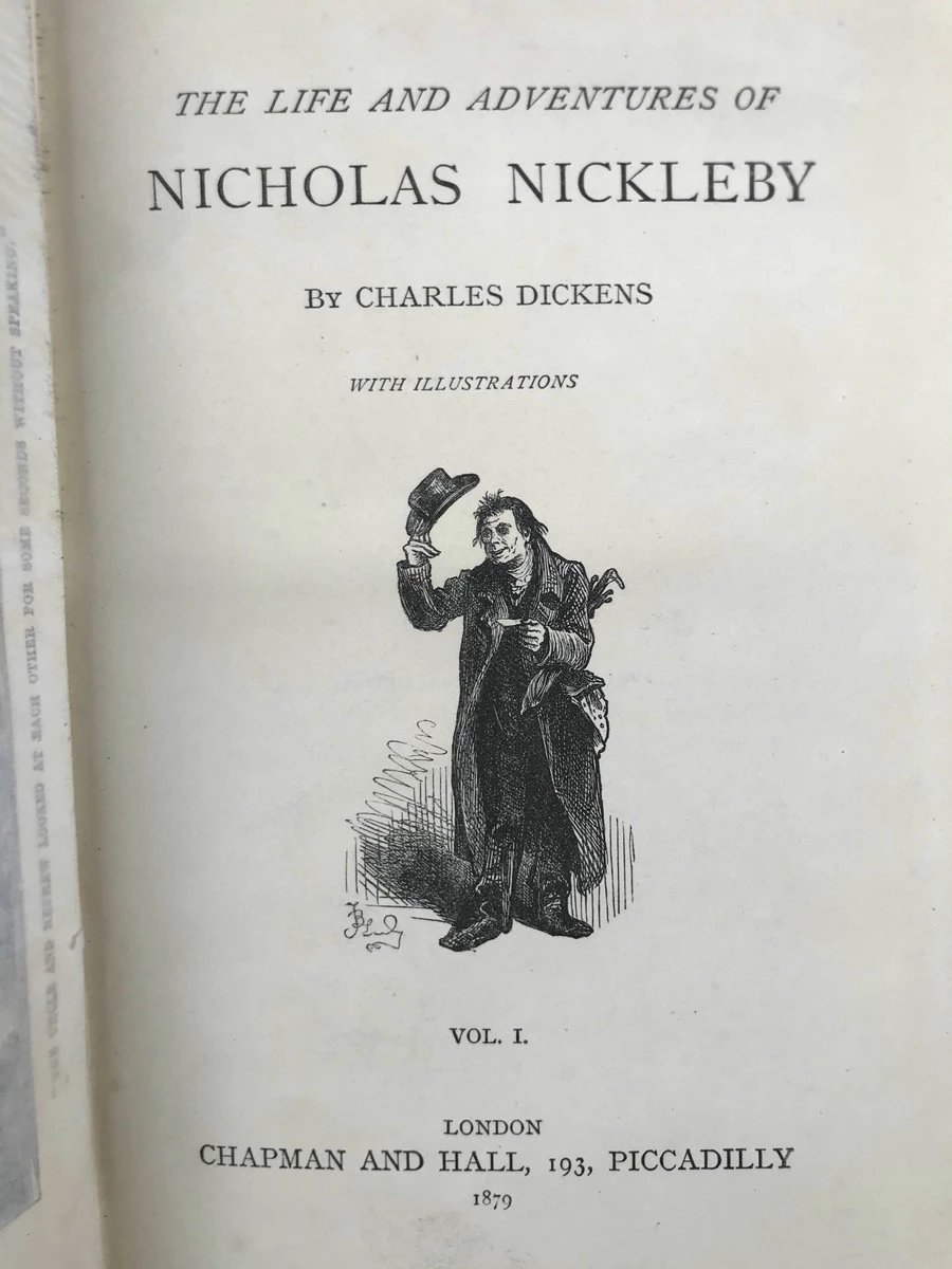 1879年 狄更斯《尼古拉斯·尼克贝》(全2卷) 约30幅插图 漆布精装大32开