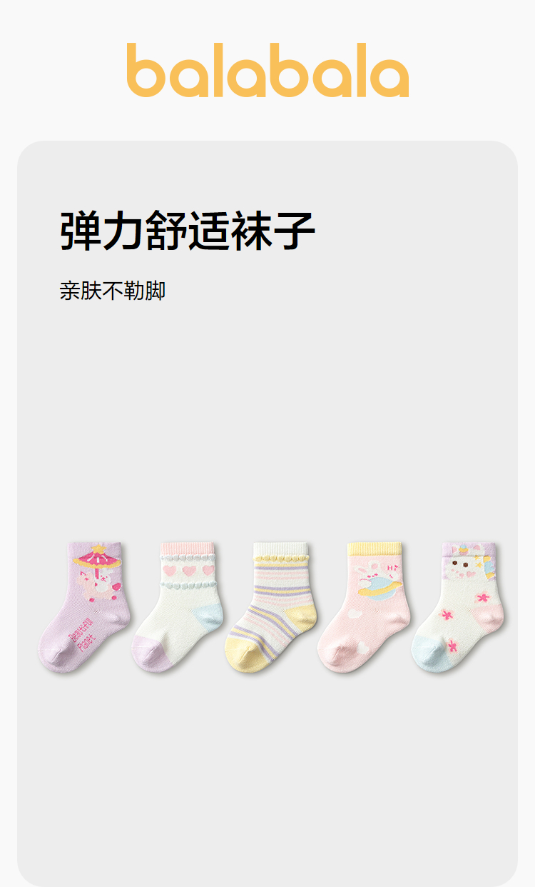 巴拉巴拉儿童袜子春秋保暖儿童学生袜透气男童女童小童宝宝五双装