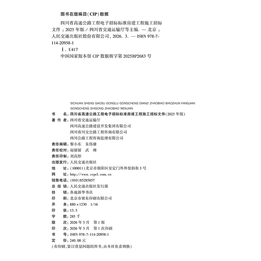 书名:四川省高速公路工程电子招标标准房建工程施工招标文件(2025年版)
