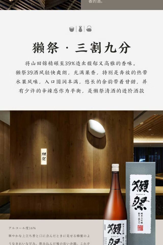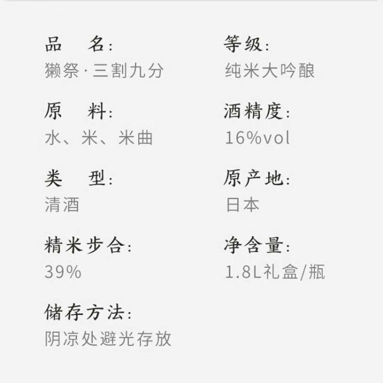 【锦高乐金】獭祭 纯米大吟酿 三割九分 1.8L