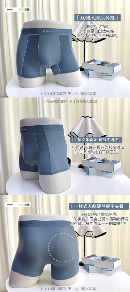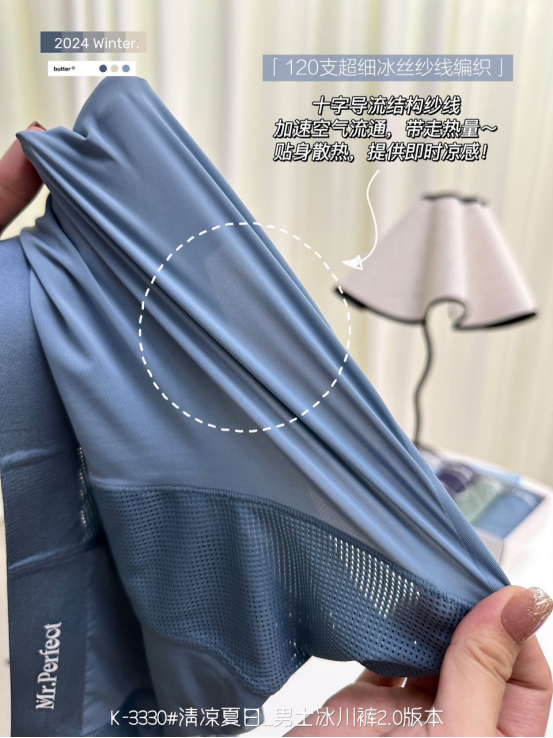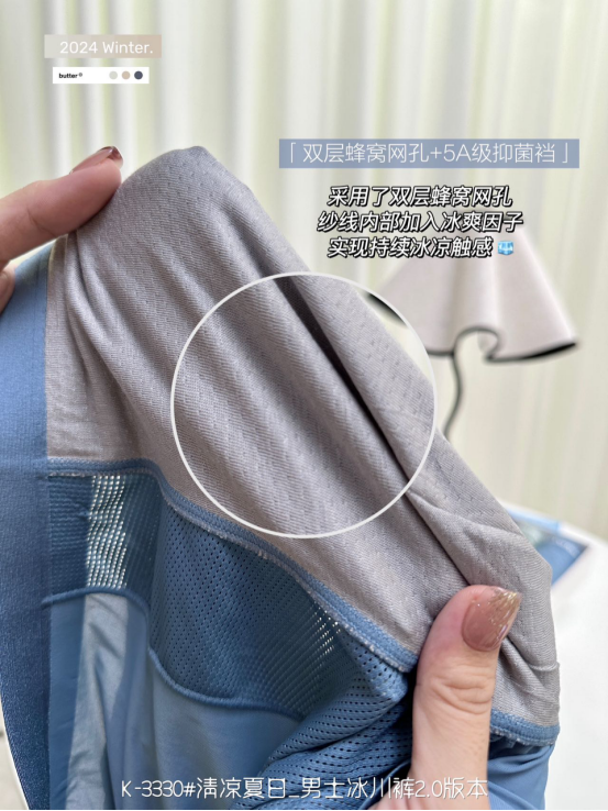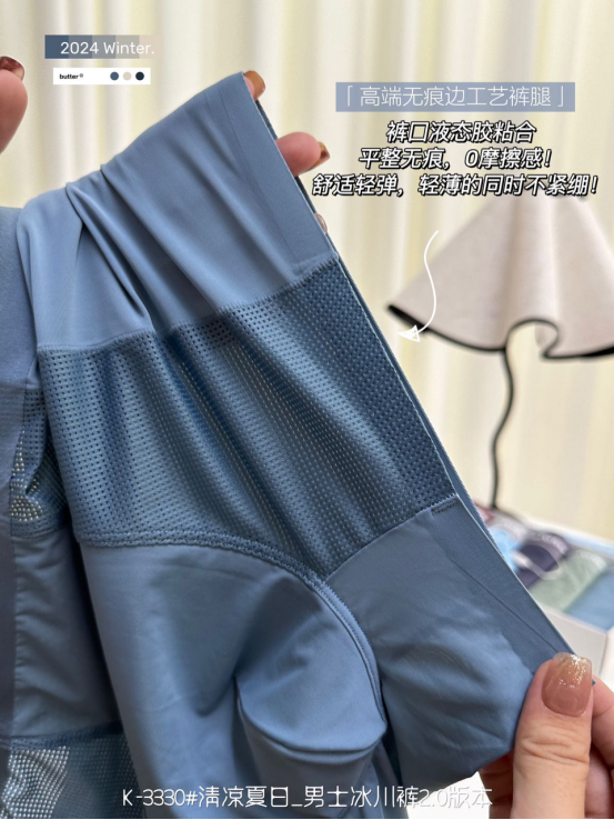遇上炎炎夏日,拥有一条清凉透气的内裤,对男同胞们来说简直是刚需! 『冰川裤2.0版本』这次升级了全裤5A抑菌! 采用了面膜式仿肤质触感的氧气冰丝面料,专为夏季而生!