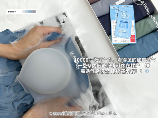测试①看到效果这么好,忍不住给大家种草,10000+微透气孔, 看得见的加倍透气,即使4层内裤叠在一起,都无法阻挡透气! 拯救男同胞们出“苦海”的好内裤他就是『冰川❄裤』