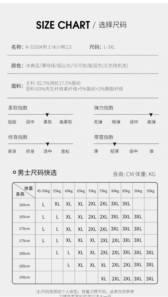 先进的德国热压技术工艺,打造无痕0束缚的穿着体验,高弹特别是腰部这块, 有大肚腩的穿着不勒痕,裤腿之间的衔接处理的很好,怎么动都不露痕迹不会移位!