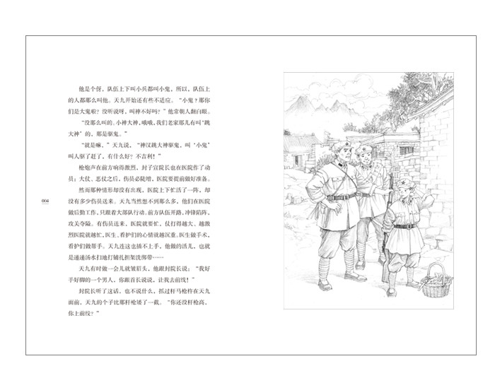 天九甚至想笑一下,笑着跟英秀说,姐,你别这样,姐你别难过。首长说过哩,英雄要有英雄的样子,为工农牺牲,是值得的,名垂千古。我是为什么?为队伍呀!队伍是工农的队伍,我为队伍而死当然是为工农而死,是不?天九想说,但做不到。他知道身上的阵阵剧痛让他的眼不像眼,鼻子不像鼻子,嘴不像嘴。眼本来就睁不开,鼻子呢一定红红的,嘴让疼痛扭曲了歪着,牙齿紧咬,咯吱咯吱响。他的脸像麻花一样被剧痛扭曲了,眼睛鼻子嘴还有耳朵,都不在原来的位置上。天九不想这样,但他忍不住。他咬了咬牙,但他没办法控制脸上那些神经。那些神经像被一只魔鬼的手支配着,让他的脸歪曲着,身子抽搐着,让他完全失去了英雄的模样。他不想这样。