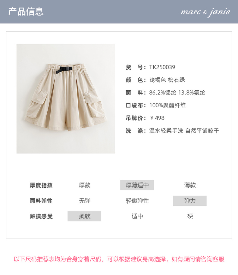 【商场同款】马克珍妮女童山系户外工装速干裤儿童裤子春夏250039