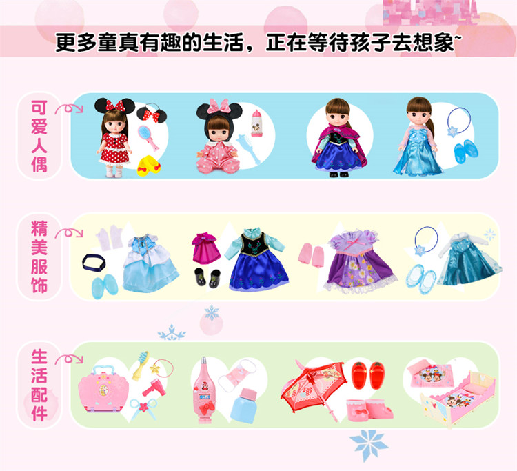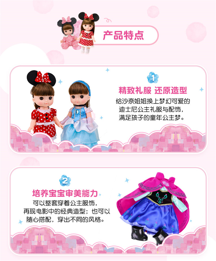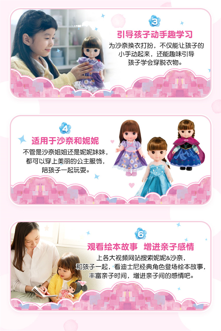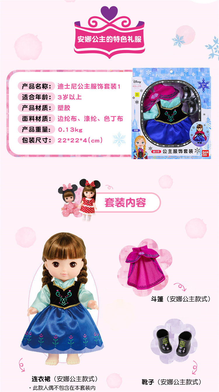 万代Bandai 妮妮和沙奈娃娃换装玩具服饰套装冰雪奇缘艾莎安娜
