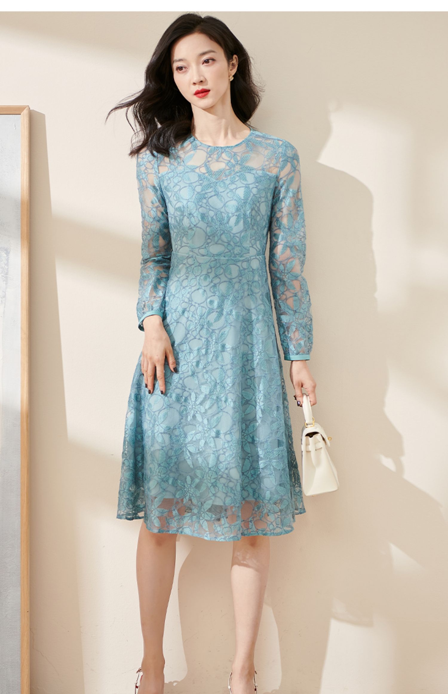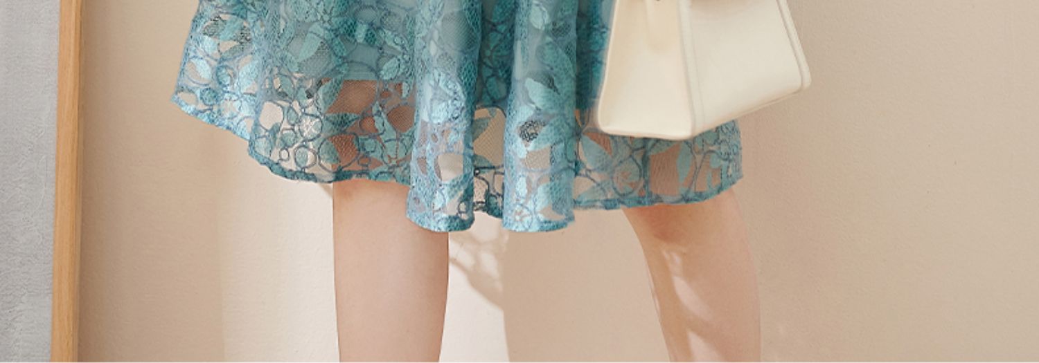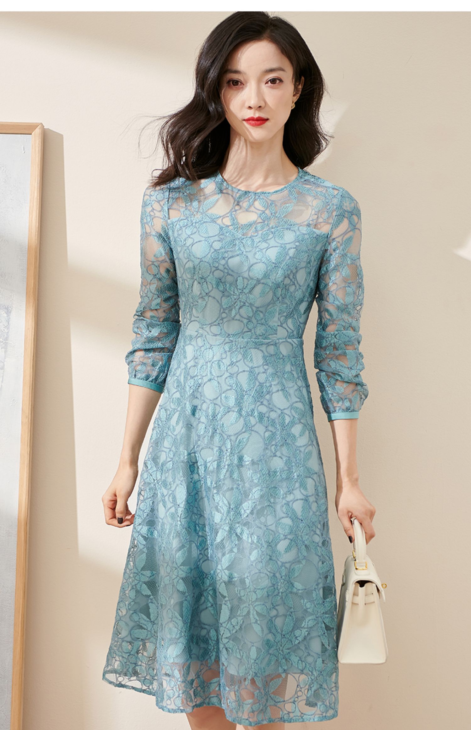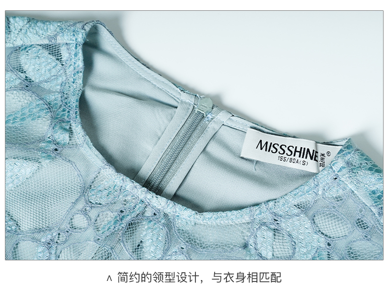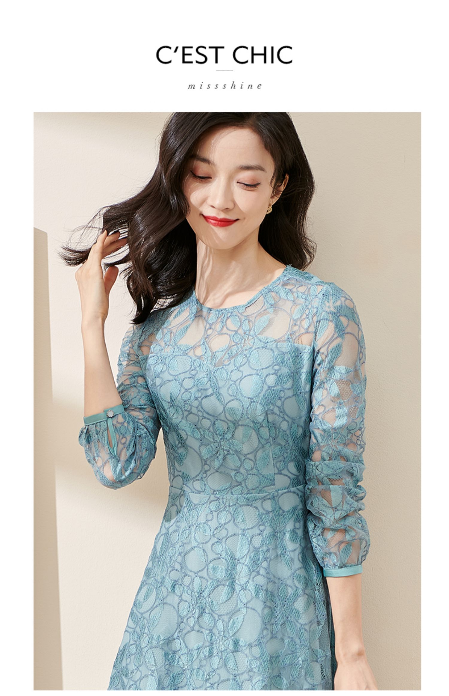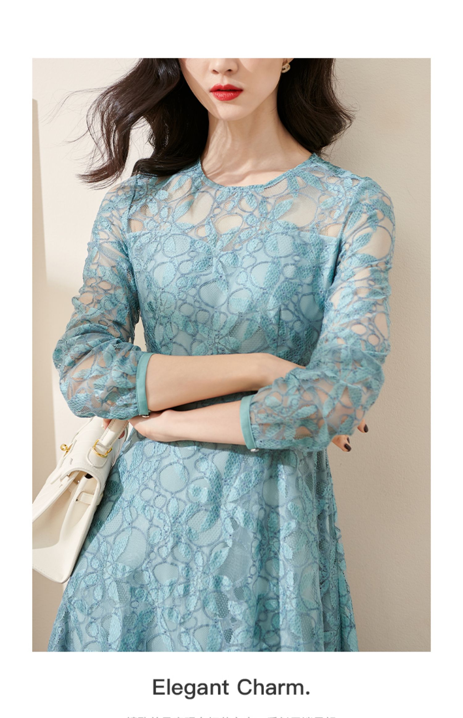 剩S/L/XL 米思阳2026春季新款温柔淑女大摆连衣裙勾花镂空优雅蕾丝裙0077