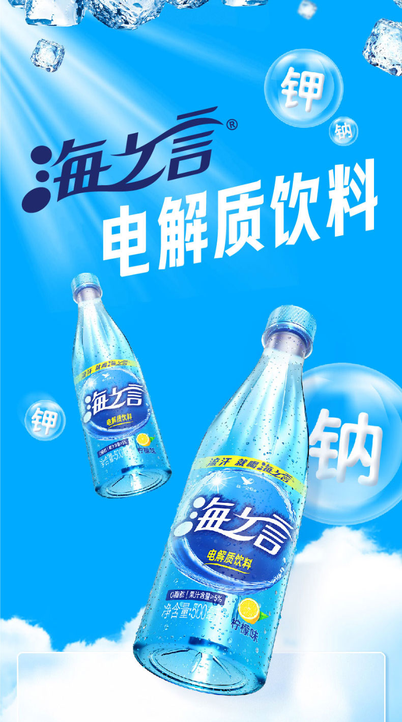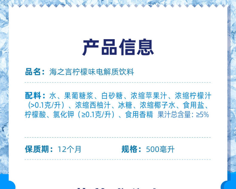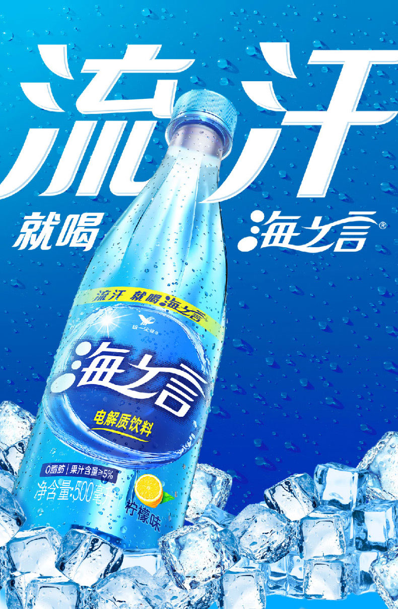 【统一】电解质饮料 海之言 (柠檬、百香果、蓝莓)清爽果汁0脂肪500ml/瓶 15瓶/箱 12个月)