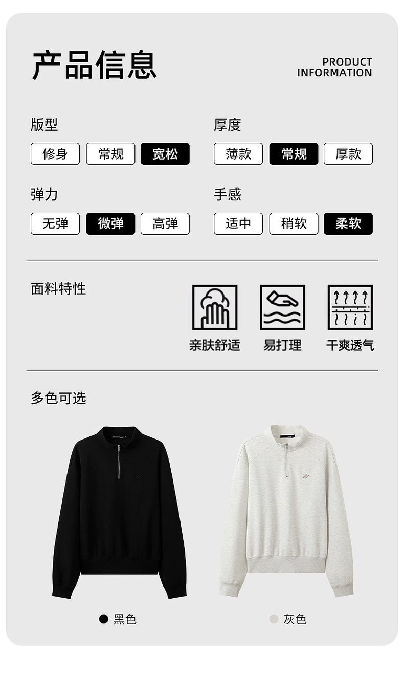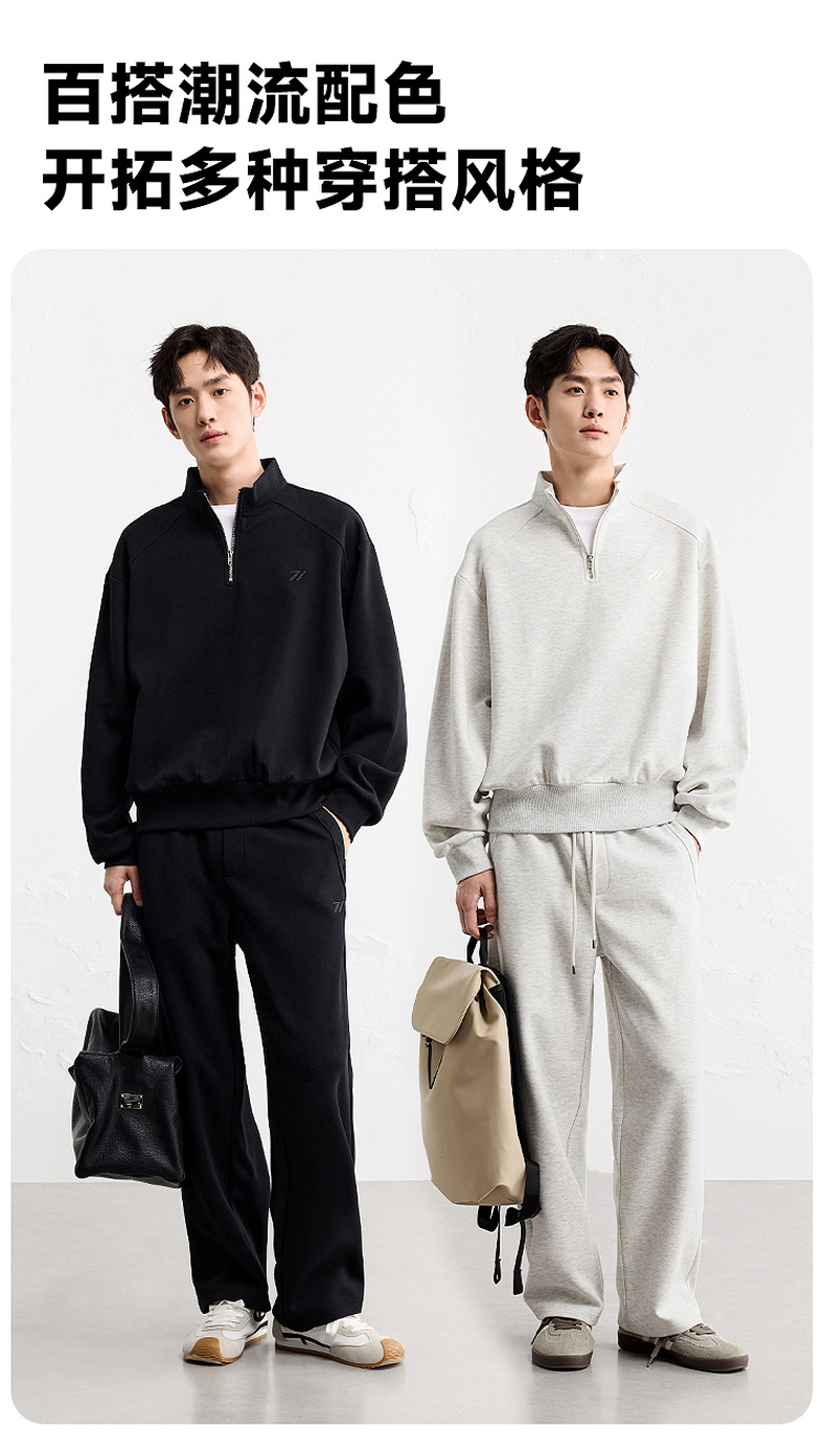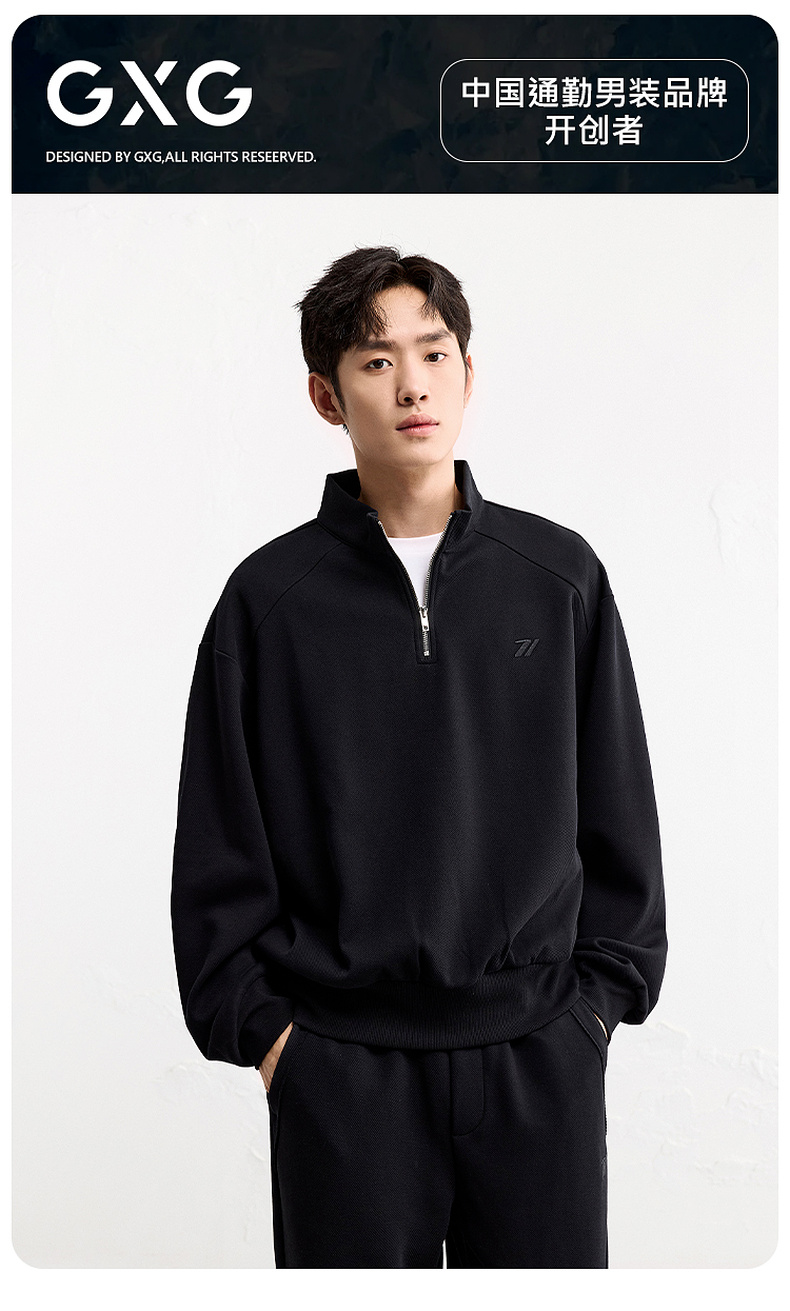 GXG男装秋季时尚潮流舒适百搭立领半拉链运动户外男式卫衣K&C