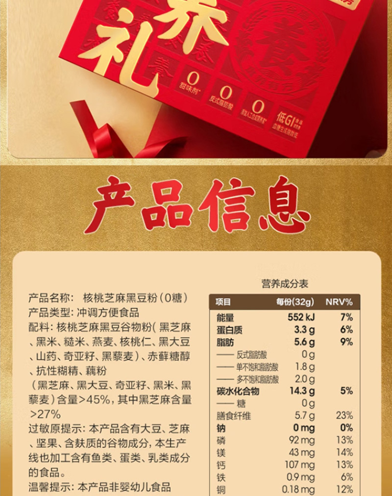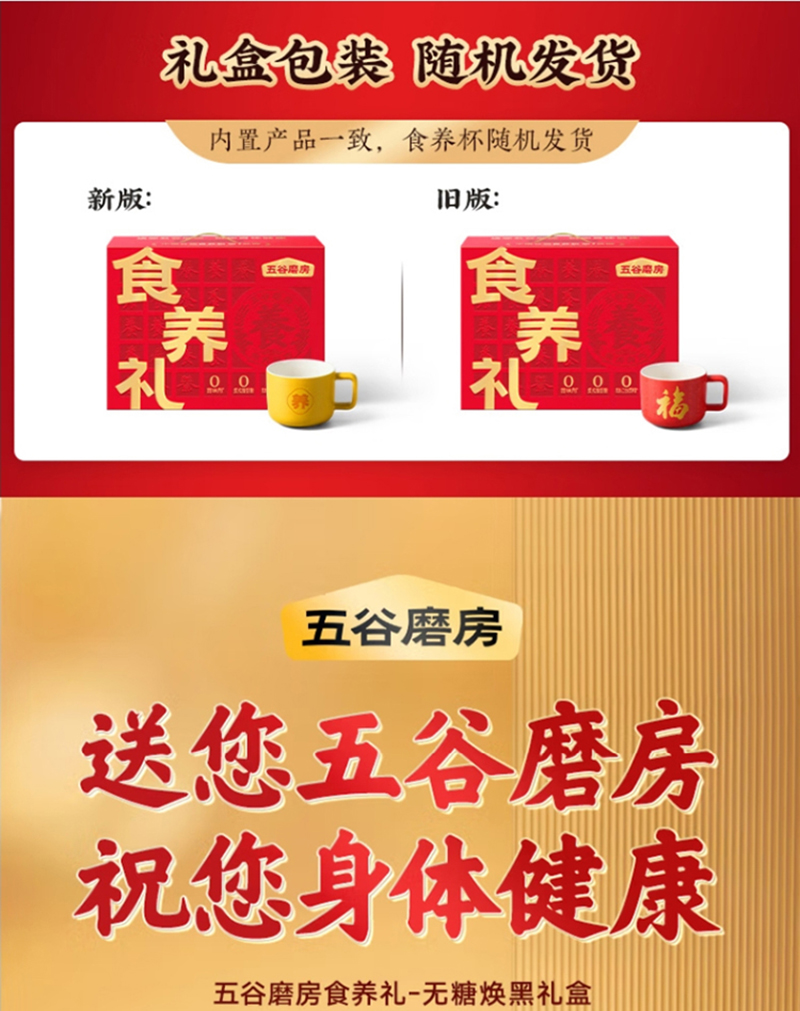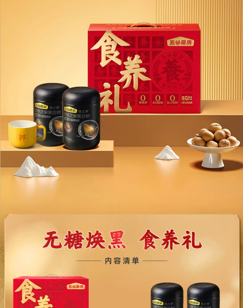 五谷磨房食养礼无糖款礼盒 (1092g)黑粉546g*2+杯