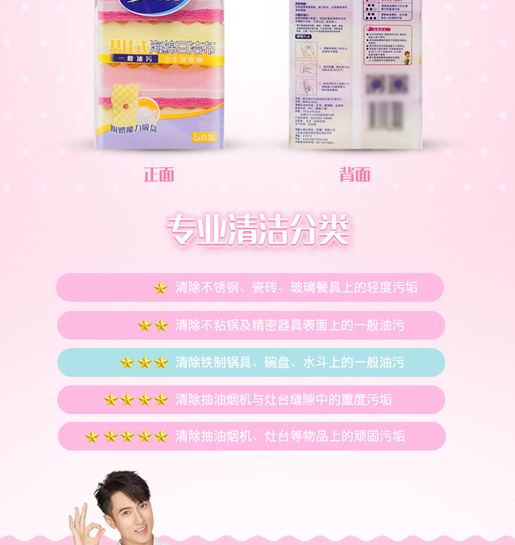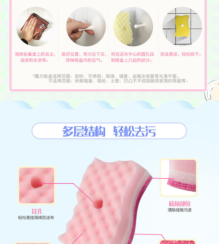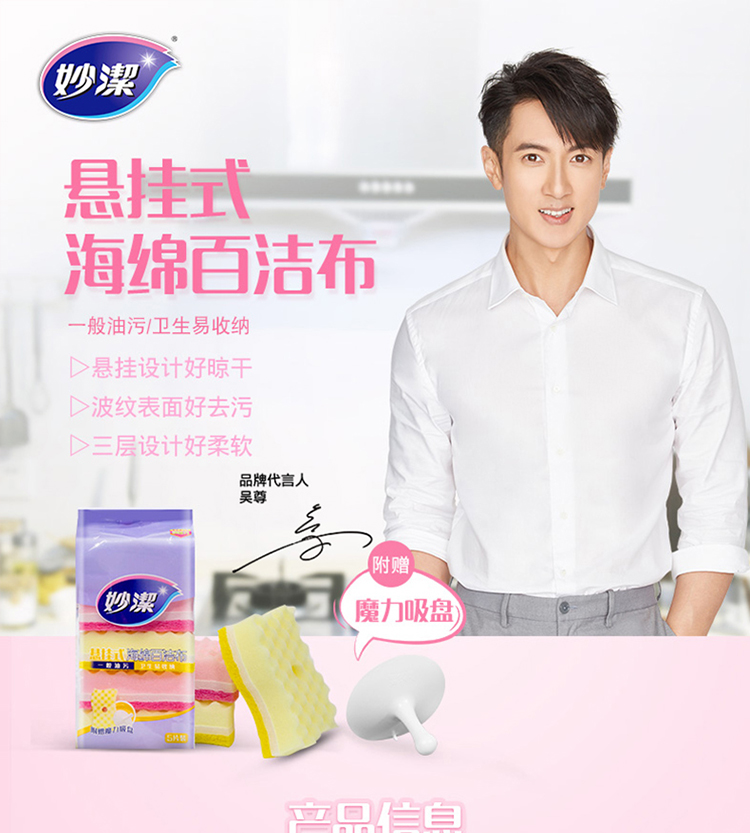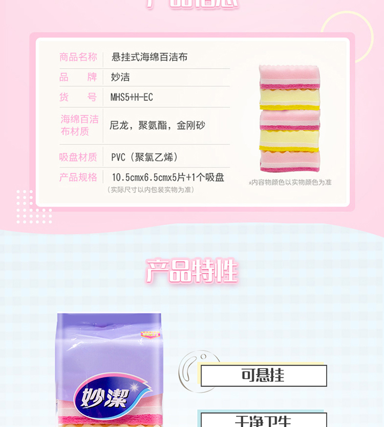 妙洁 海绵百洁布 悬挂式5片装 送悬挂吸盘(在包装里面)