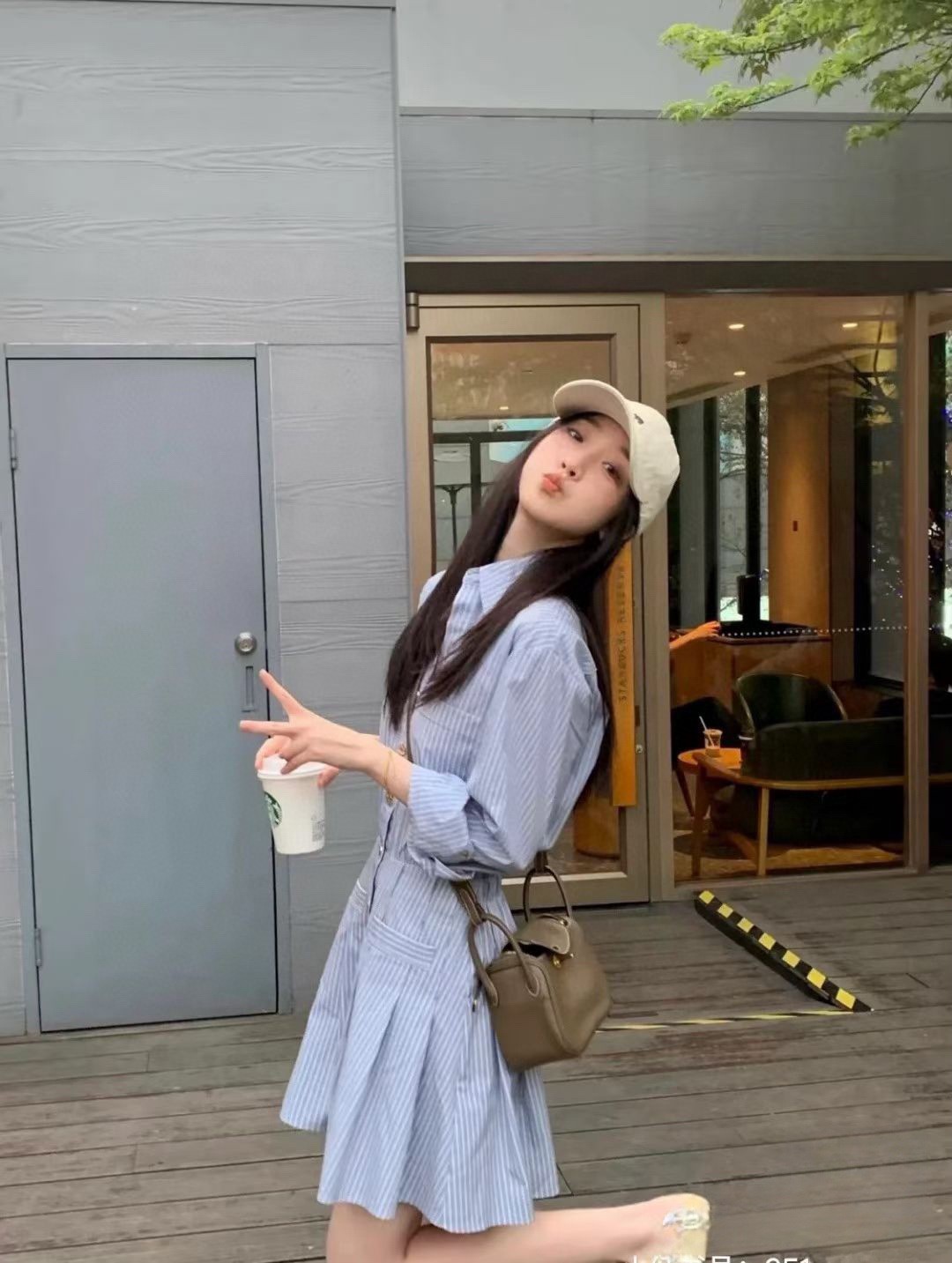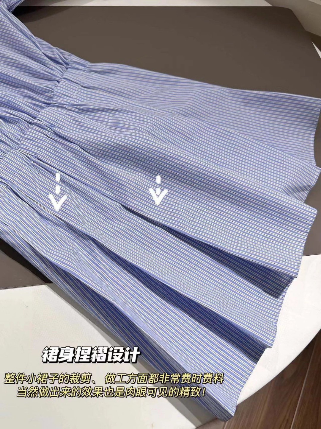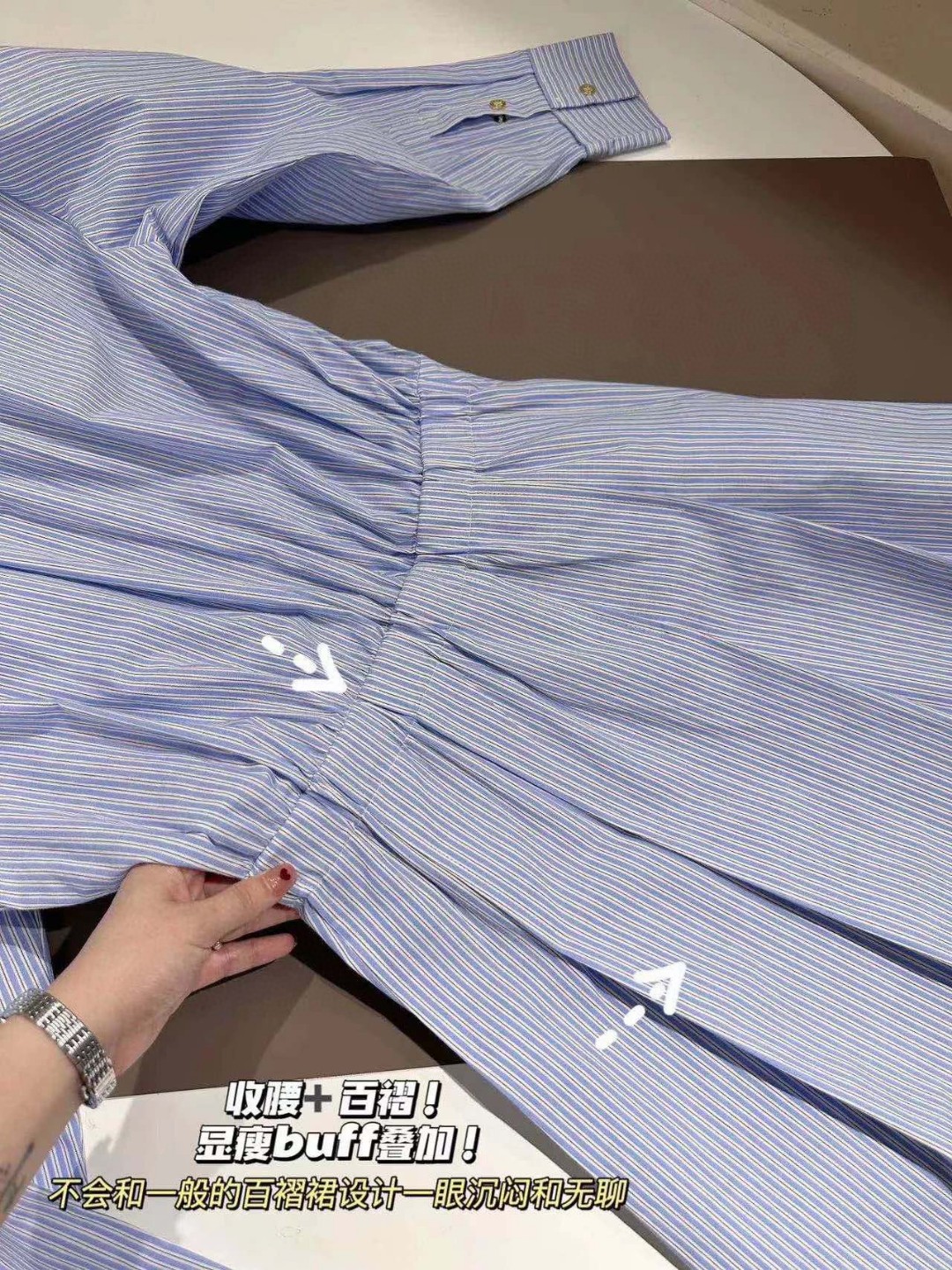 便于手臂活动也不闷!下身面料偏硬,支撑起裙型,不怕坐压