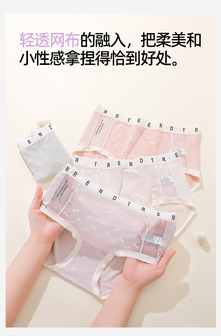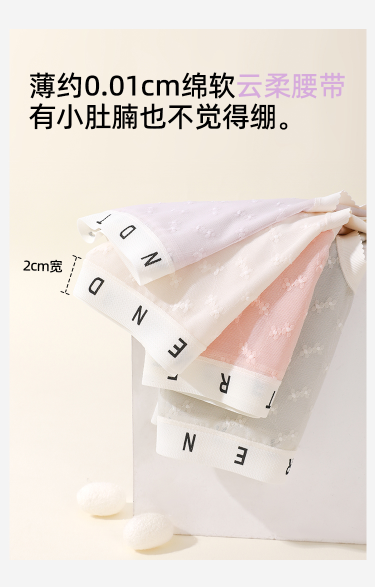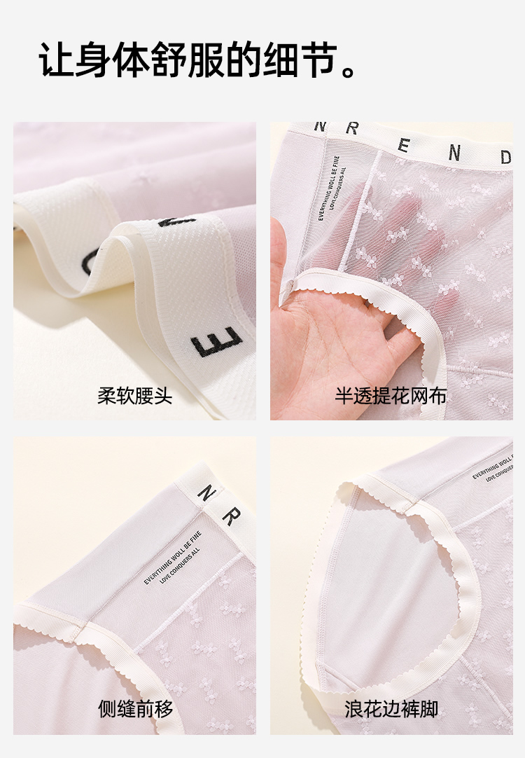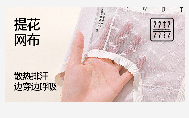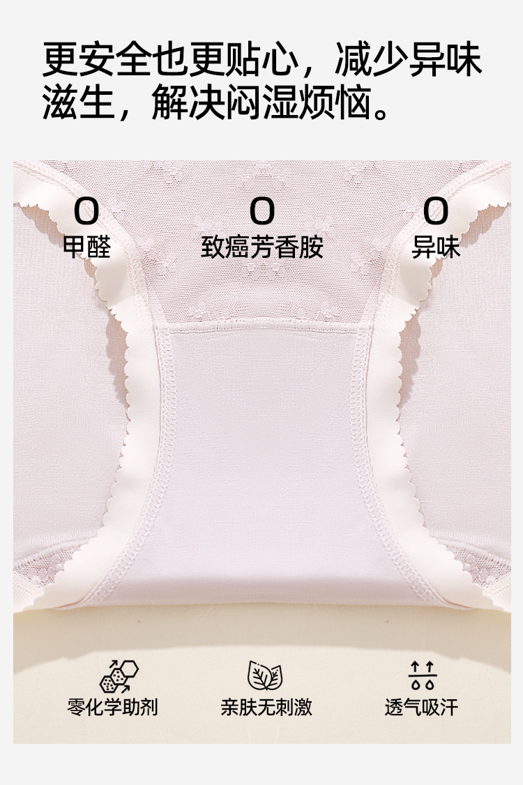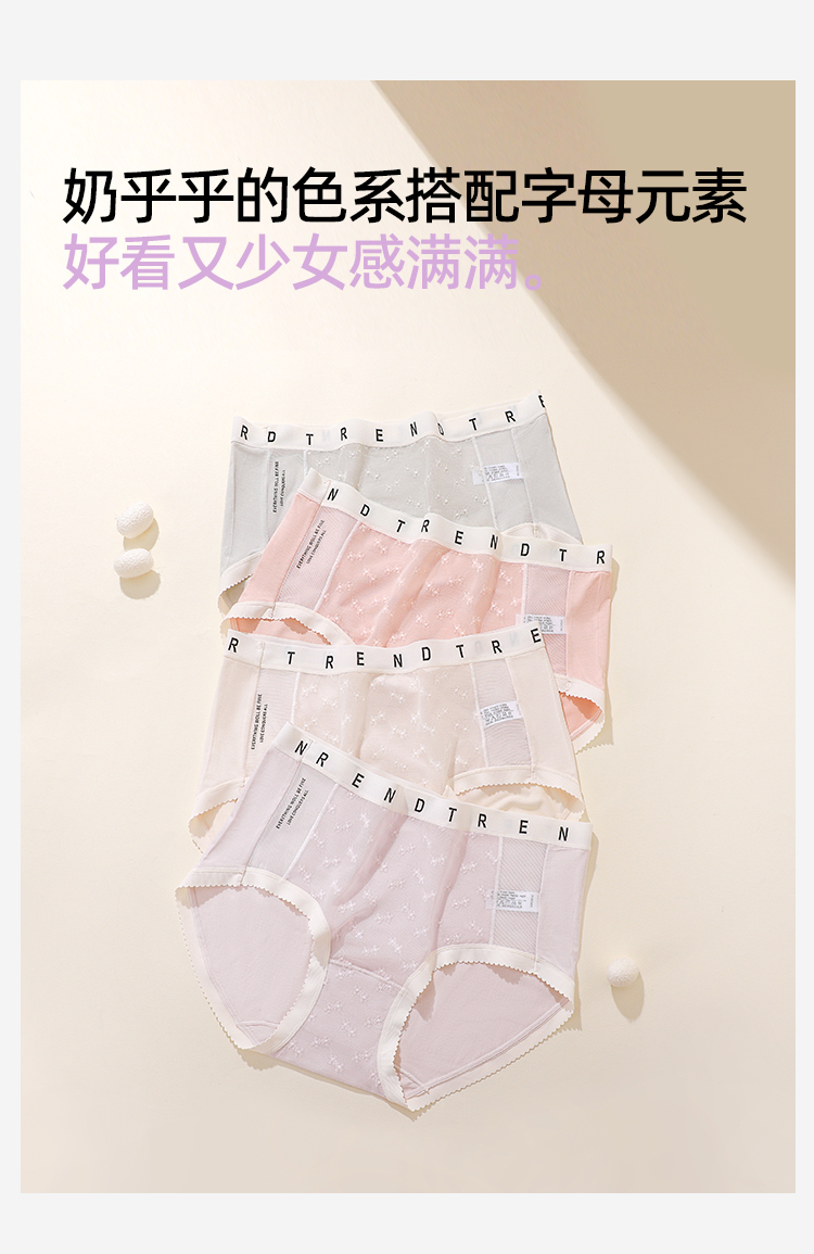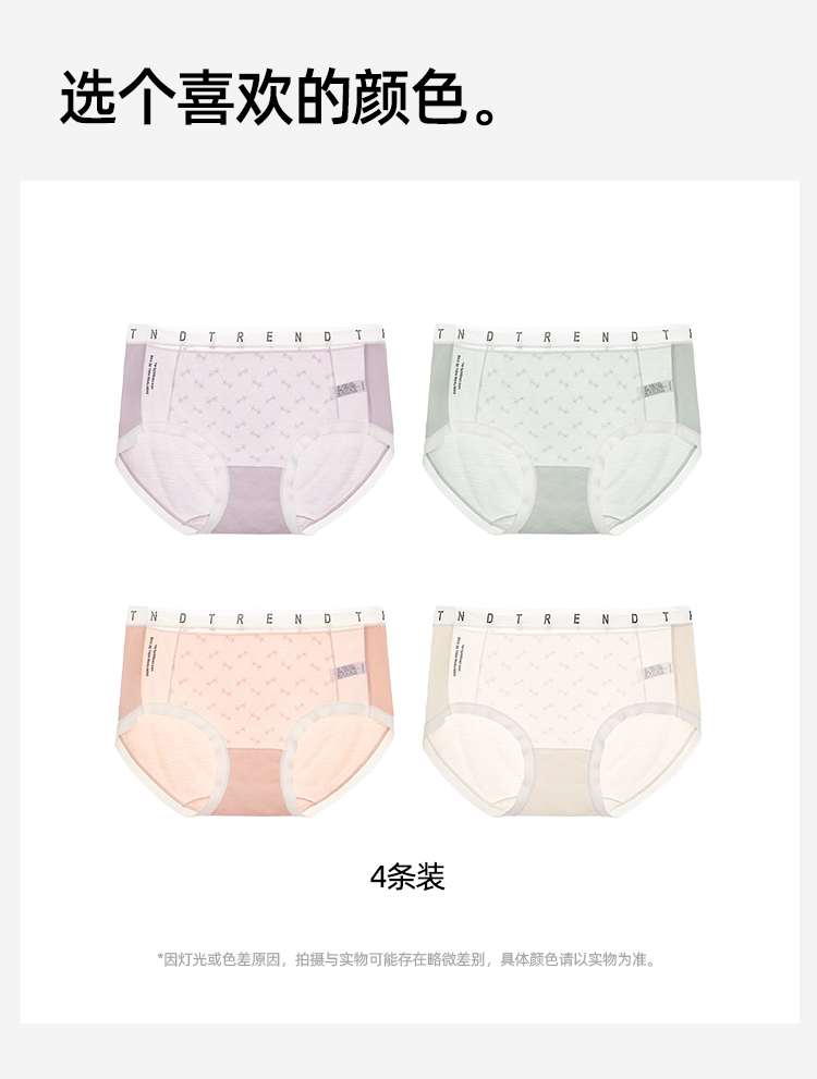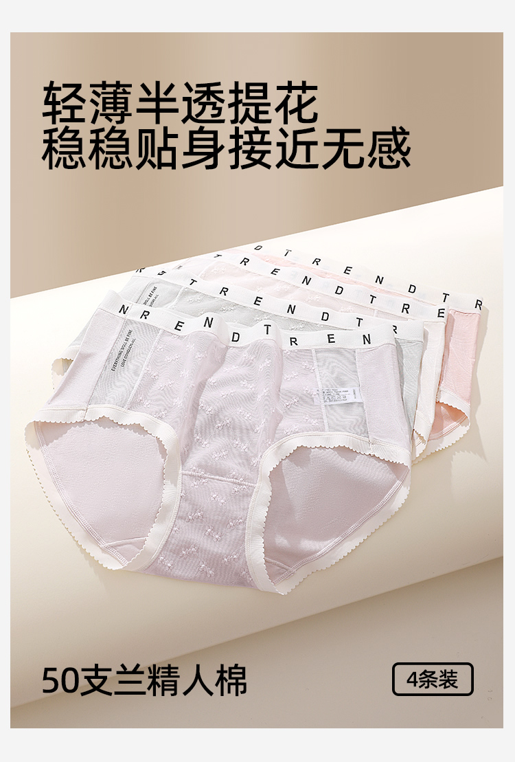 【4条装】熳洁儿 女士内裤50支兰精人棉提花蕾丝中腰25262106