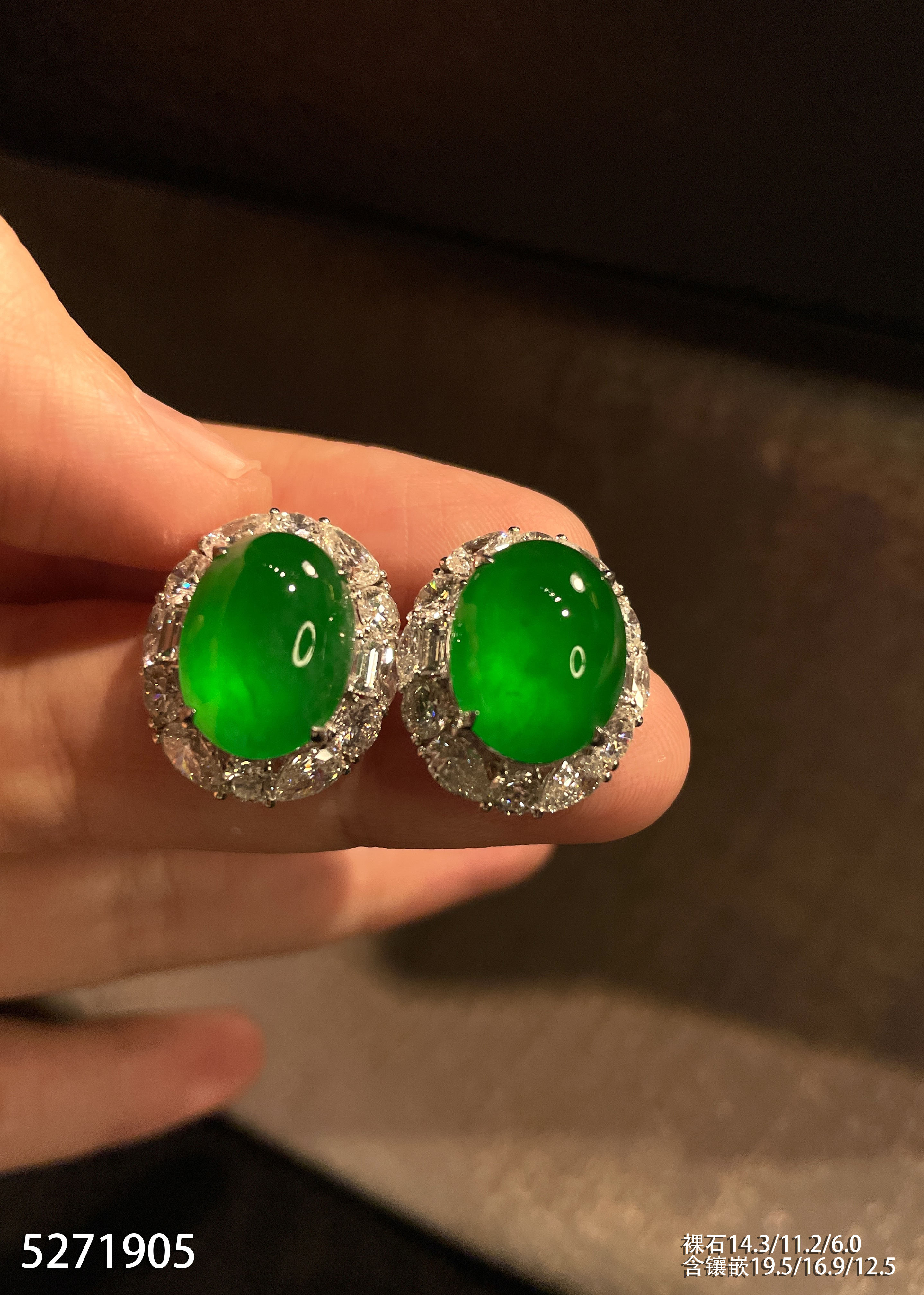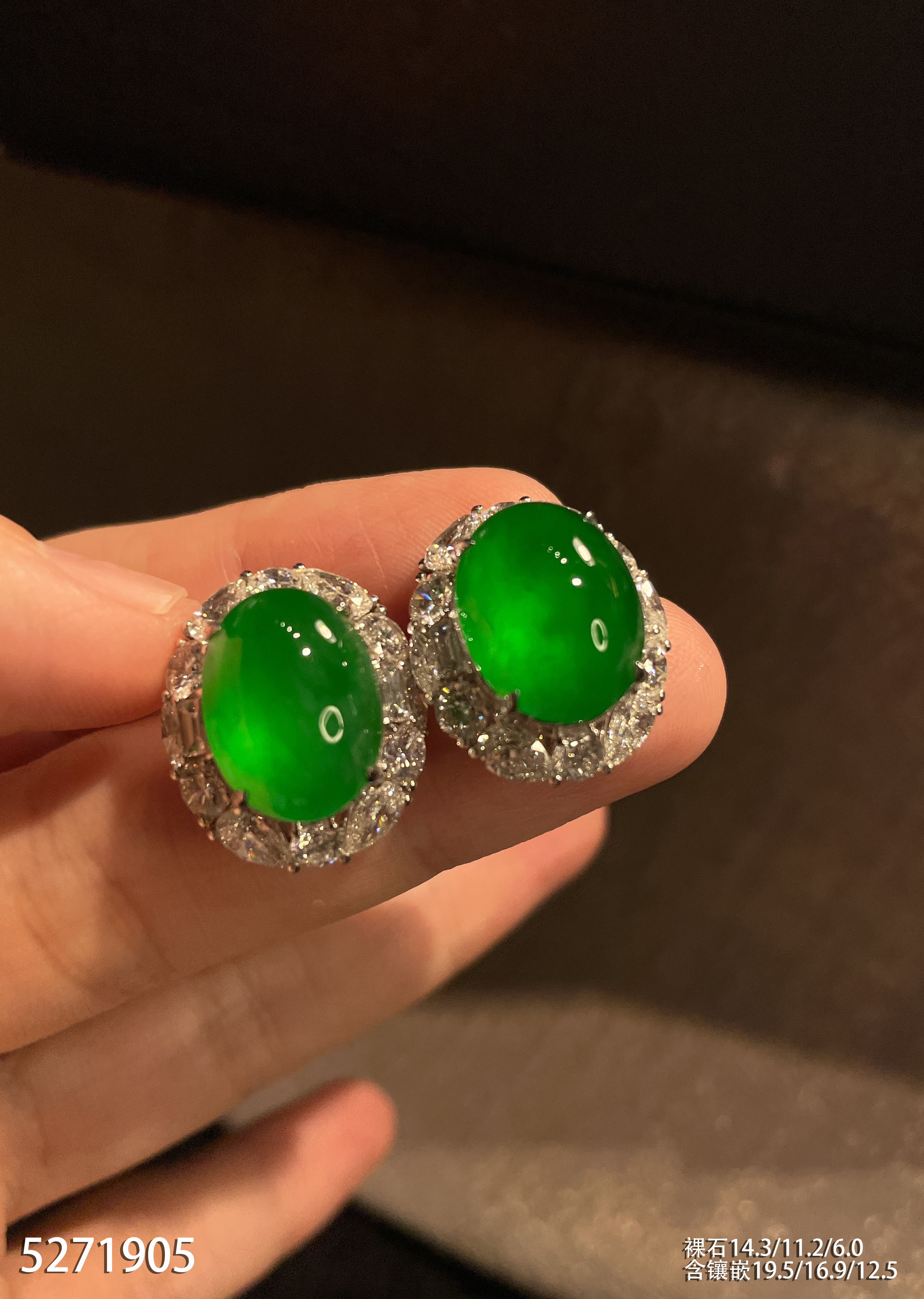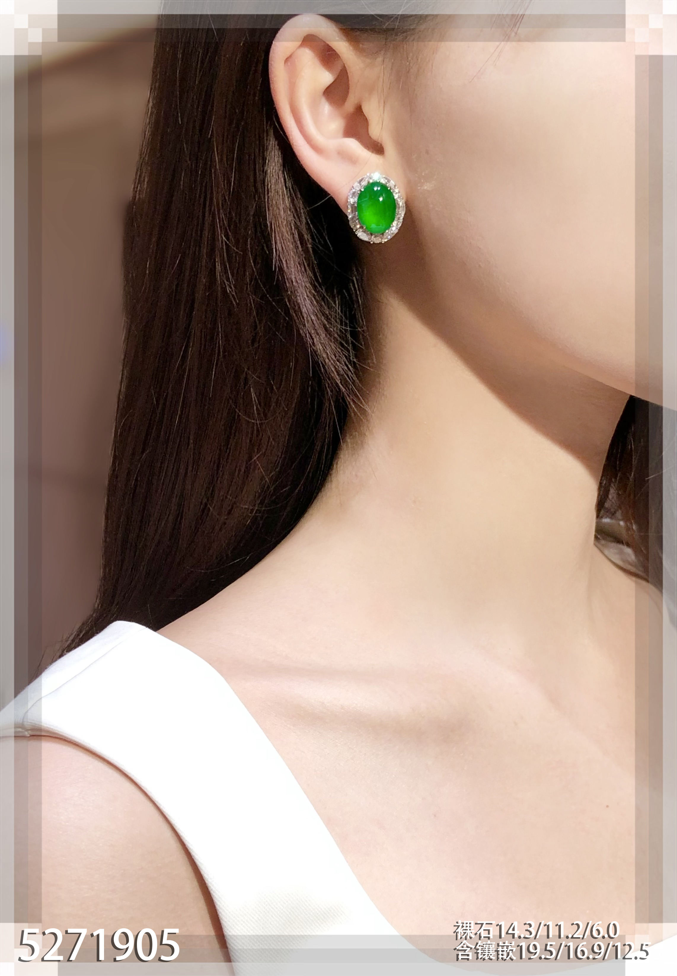 老坑帝王绿蛋面耳钉【5271905】具体价格微信咨询