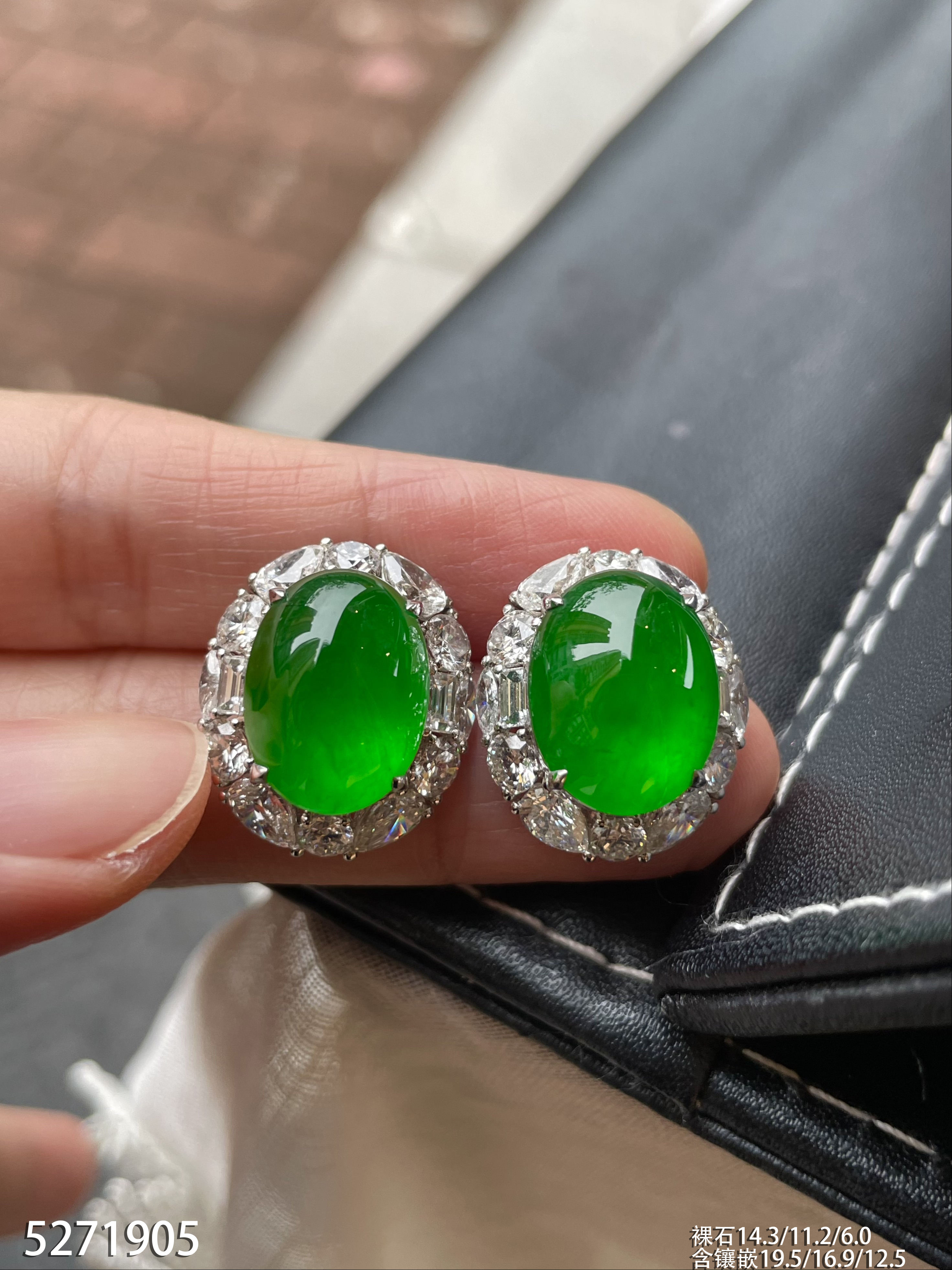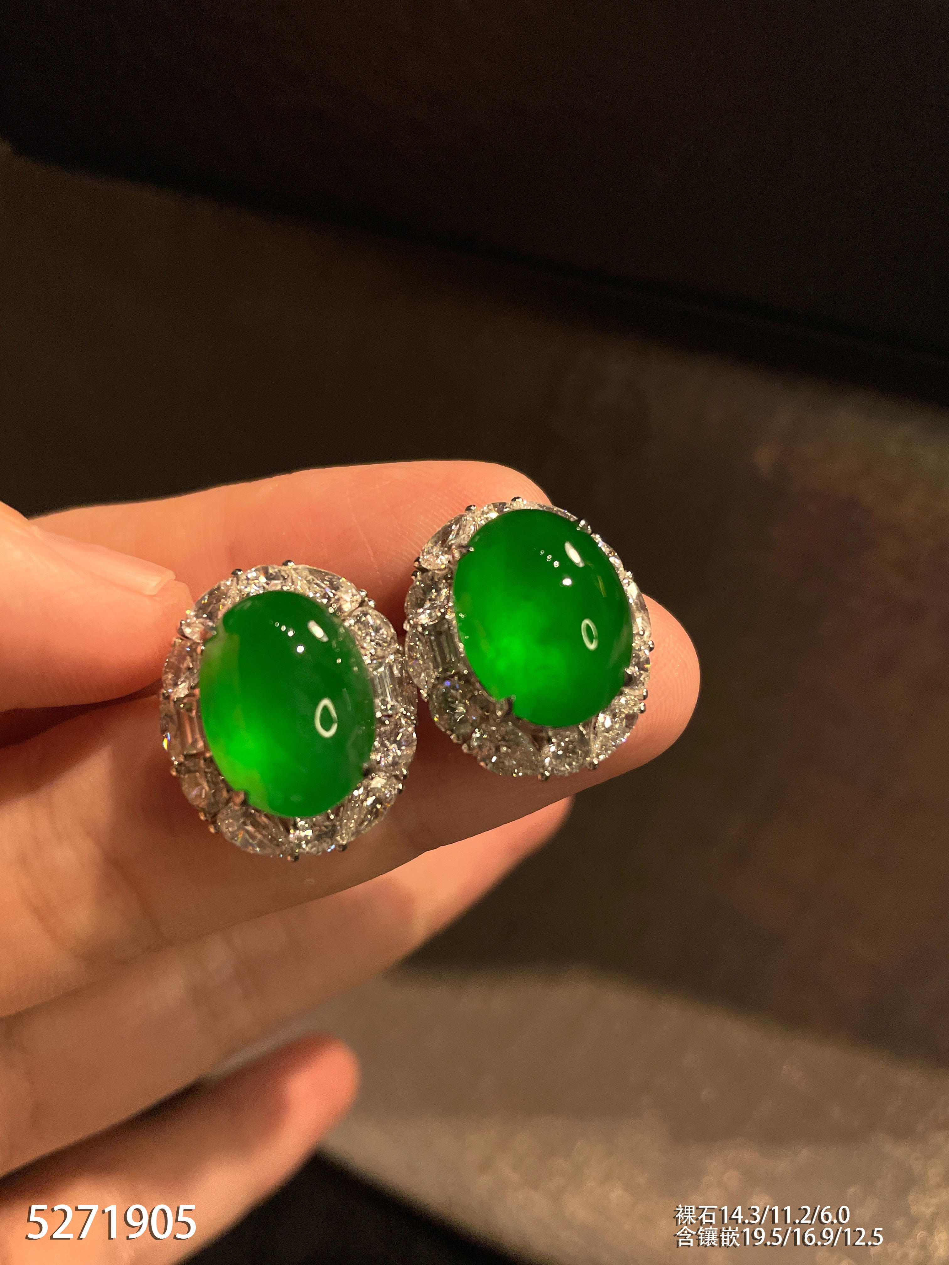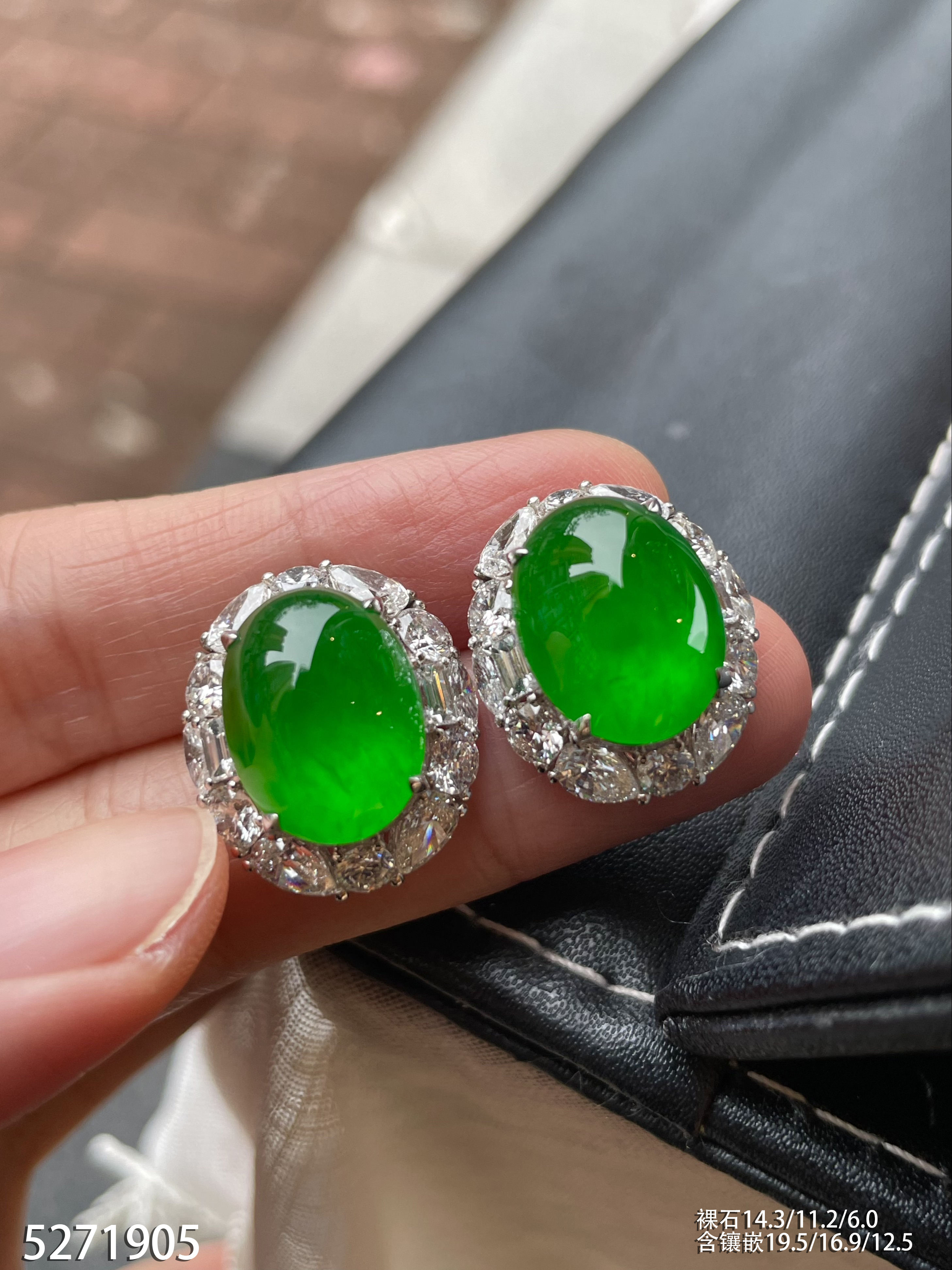 老坑帝王绿蛋面耳钉【5271905】具体价格微信咨询