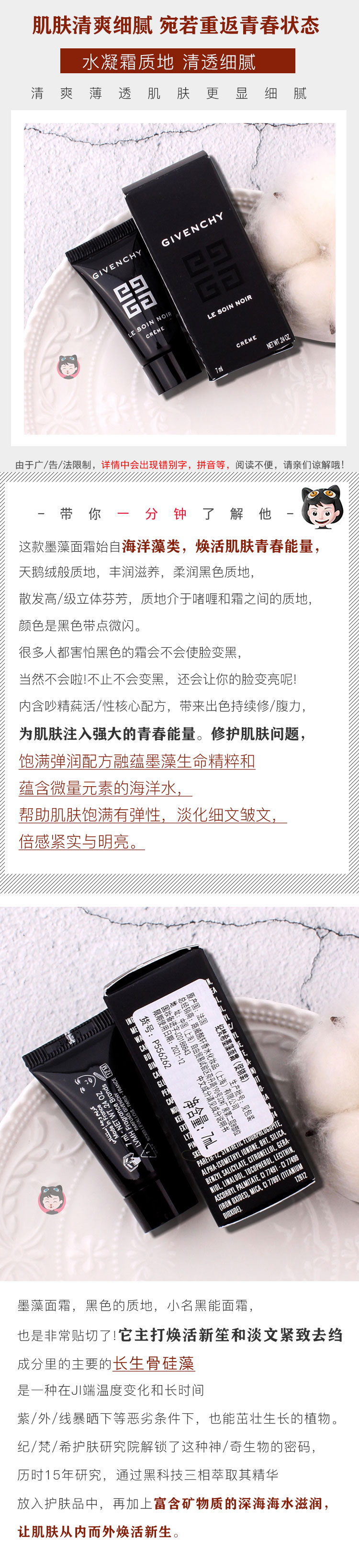 新款黑金面霜小样纪梵希墨藻面霜7ml抗皱紧实保湿修复 买2免邮JPY带授权招加盟代理
