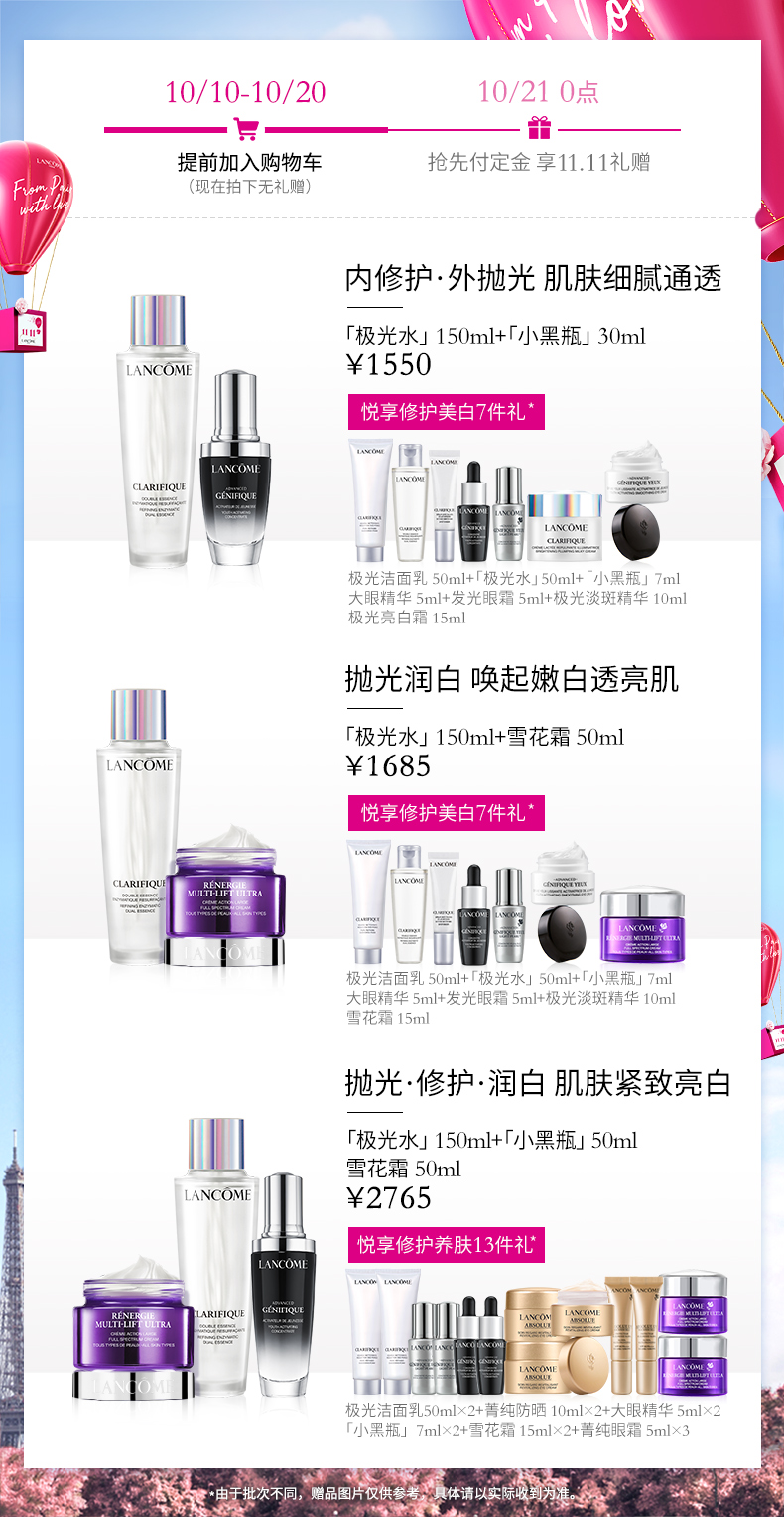 【双11加购】兰蔻极光水150ml+小黑瓶/雪花霜 抛光透亮护肤品套装JPY带授权招加盟代理