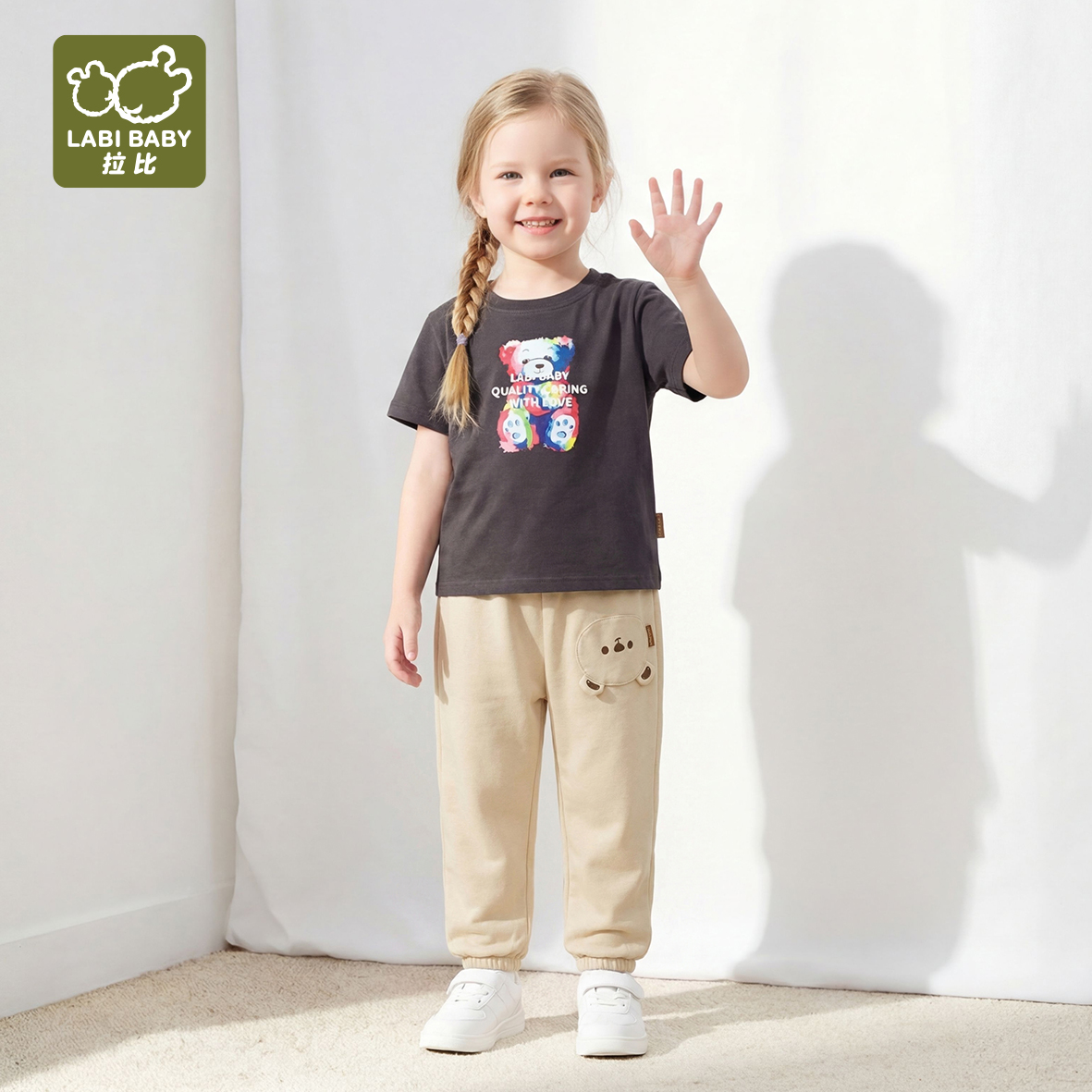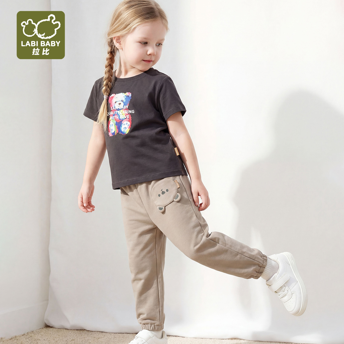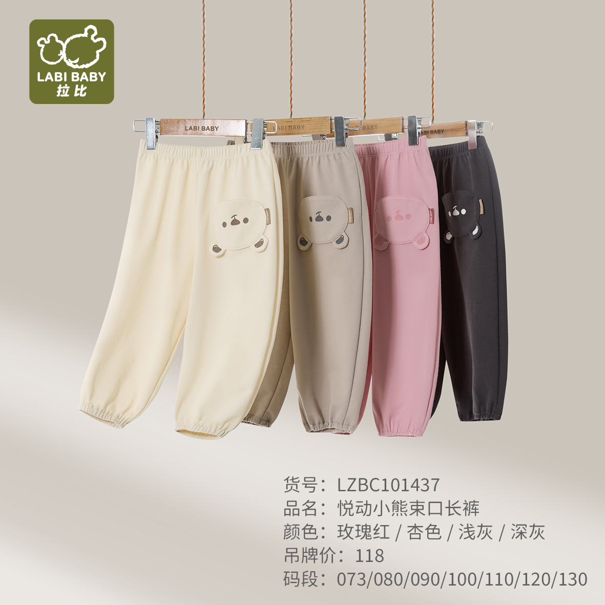 拉比童衣夏悦动小熊束口长裤j6LZBC101437