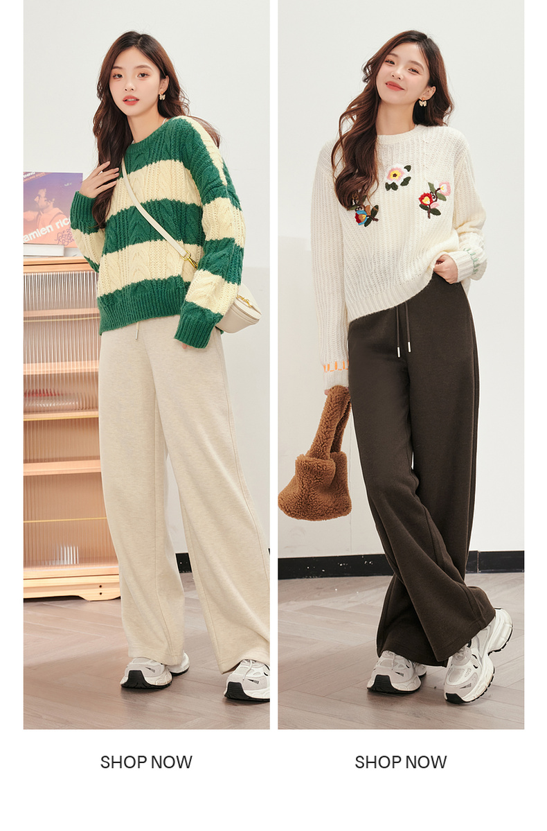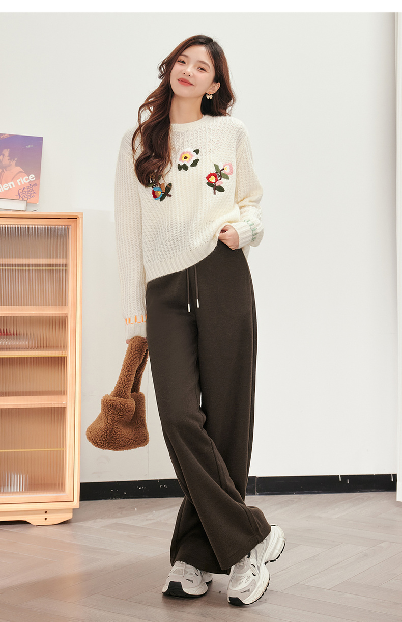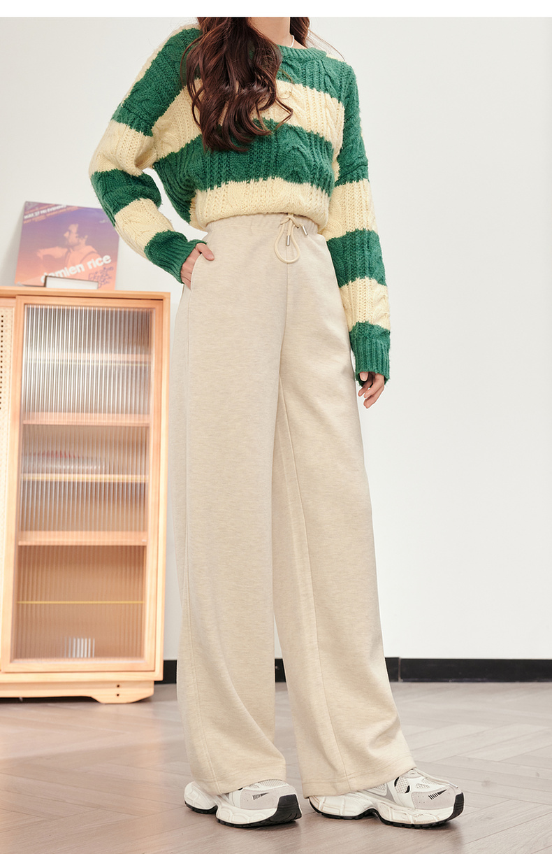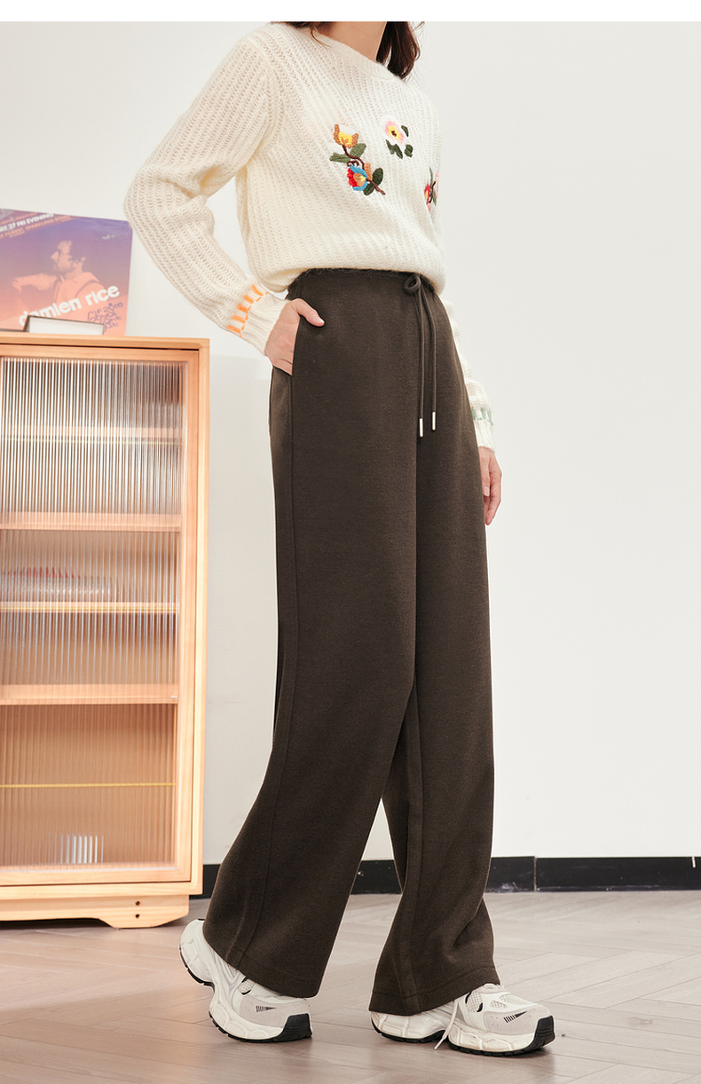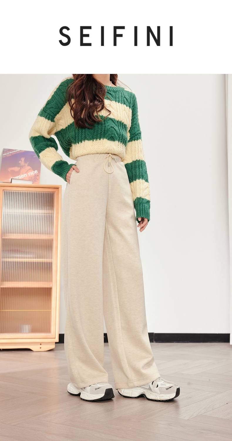 【严选】诗凡黎米色休闲裤2023冬新款高腰显瘦显高流行小个子直筒拖地裤女SEB250571
