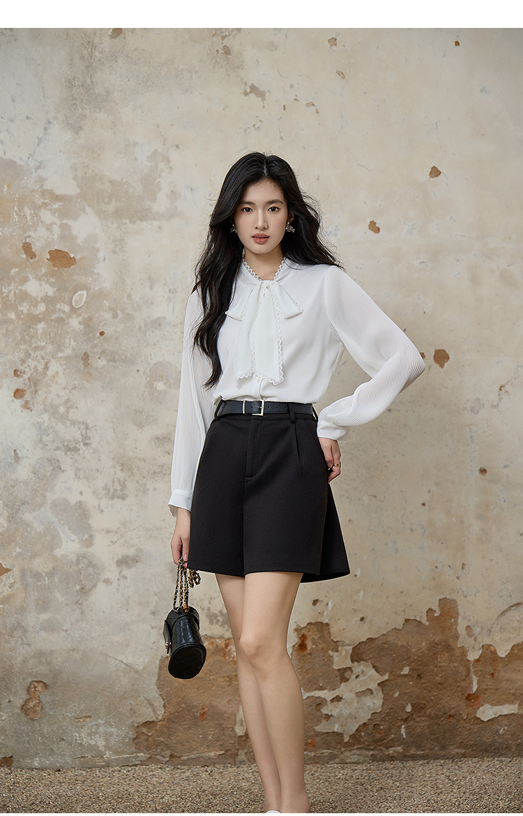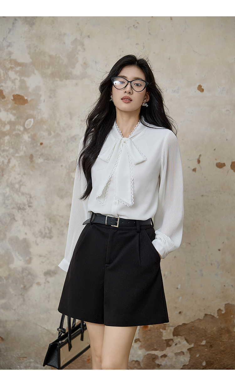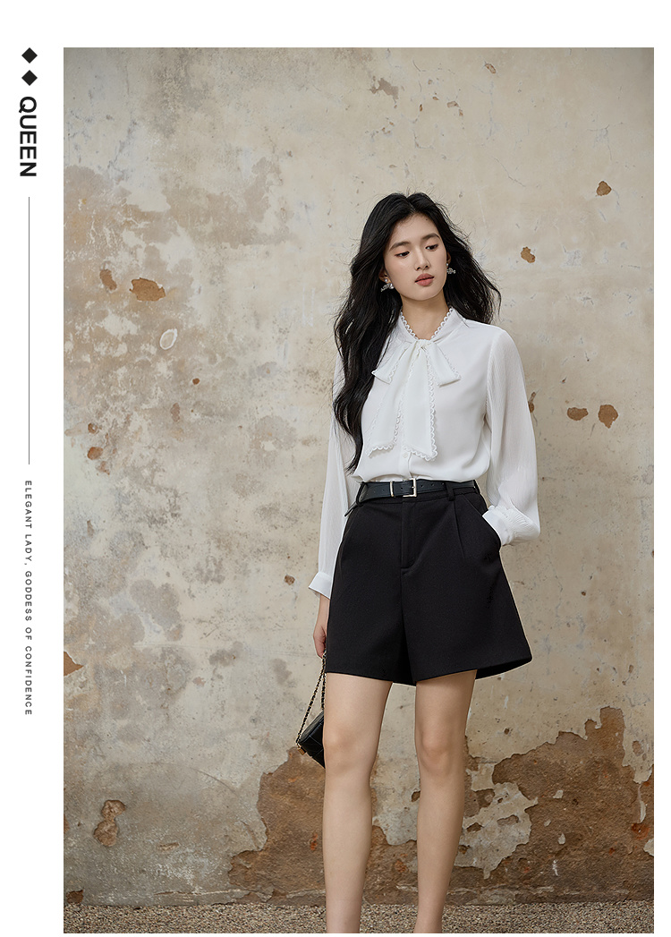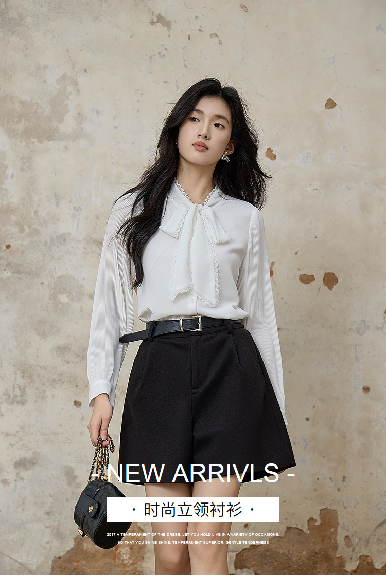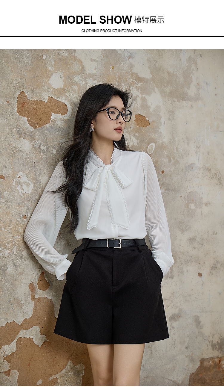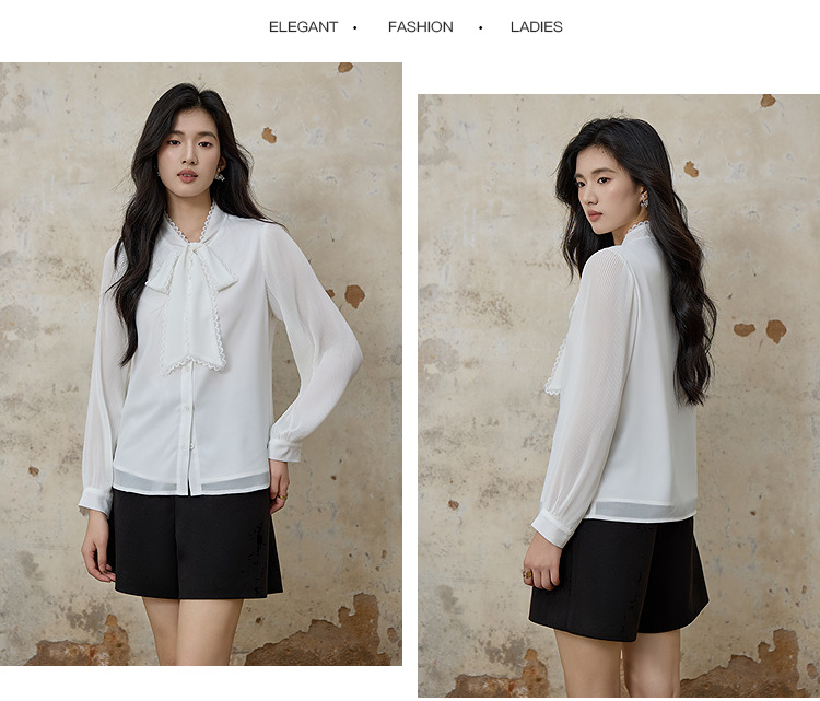奢姿大码女装2025秋季时尚蝴蝶结飘带衬衫胖妹妹气质花边装饰上衣9953270266
