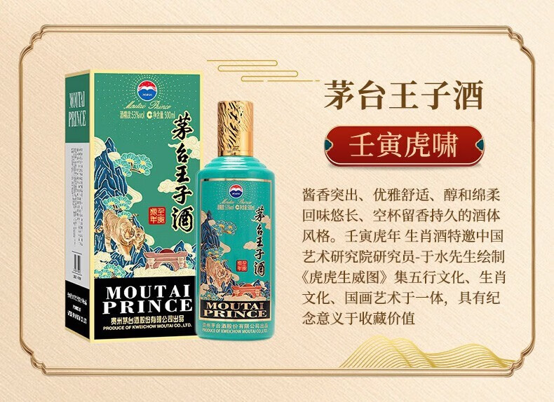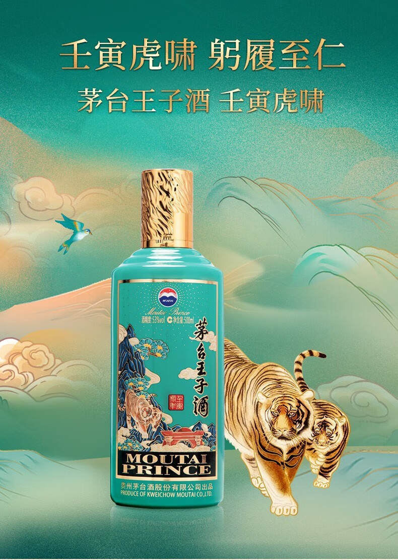 茅台王子酒 壬寅虎年生肖酒 53度 酱香型 500mL 1瓶 商务接待 聚会宴请 72小时发货