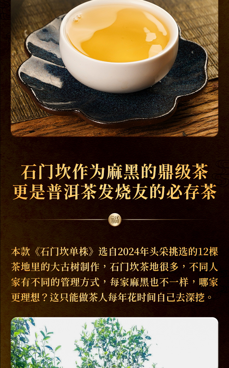 【石门坎单株】苍劲厚足 麻黑石门坎古树头采 2024年春茶 严选易武茶区麻黑石门坎山顶茶地12棵核心大单株古树纯料普洱生茶饼357g