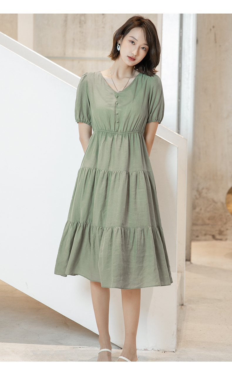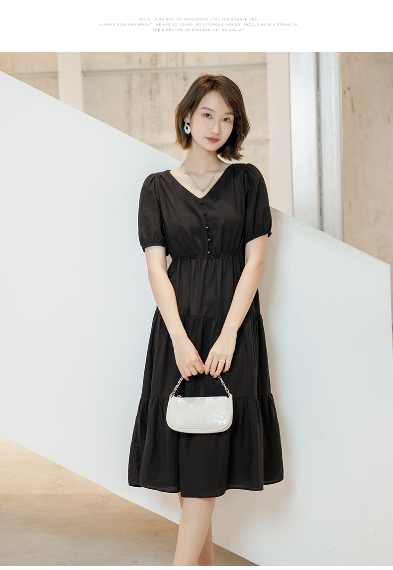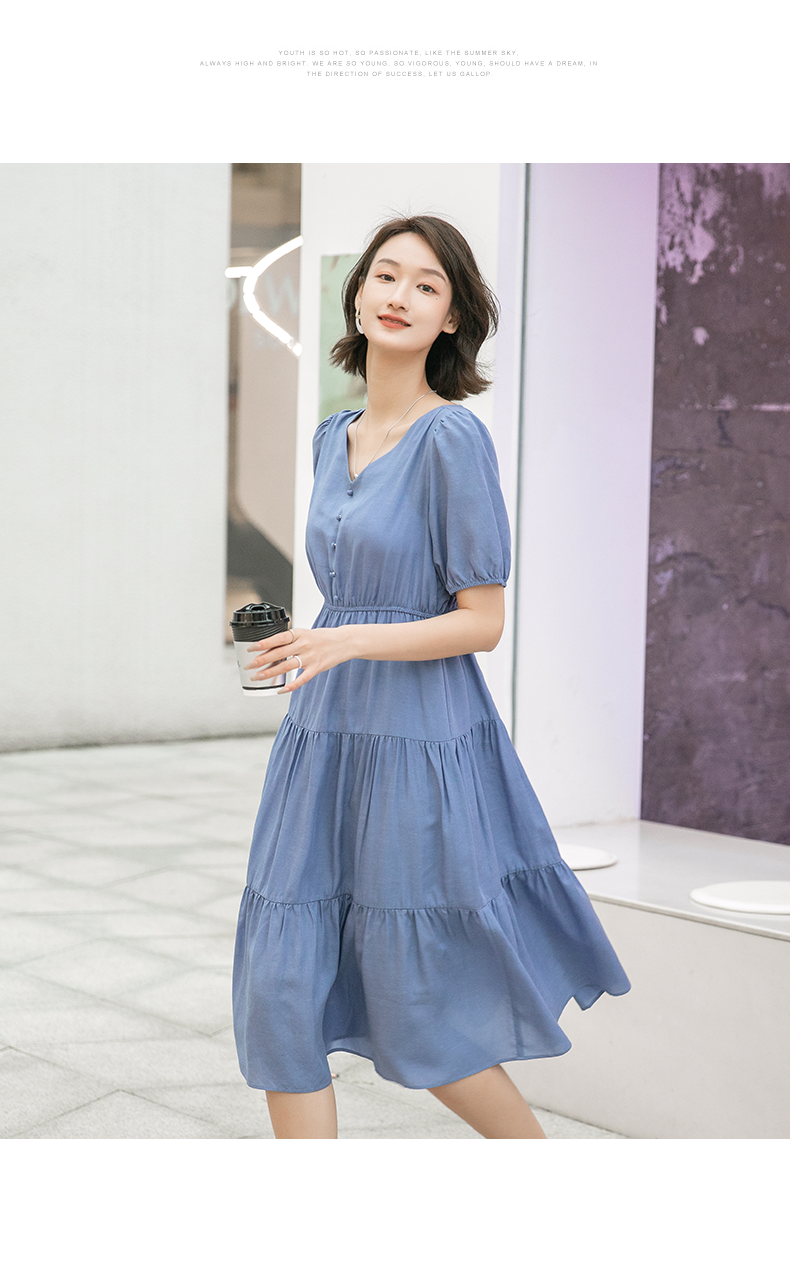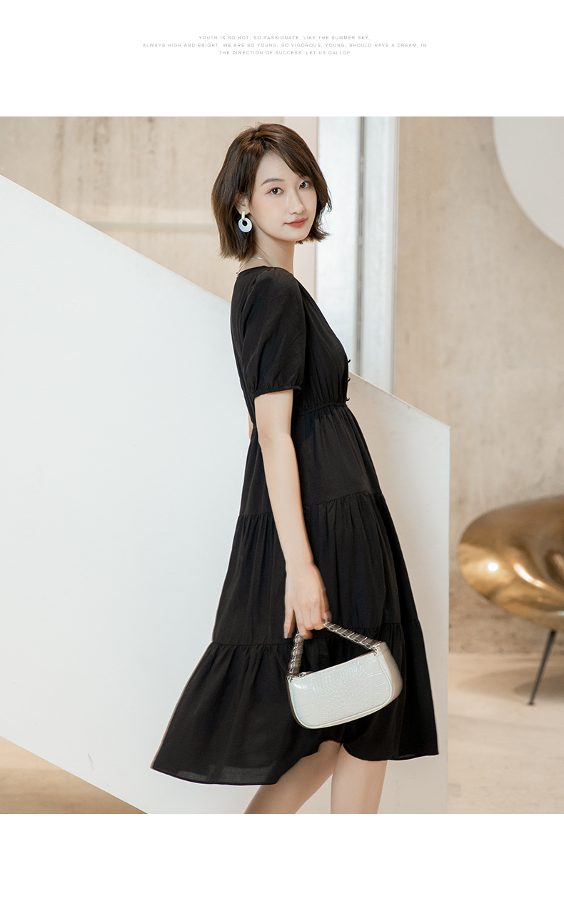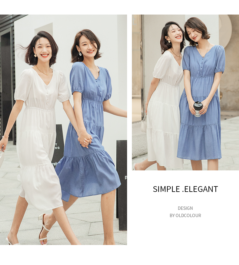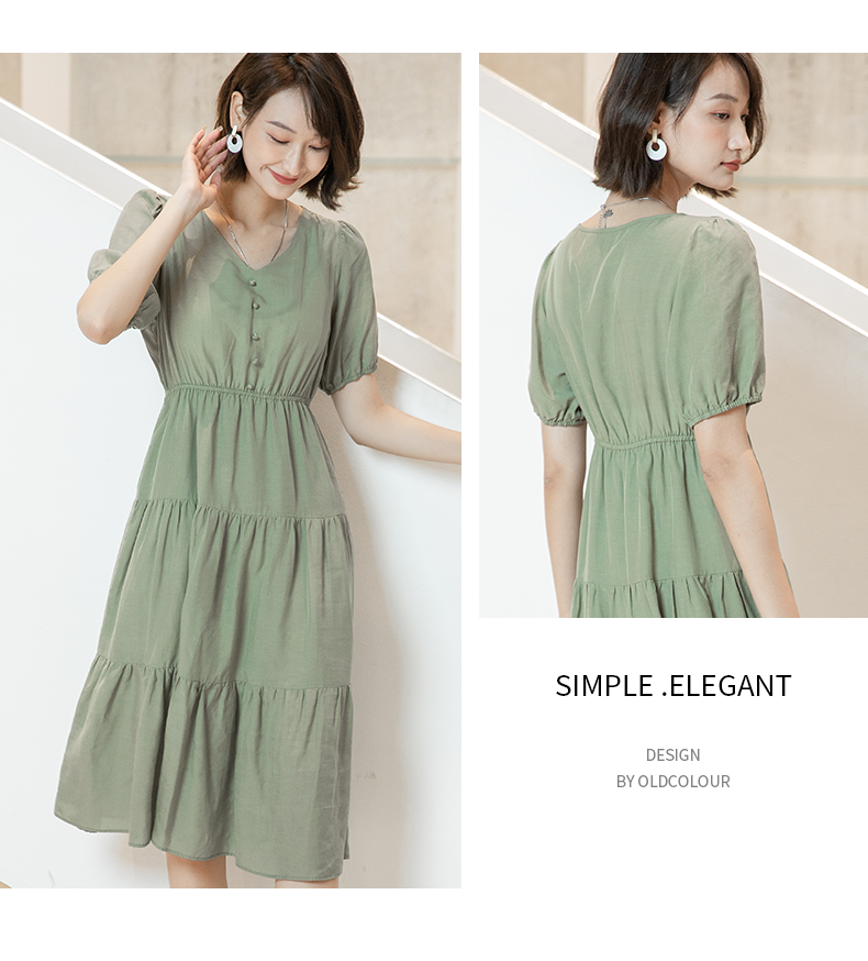 oldcolour欧珂夏季时尚褶皱仙女裙女法式茶歇连衣裙显瘦P23101419