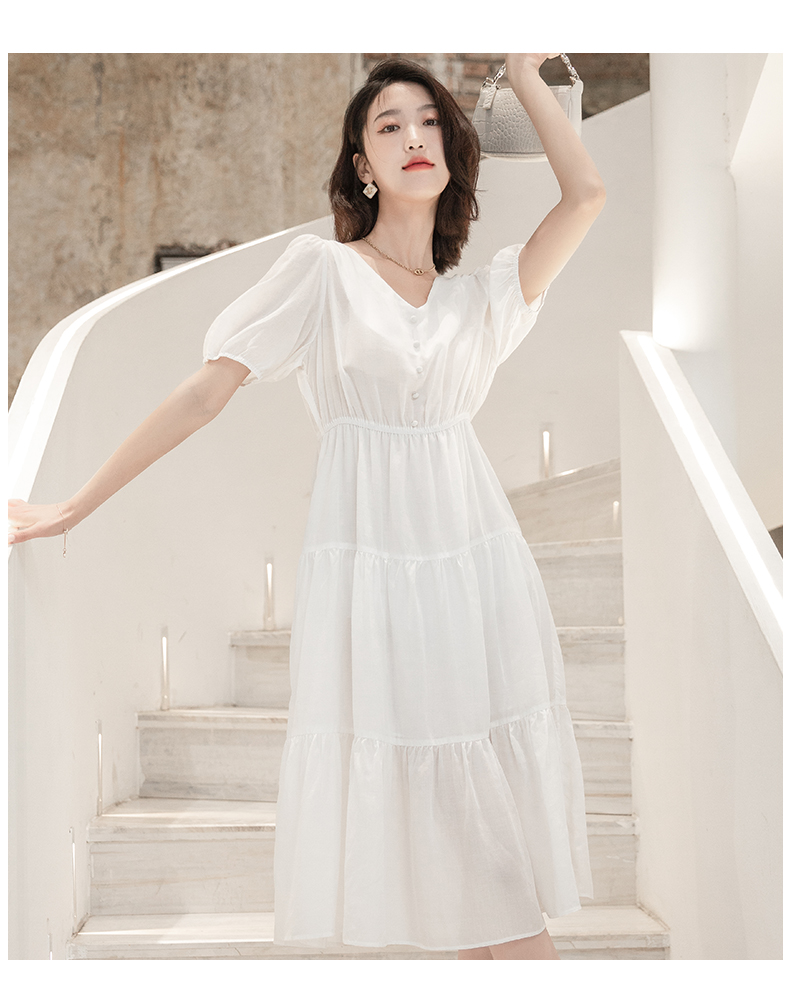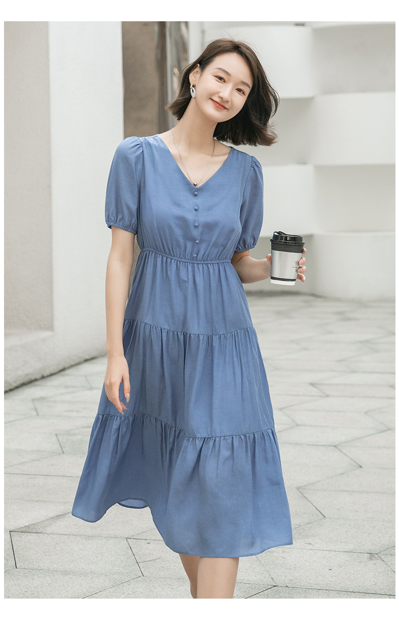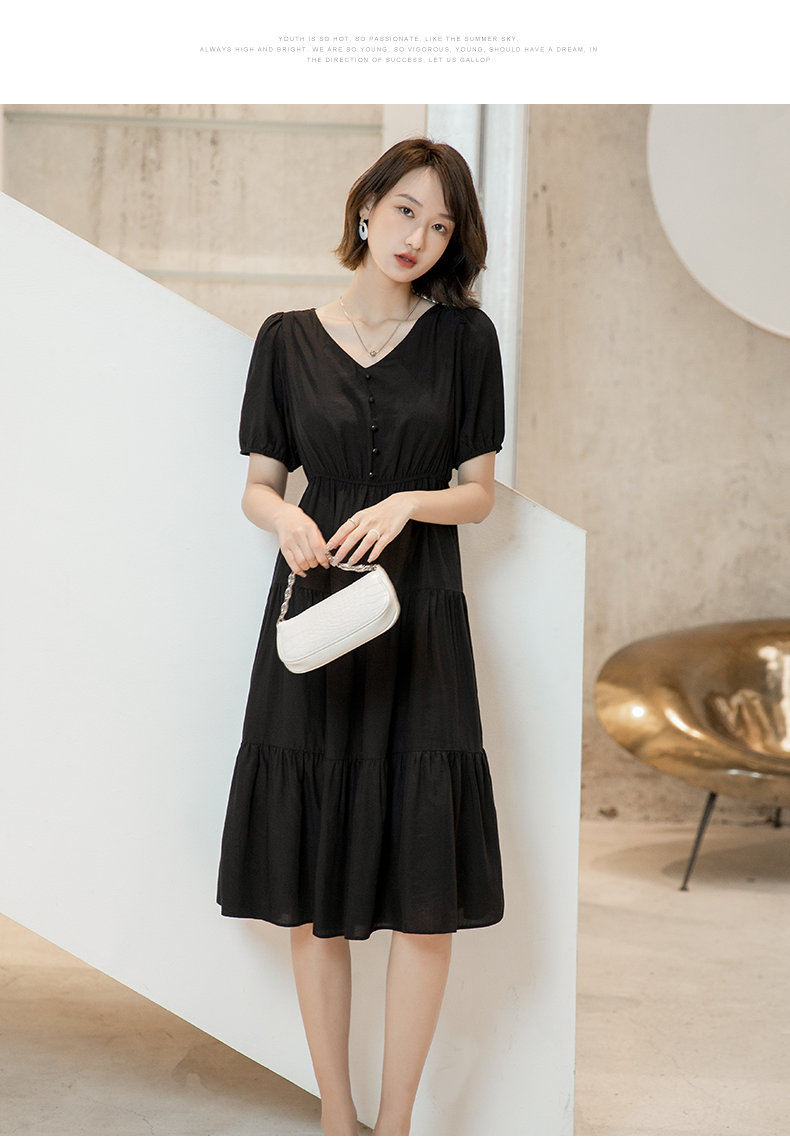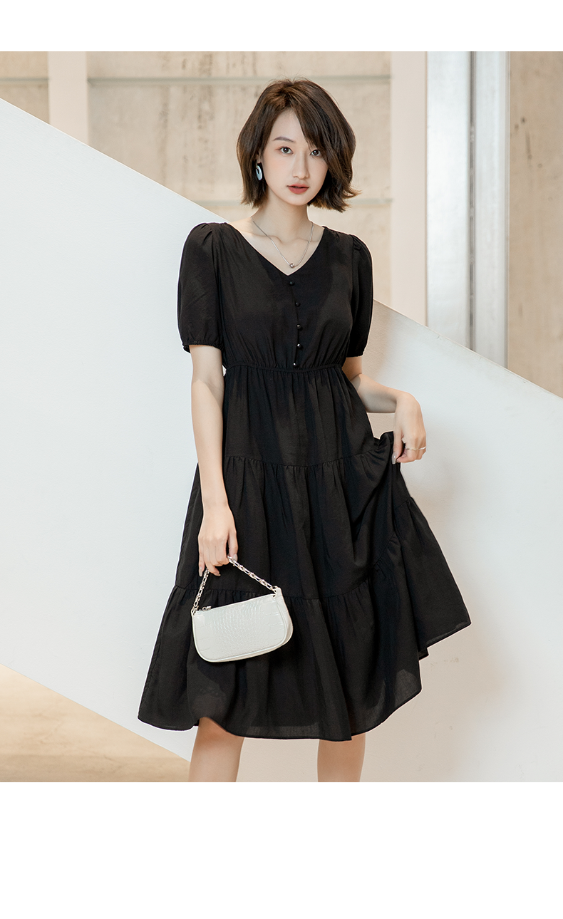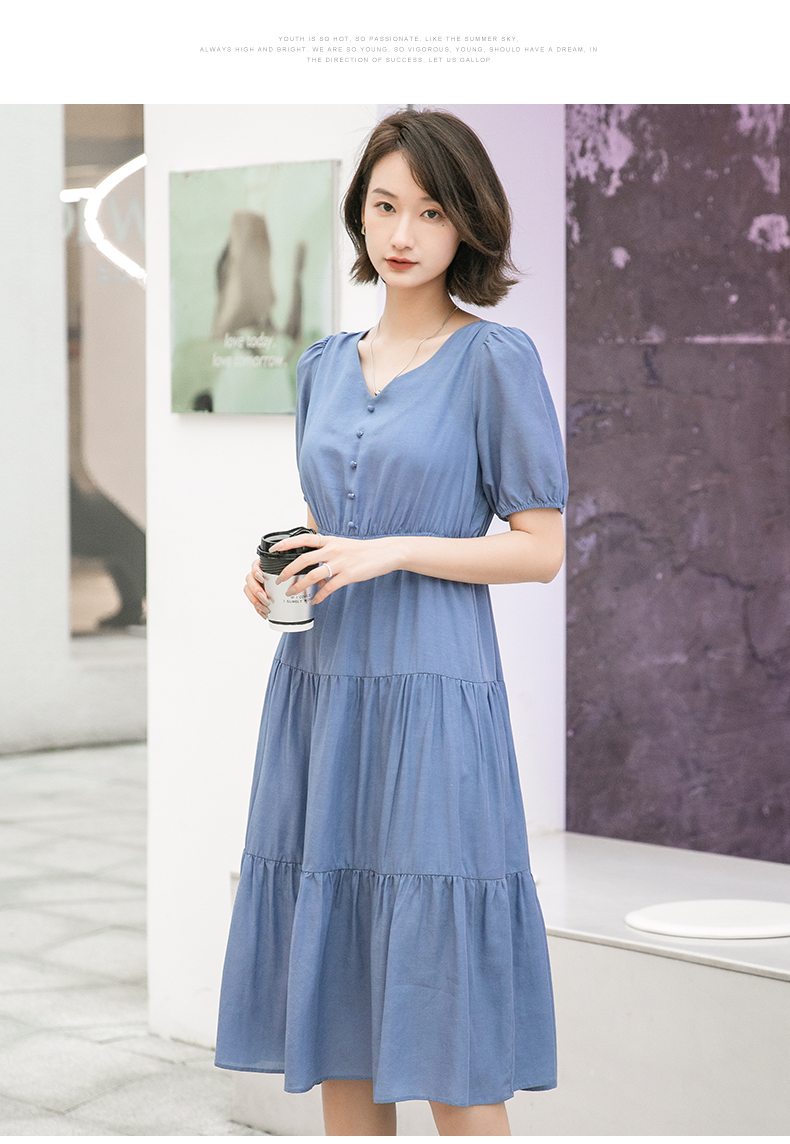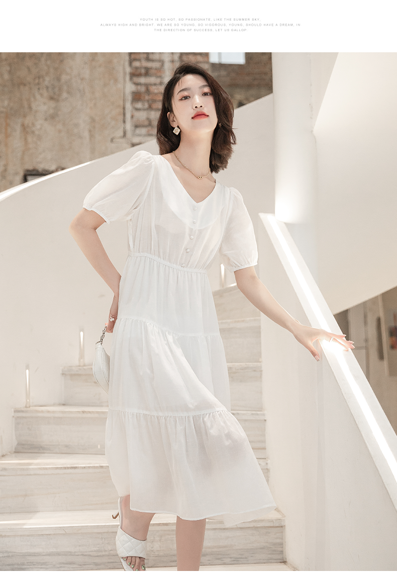 oldcolour欧珂夏季时尚褶皱仙女裙女法式茶歇连衣裙显瘦P23101419