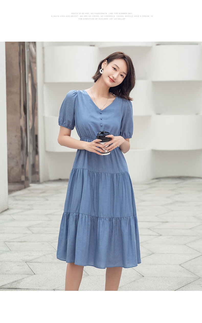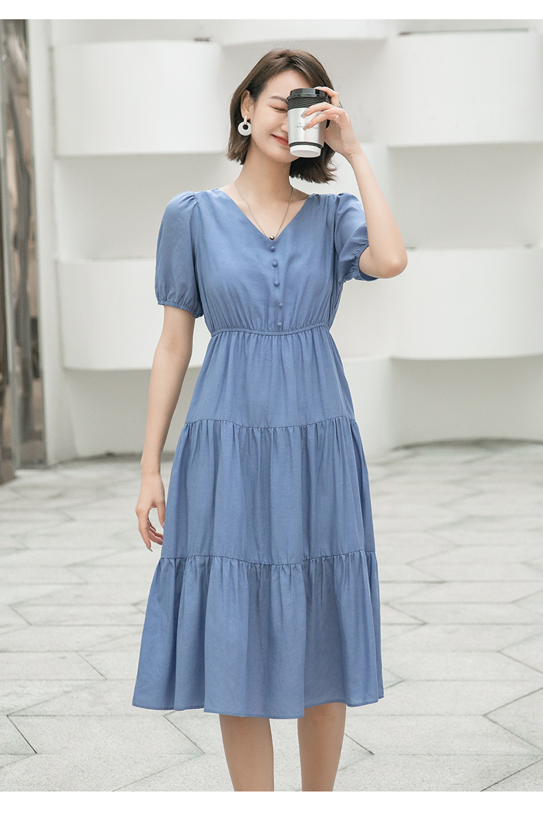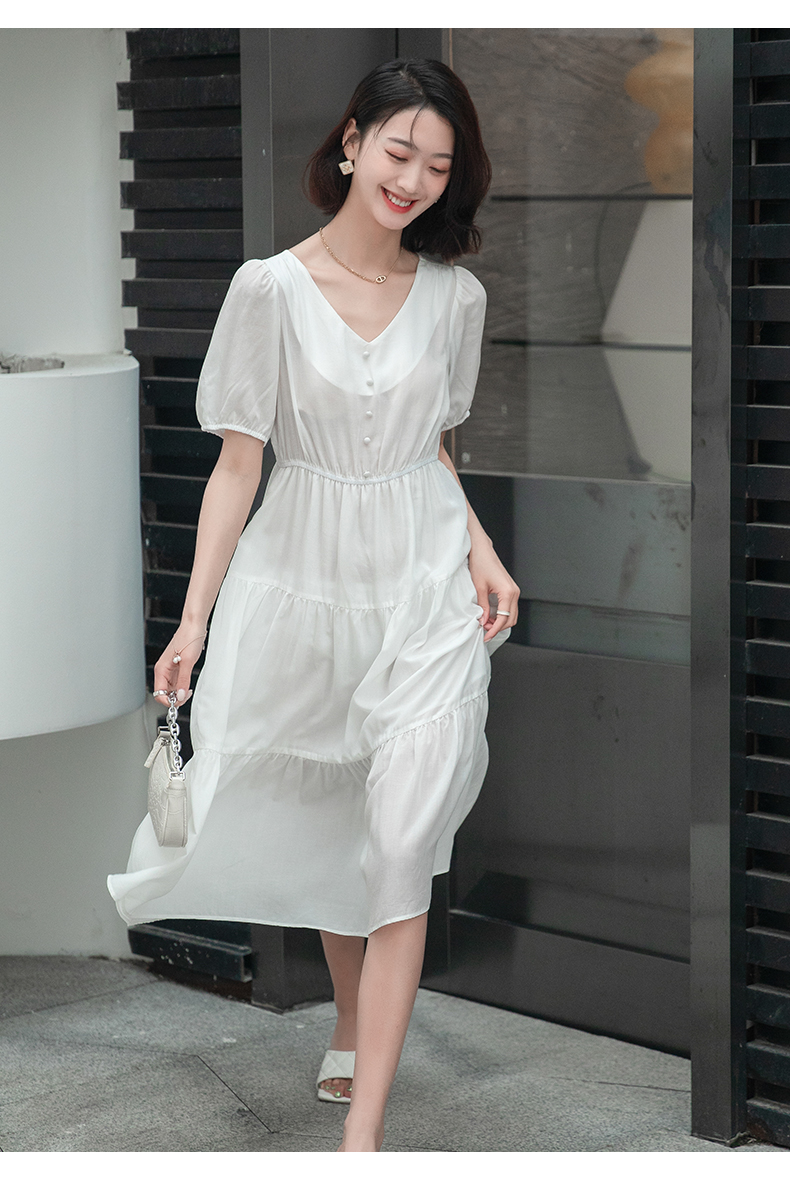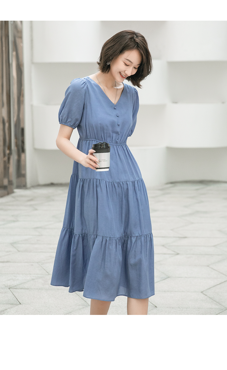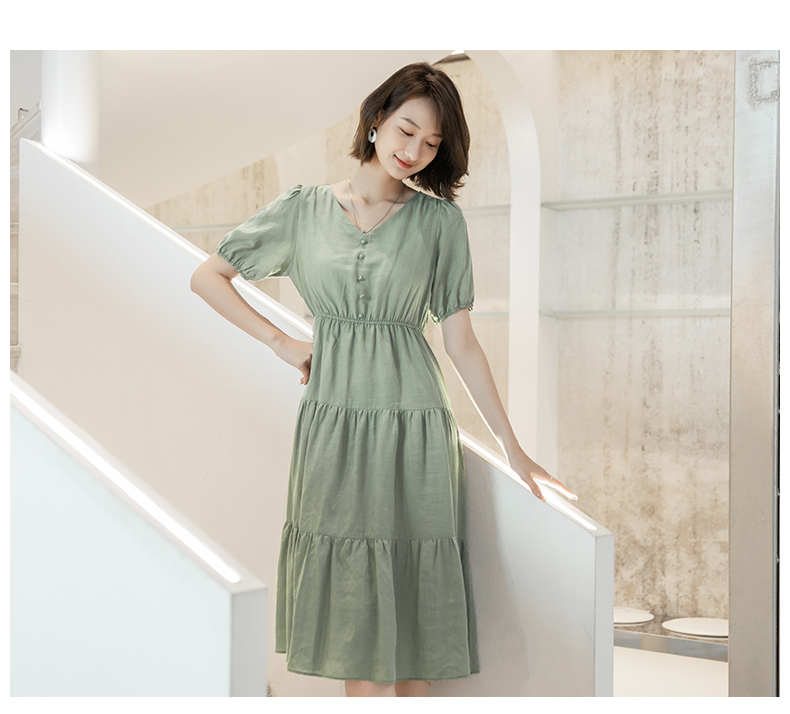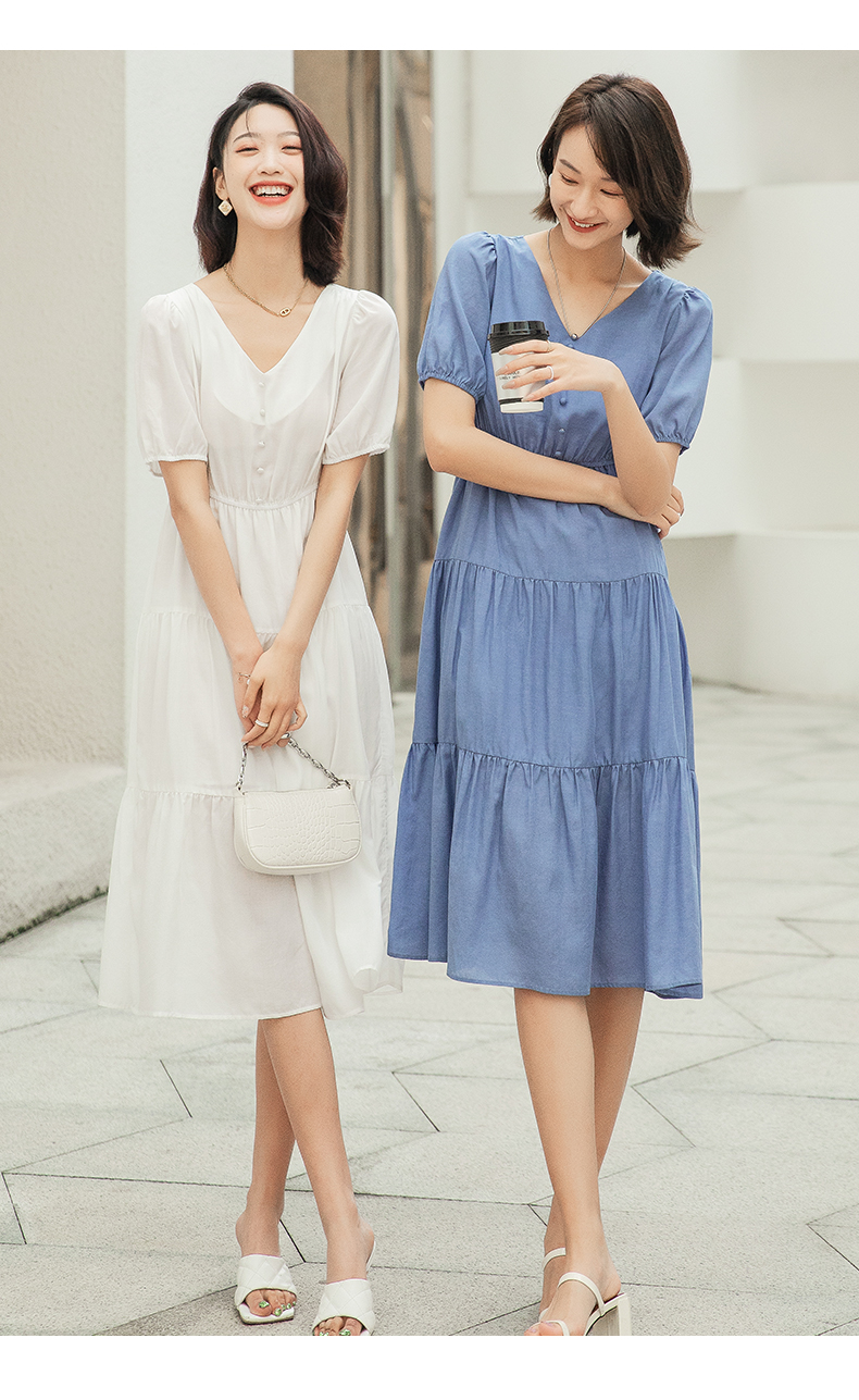 oldcolour欧珂夏季时尚褶皱仙女裙女法式茶歇连衣裙显瘦P23101419