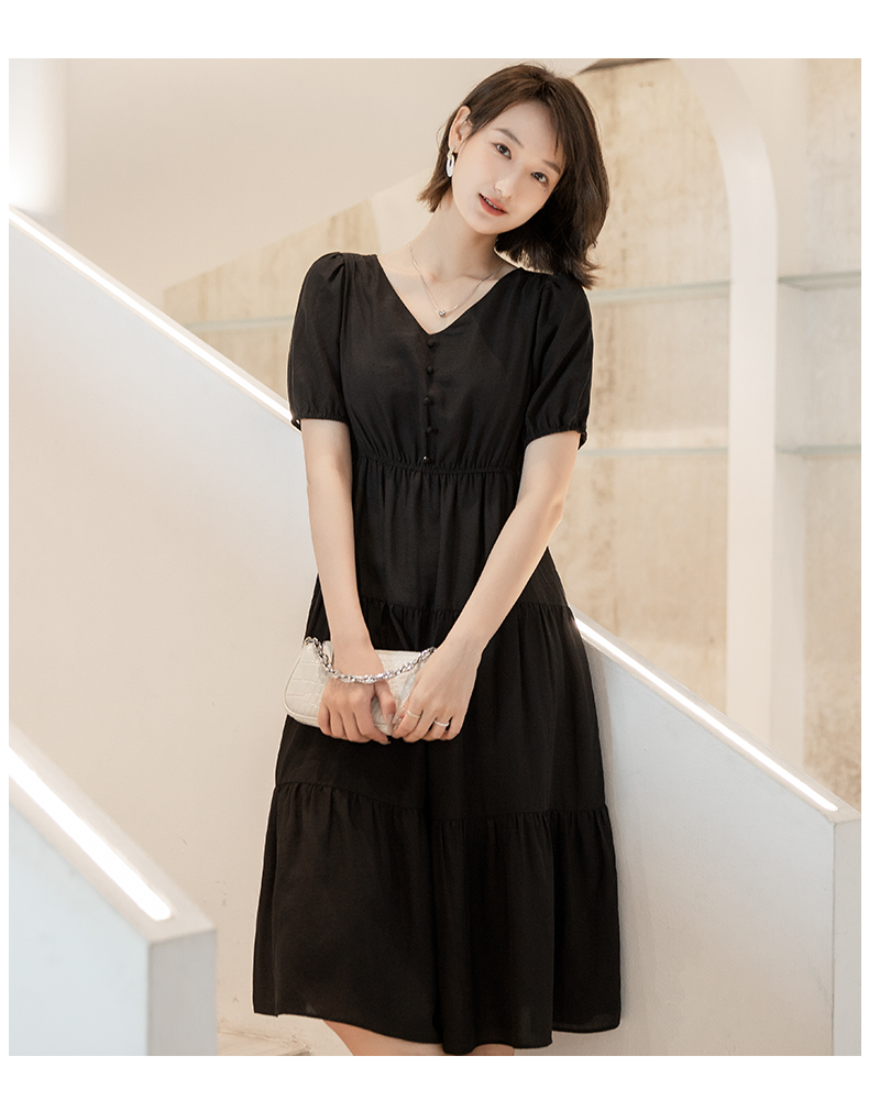 oldcolour黑色长袖连衣裙春季新款设计感小众气质两件套P12103407