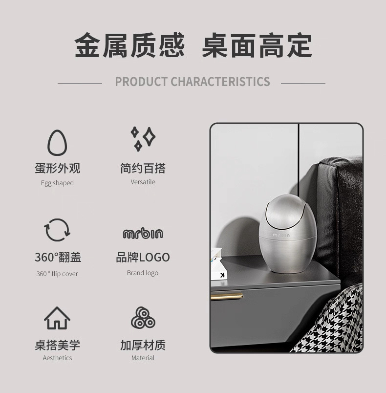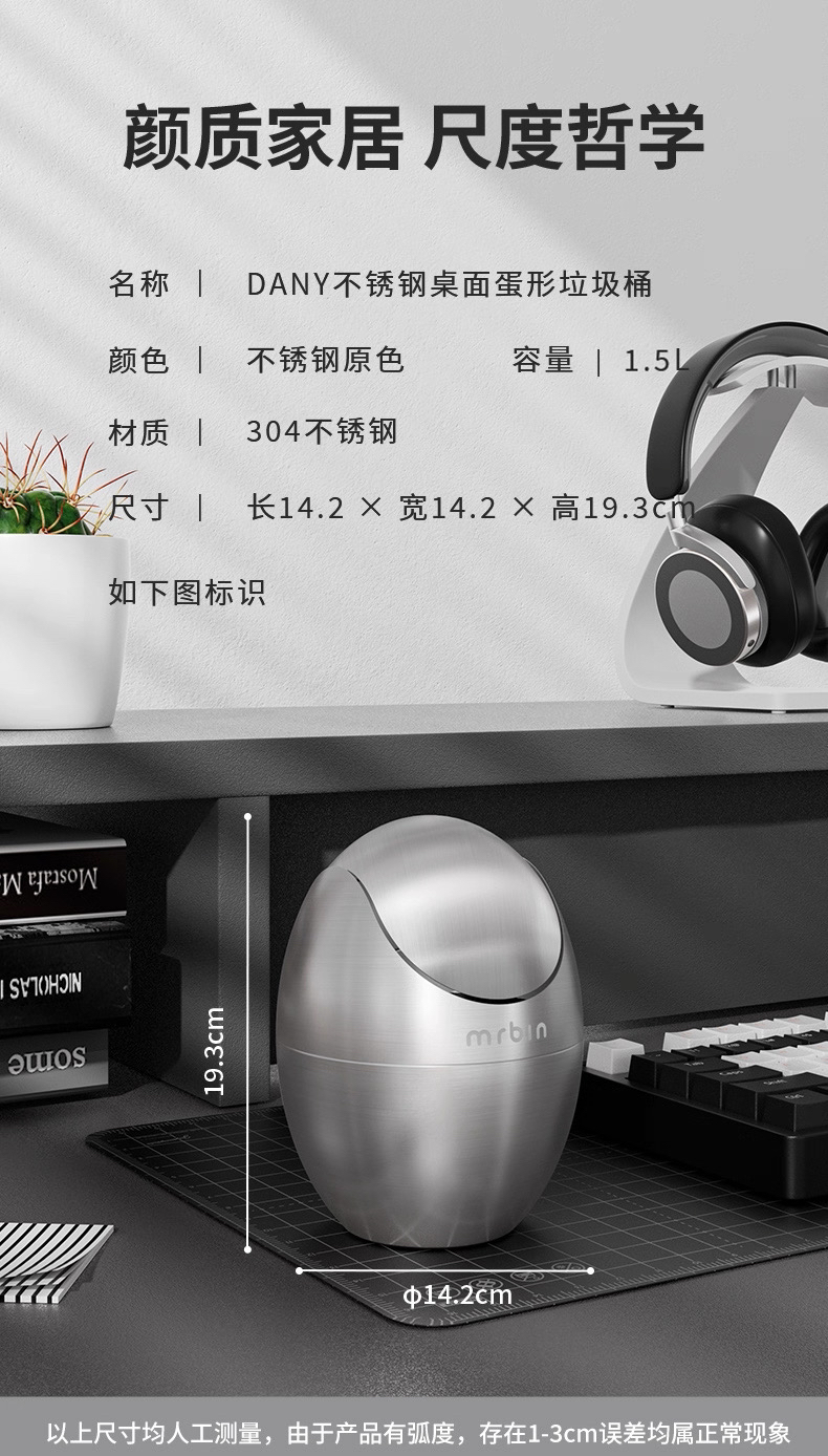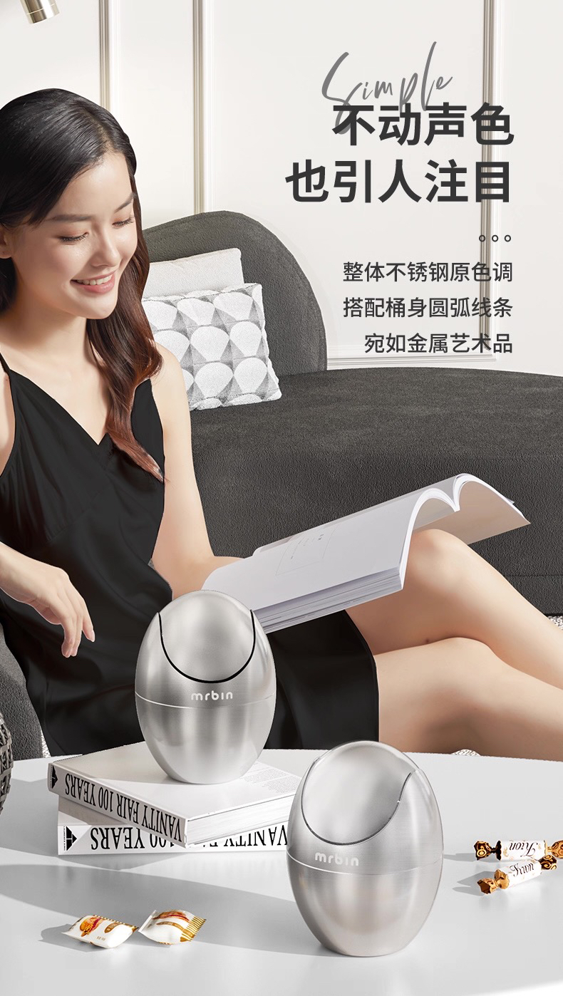 麦桶桶床头桌面垃圾桶高颜值个性创意不锈钢茶几卧室家用迷你小桶