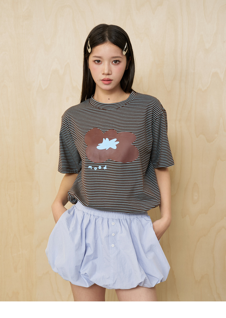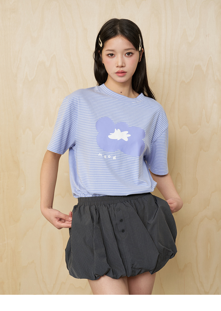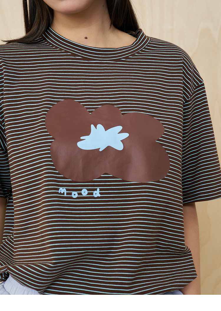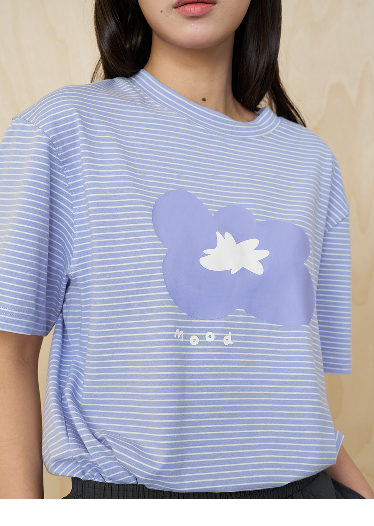 MoodLikeMe/MTX2509/花朵印花条纹短袖T恤