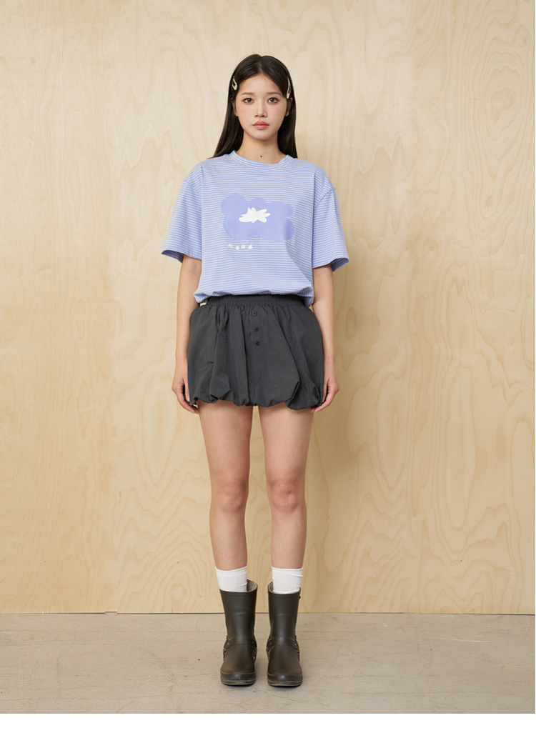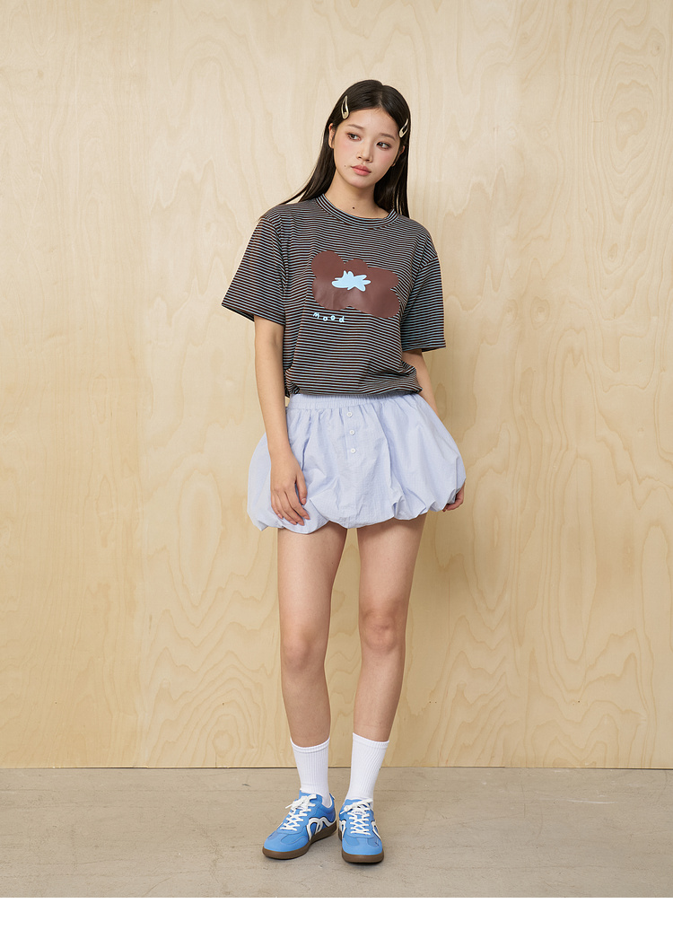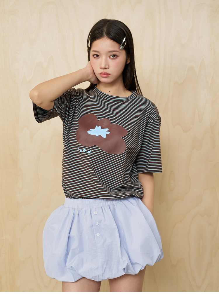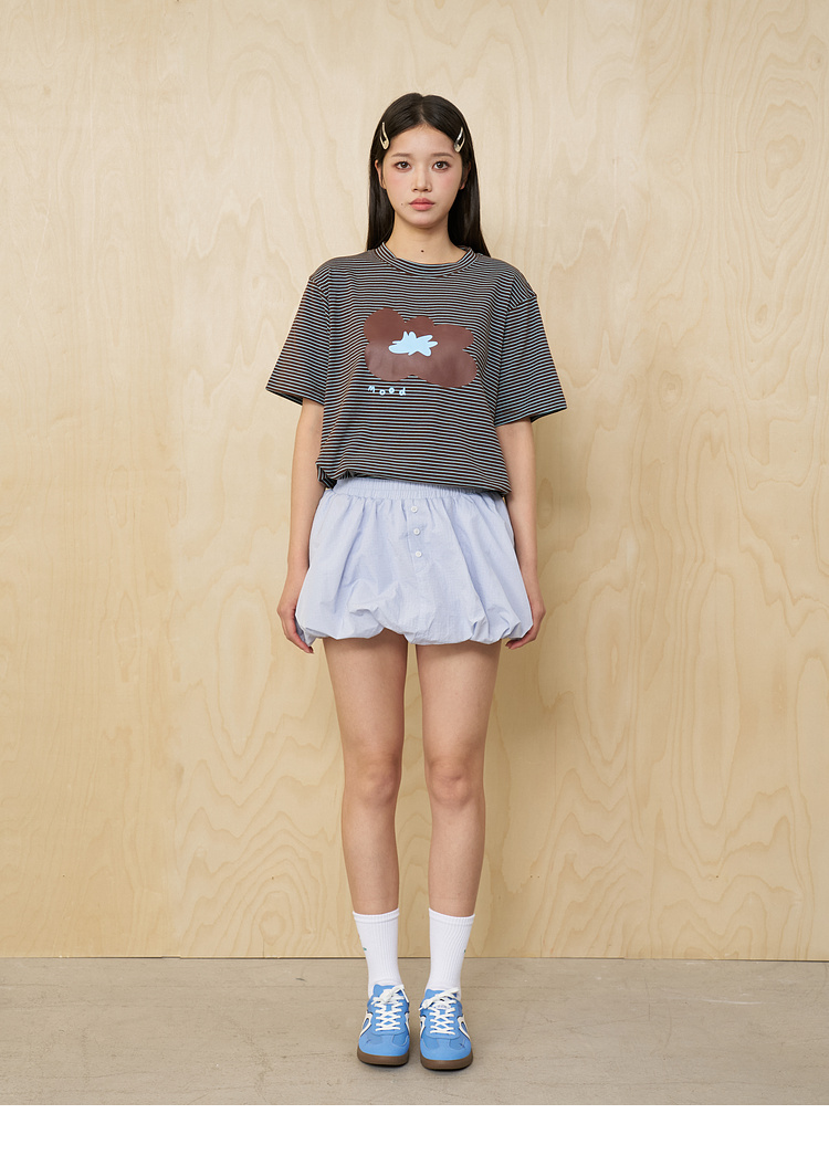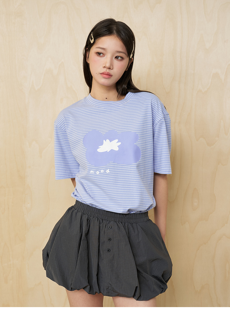 MoodLikeMe/MTX2509/花朵印花条纹短袖T恤
