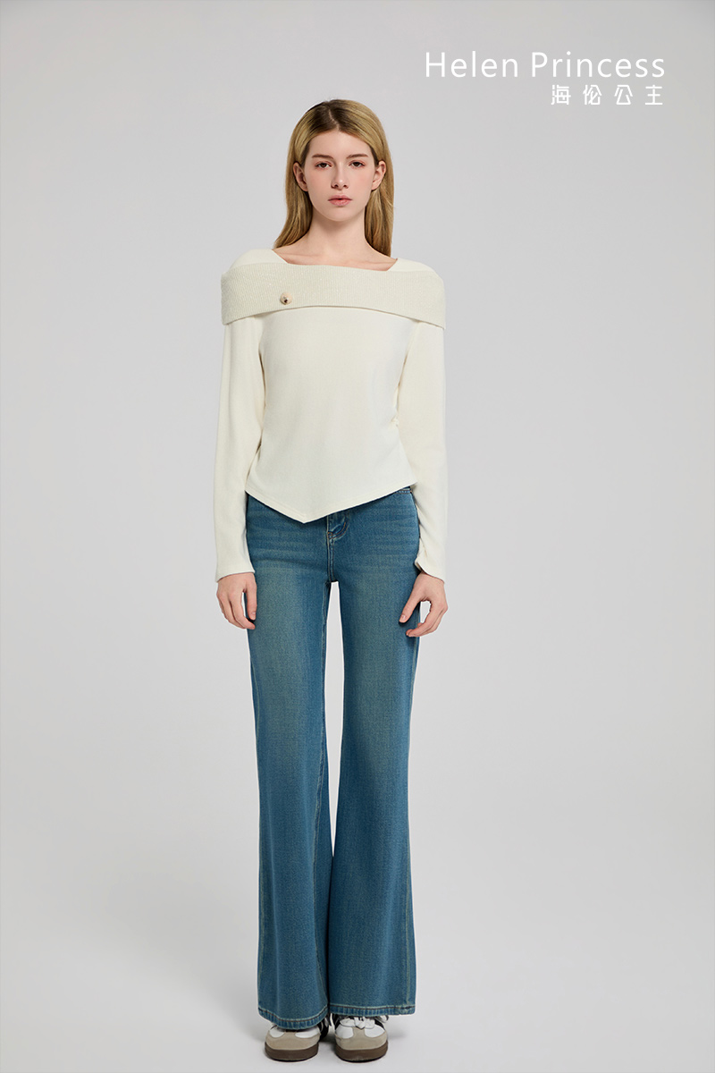 在一字肩基础上增加法式方领元素,展现锁骨纤细骨感美的同时可以更好的贴合肩部曲线。一字领采用细闪面料搭配小巧精美的扣饰,举手投足间闪耀美好时光。