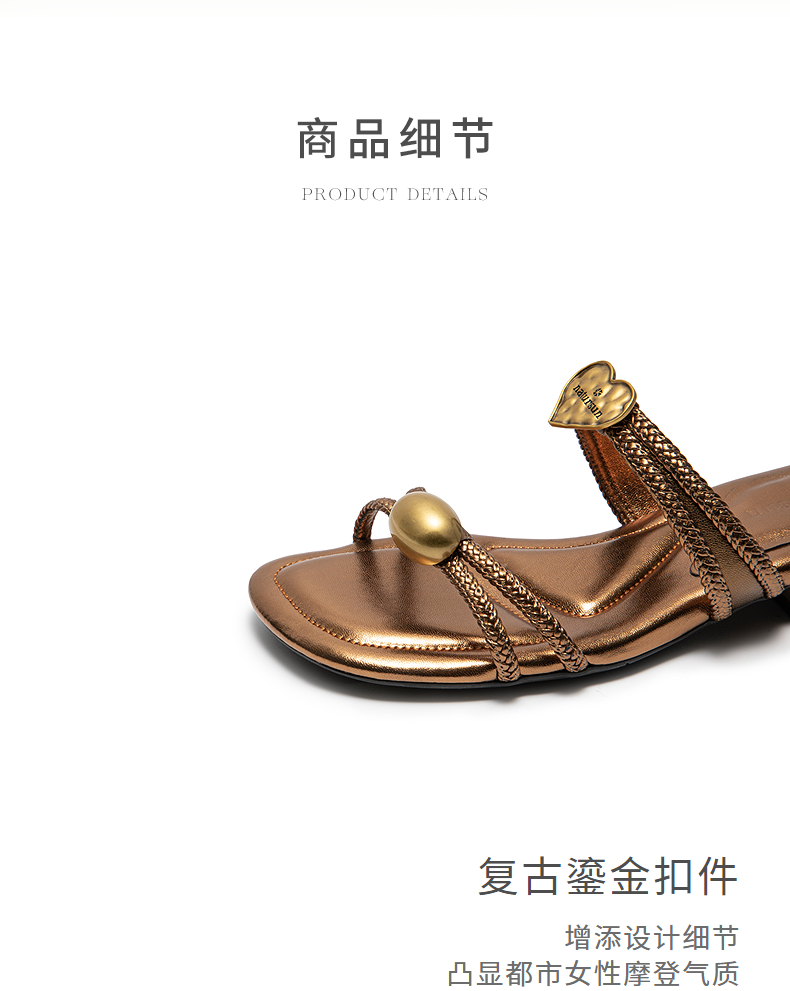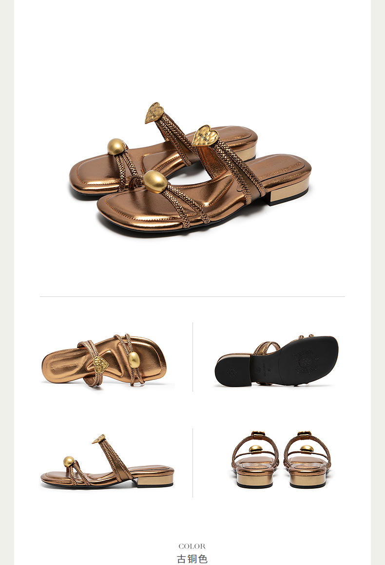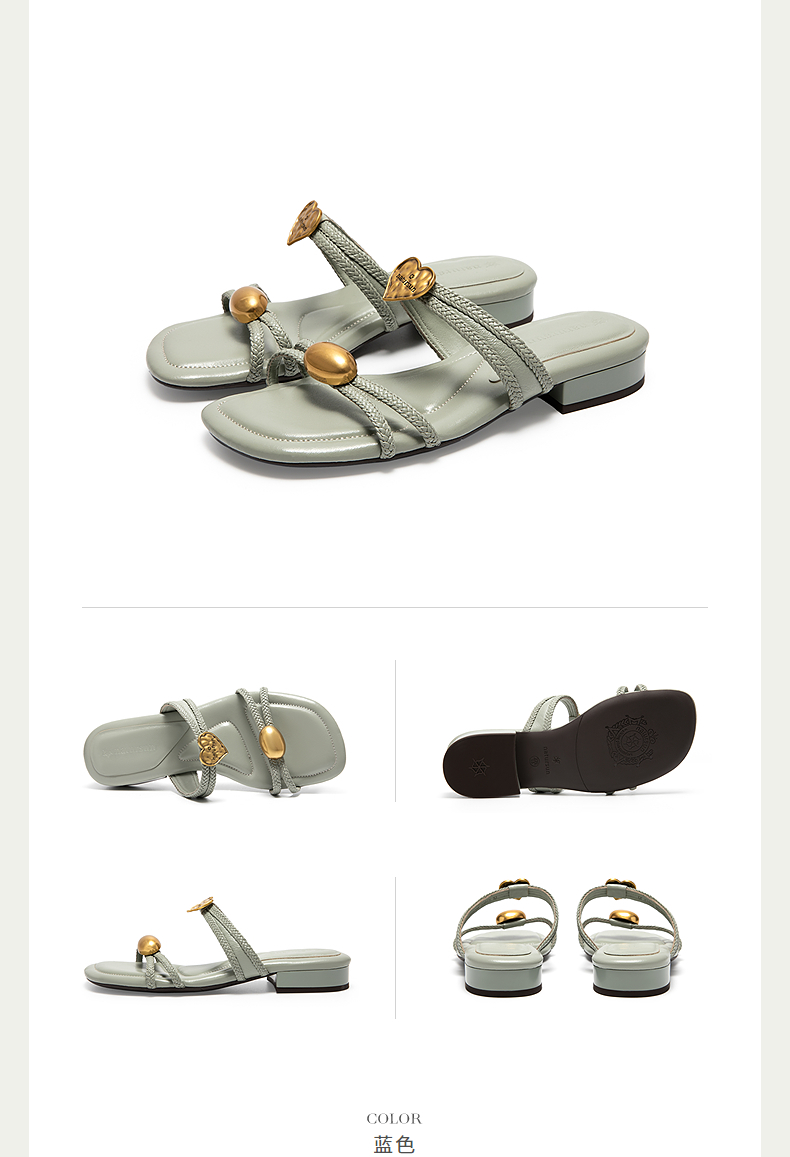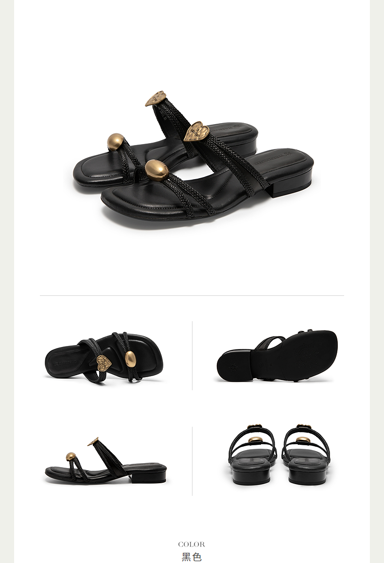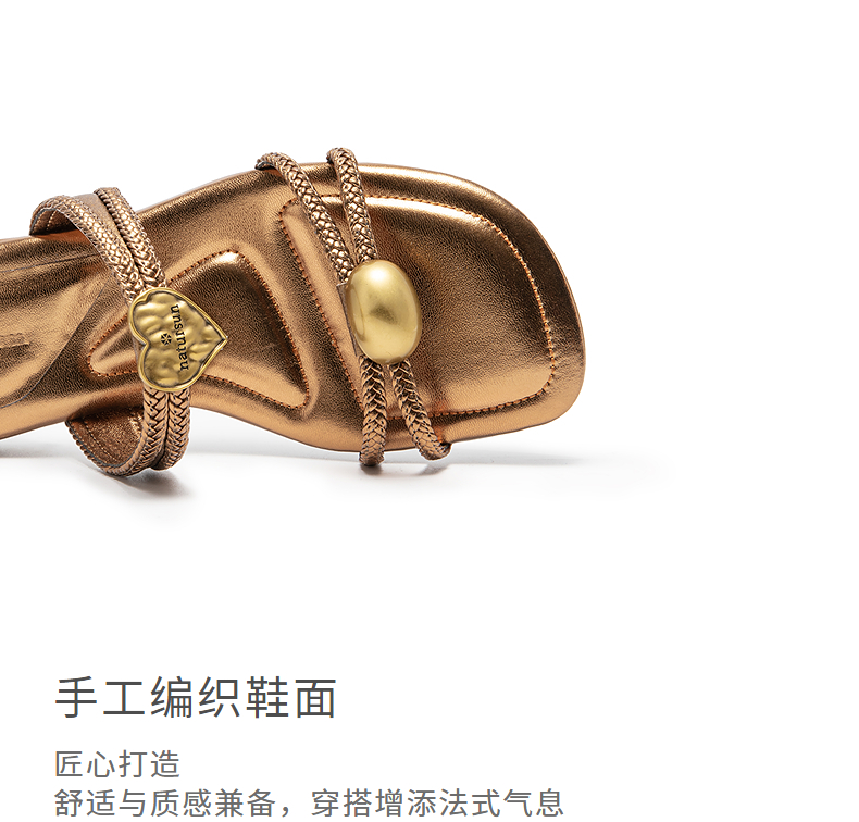 natursun平底沙滩鞋真皮编织拖鞋外穿一字带露趾凉鞋N25331205
