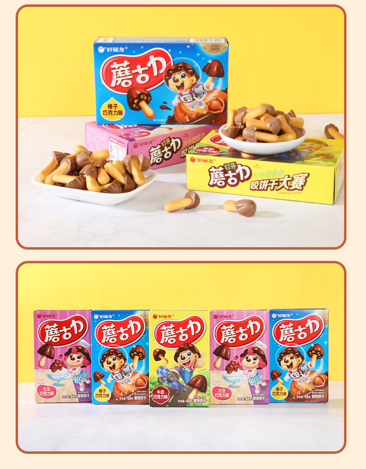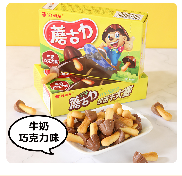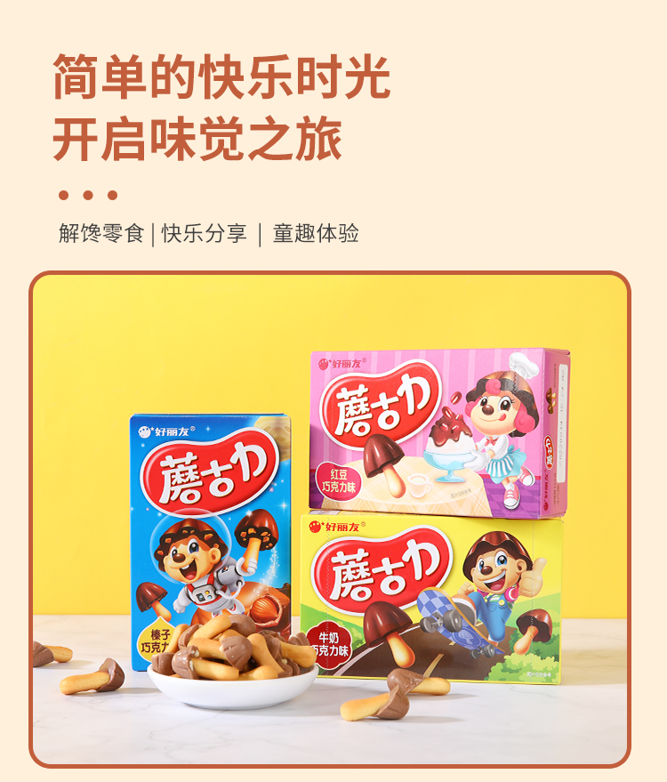 好丽友蘑菇力饼干巧克力蘑菇头儿童饼干小零食小吃休闲食品