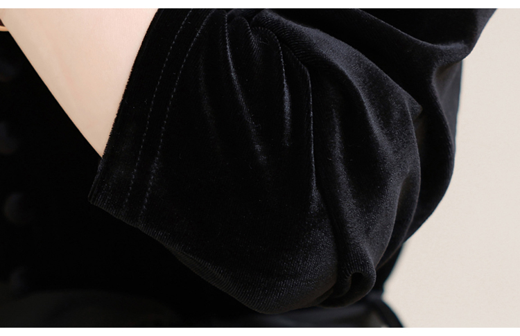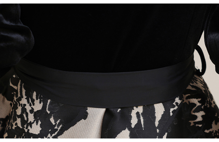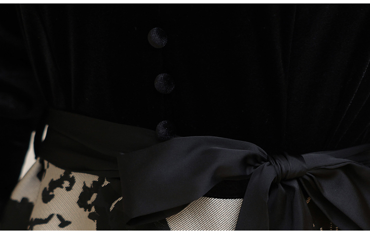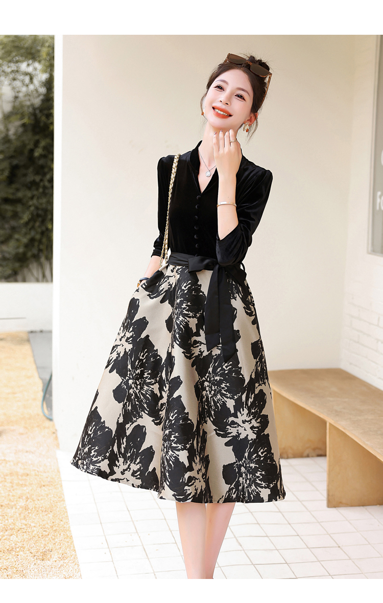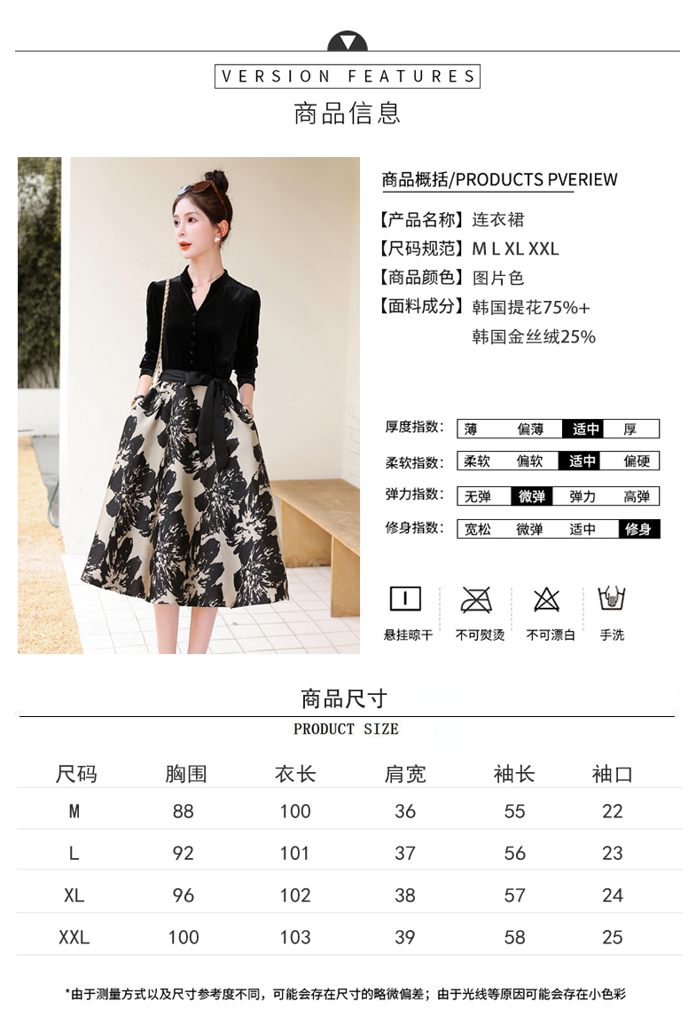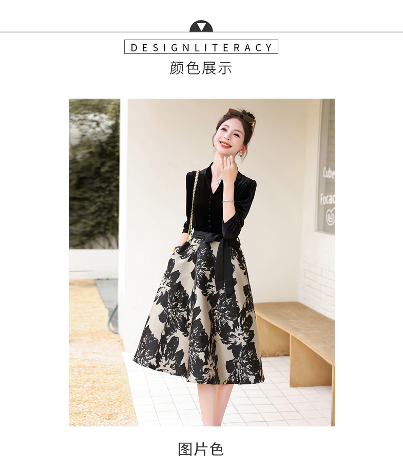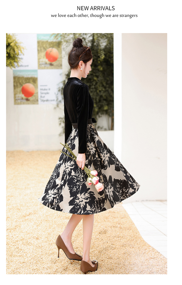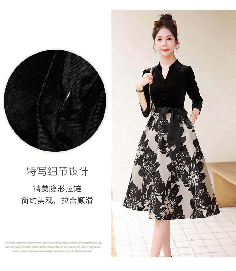 秋季新款,拼接单排多扣优雅气质水墨花朵显瘦长款连衣裙HR-JNFGN2805