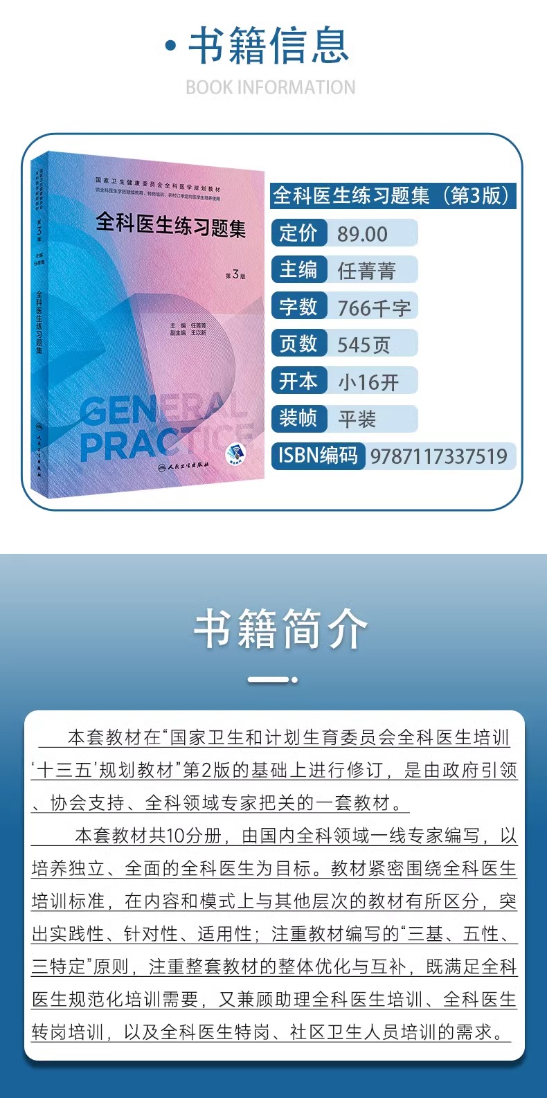 书名:【全2册】全科医学+全科医生练习题集(第3版)(国家卫生健康委员会全科医学规划教材)