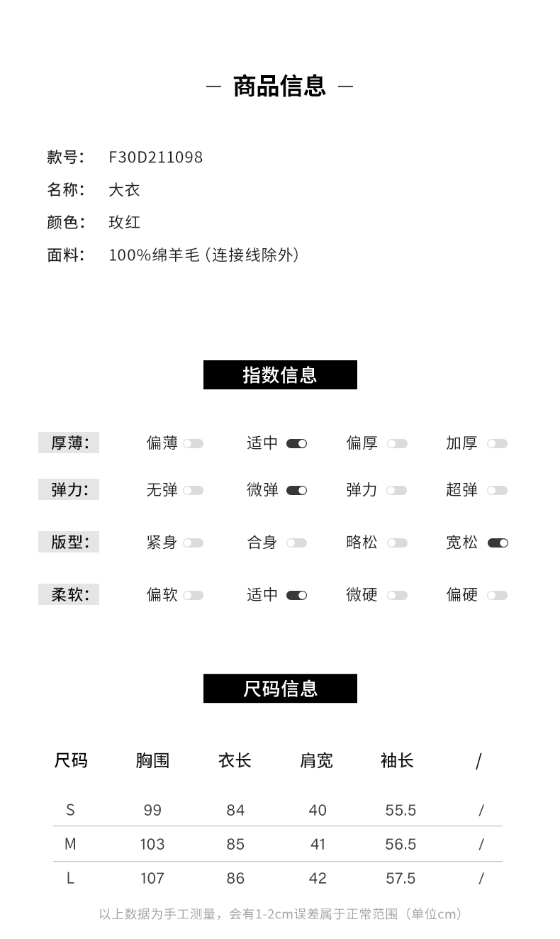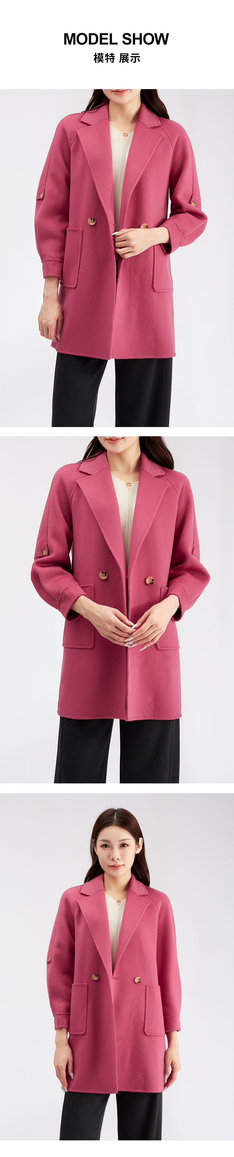 【商城同款】阿菁娜翻领粉色甜美气质显瘦绵羊毛大衣F30D211098