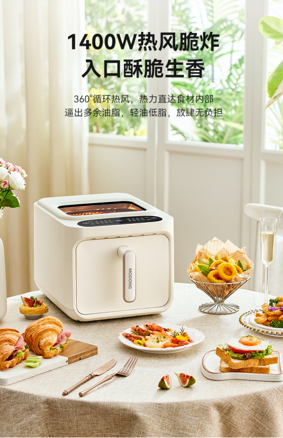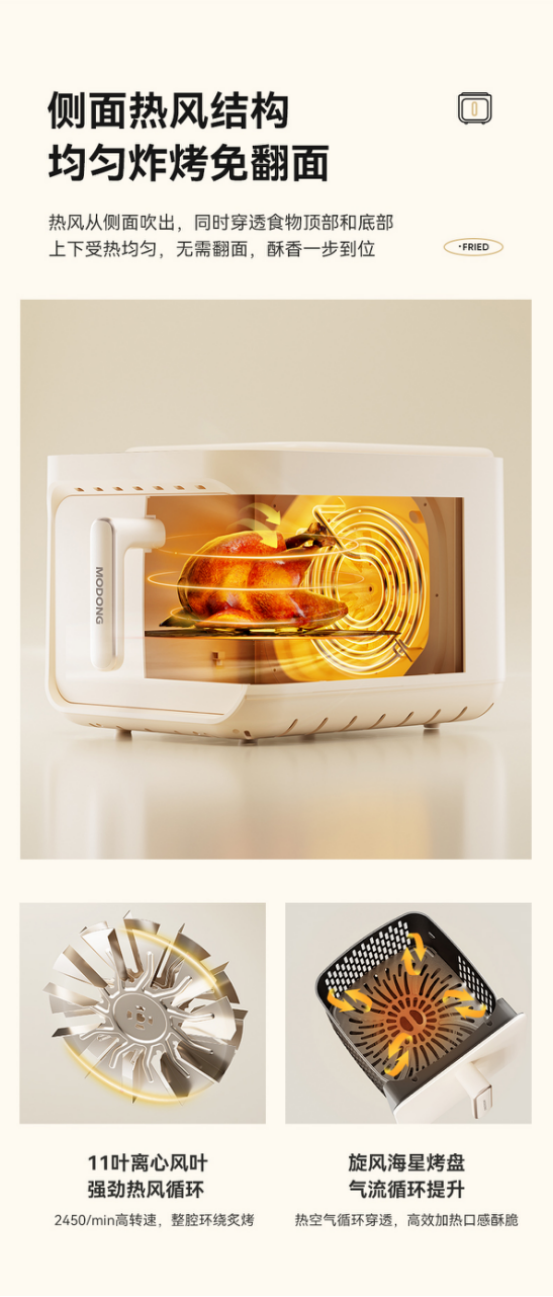 🔥【MODONG摩动可视蒸汽免翻面6L空气炸锅】💕它!来!!啦!!! ✅侧面吹风,无需翻面。食材均匀受热,🤗不用翻面也能美味出锅 ✅6L欢聚容量,上下双层同时烤,🉑轻松放整鸡,容纳更多美味,