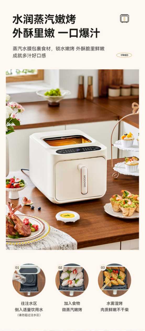 蒸汽烤/热风炸,双口感随心切换 水润蒸汽嫩烤,外酥里嫩一口爆汁!