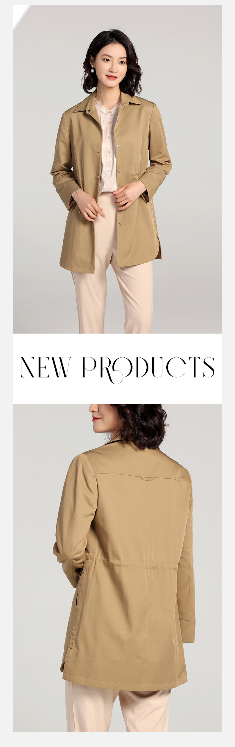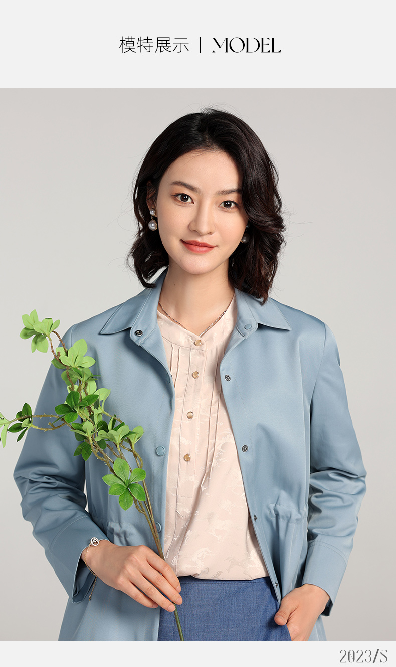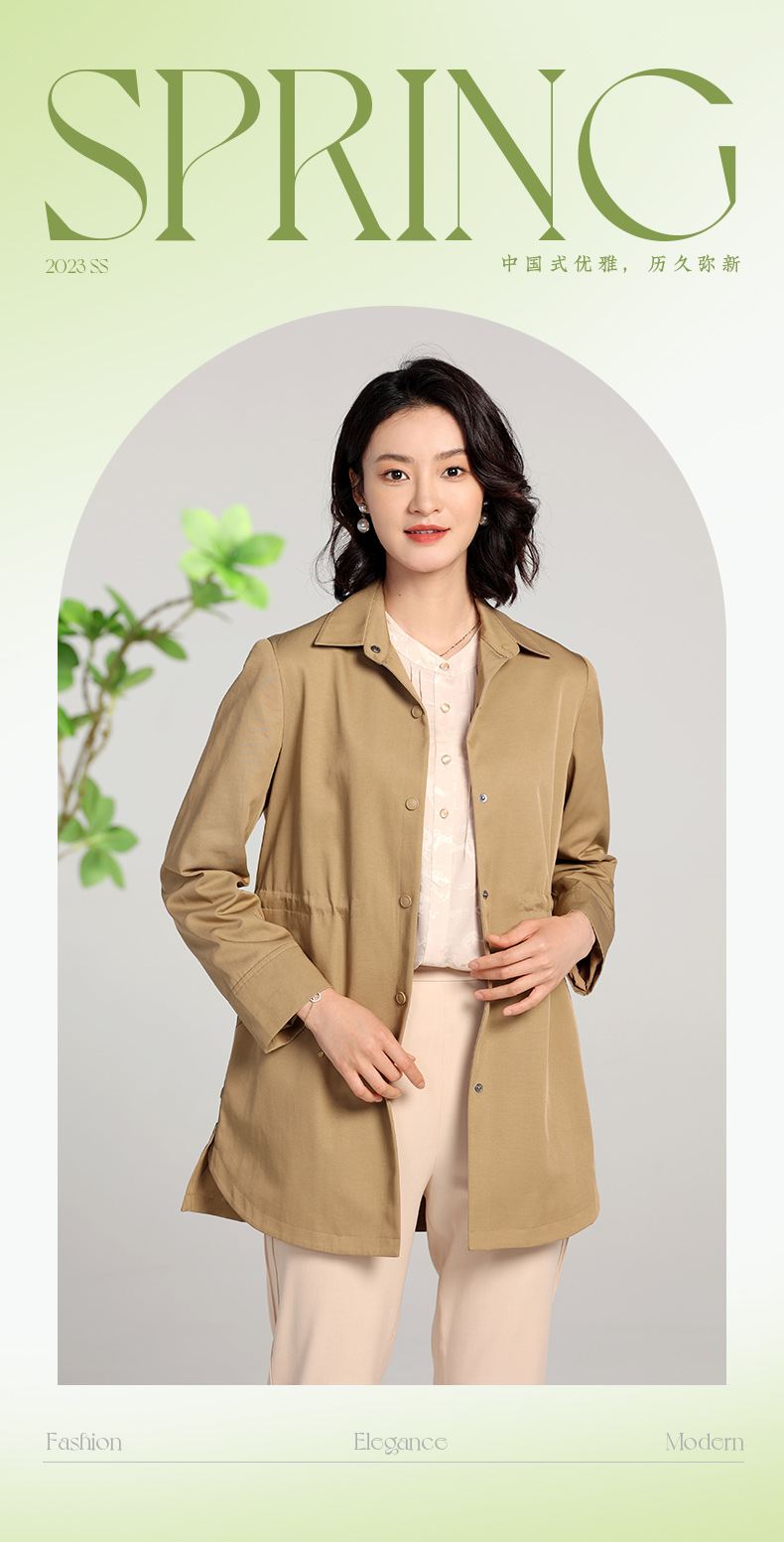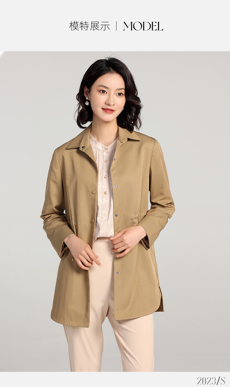 佐尔美2023春季新款 经典简约百搭收腰中长风衣女E23FZ08