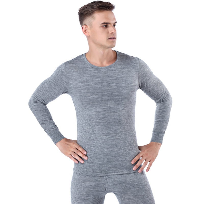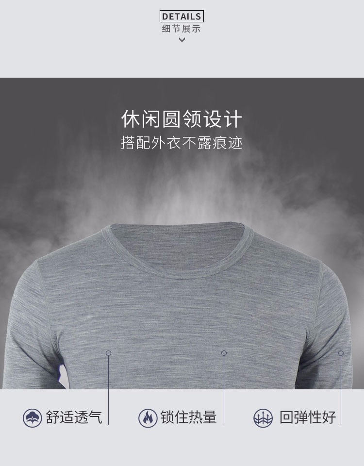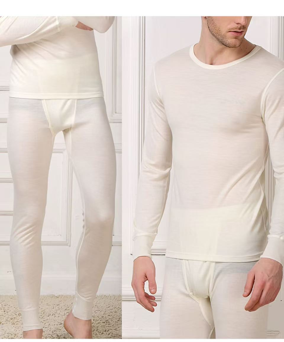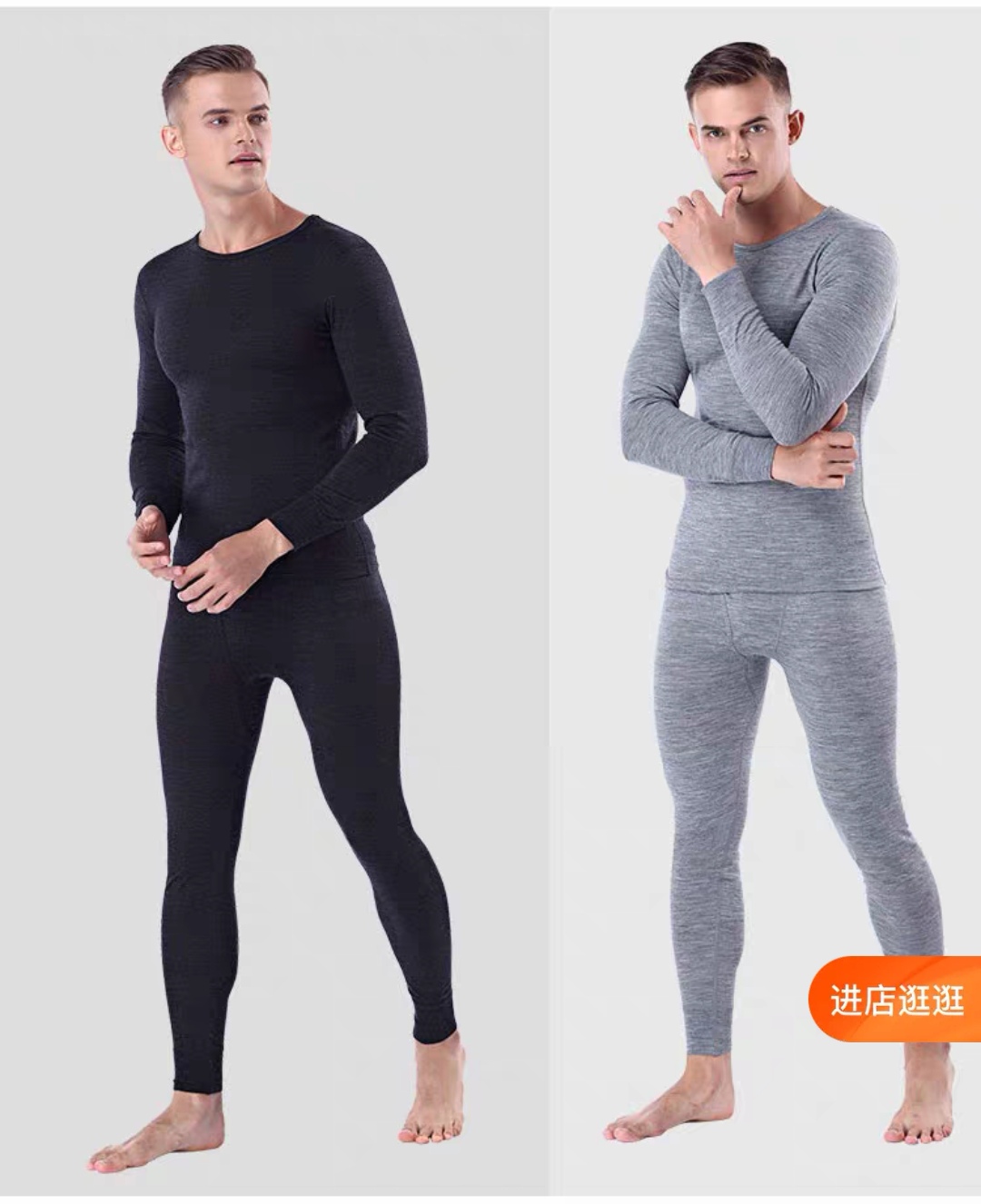【美丽诺可机洗羊毛】SCHIESSER德国舒雅男式圆领纯羊毛长袖长裤套装保暖35/16389W