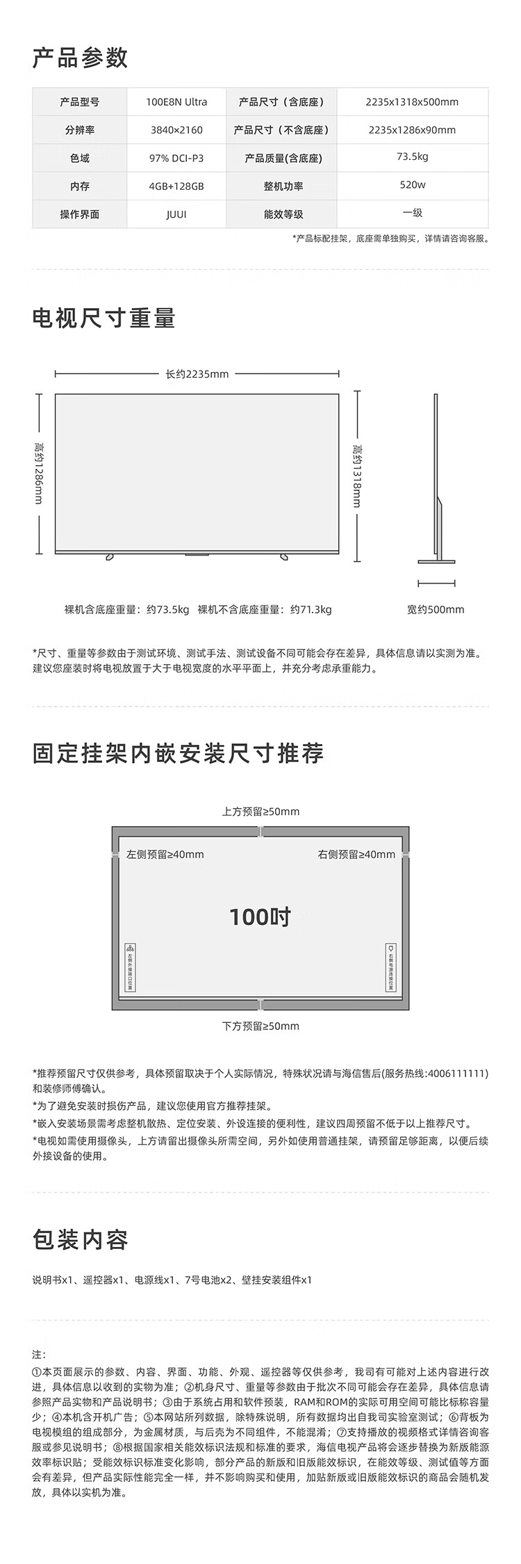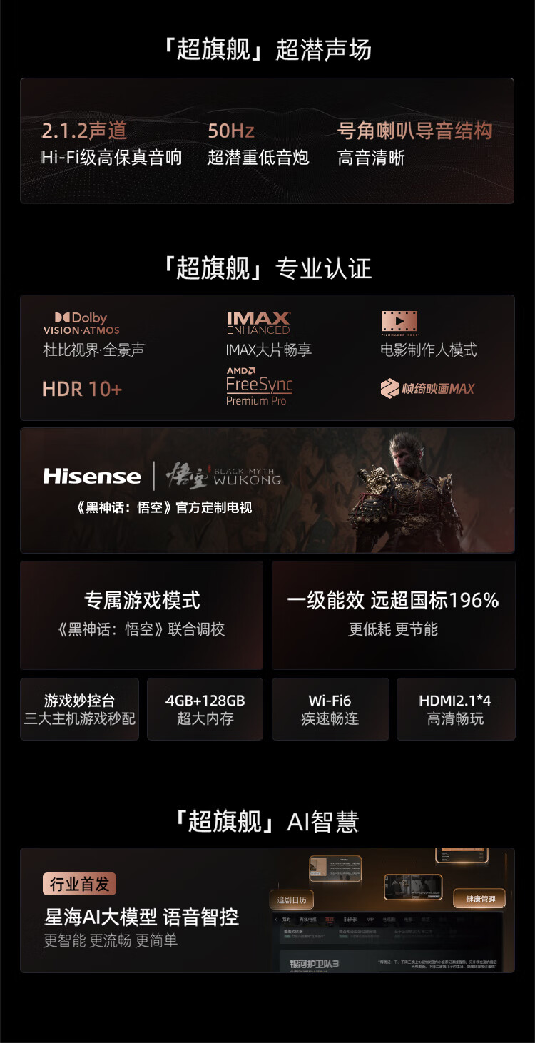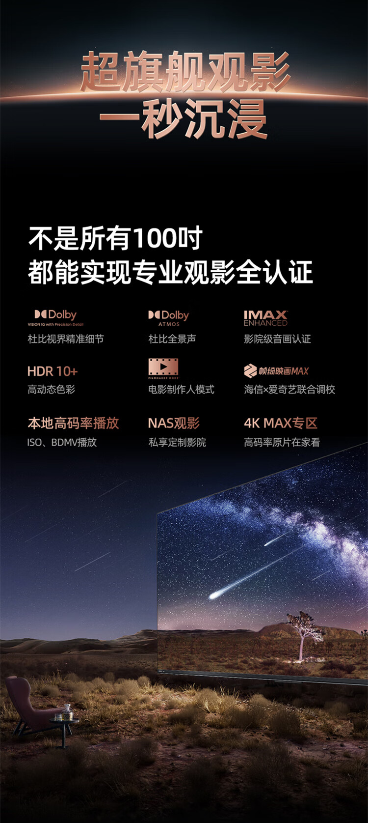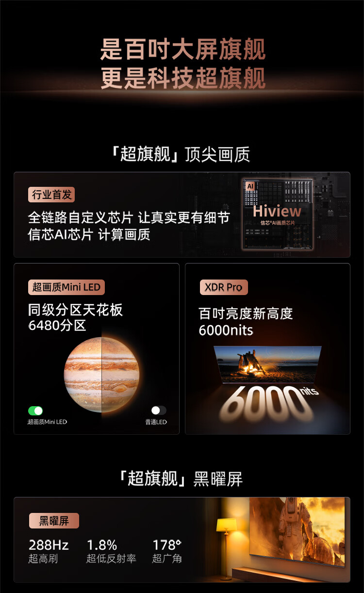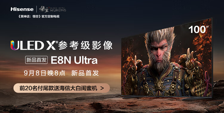 海信电视100E8N Ultra 100英寸ULED超画质6480分区Mini LED超薄大屏 以旧换新能效补贴 黑神话悟空游戏