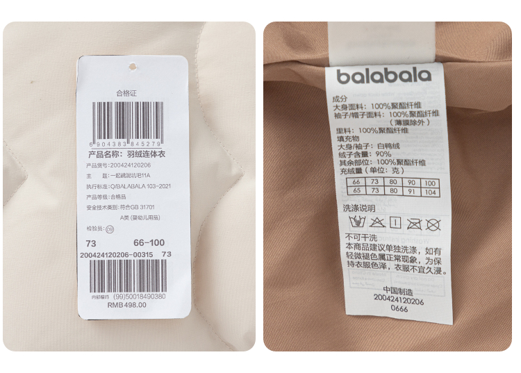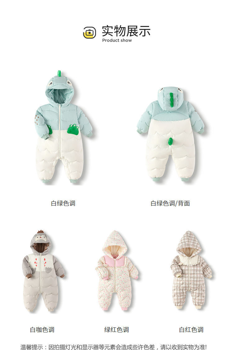 巴拉巴拉儿童羽绒连体衣宝宝男女童保暖造型萌趣可爱时尚洋气俏皮
