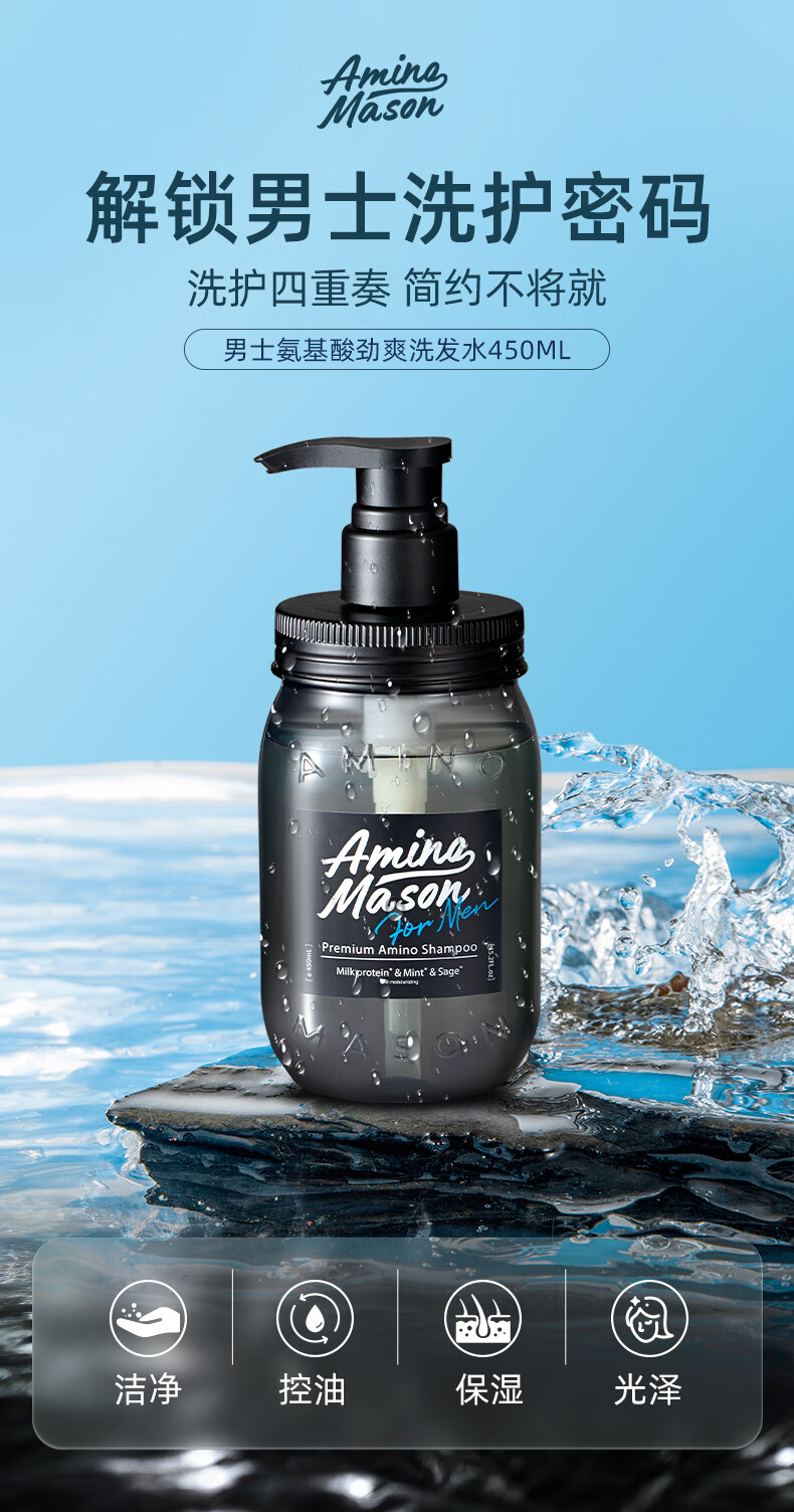Amino Mason阿蜜浓梅森 甄选男士氨基酸劲爽洗发水450ml