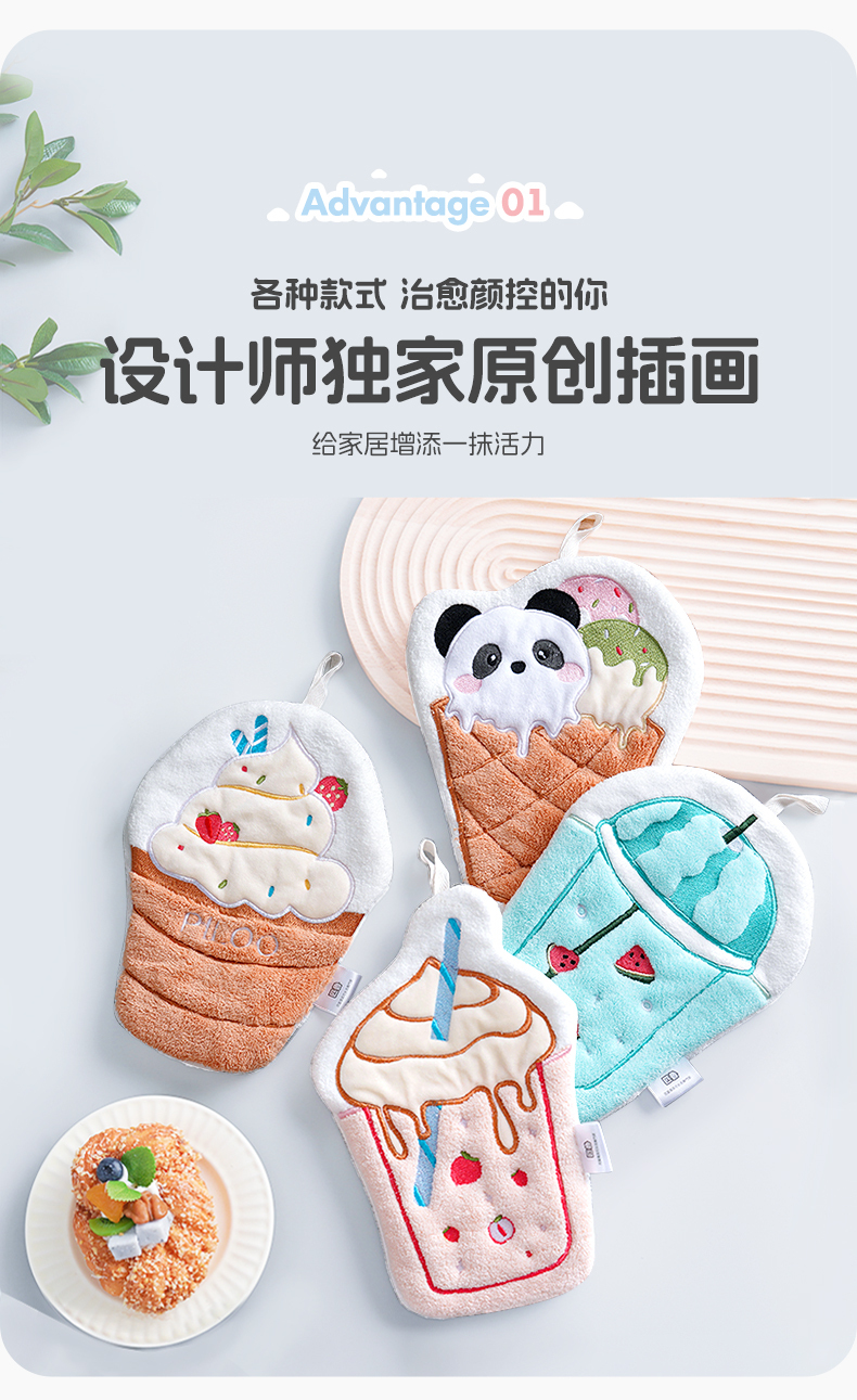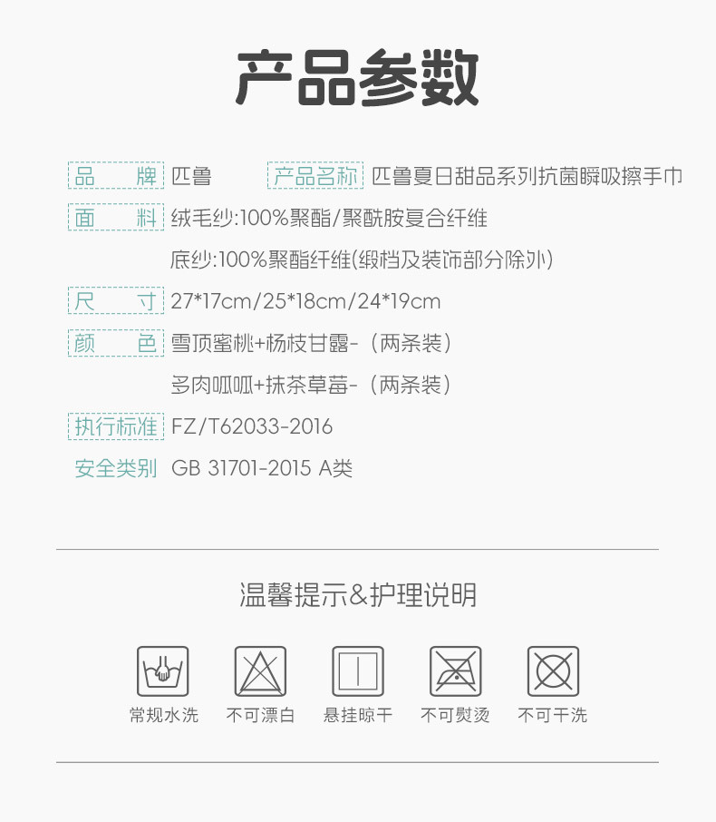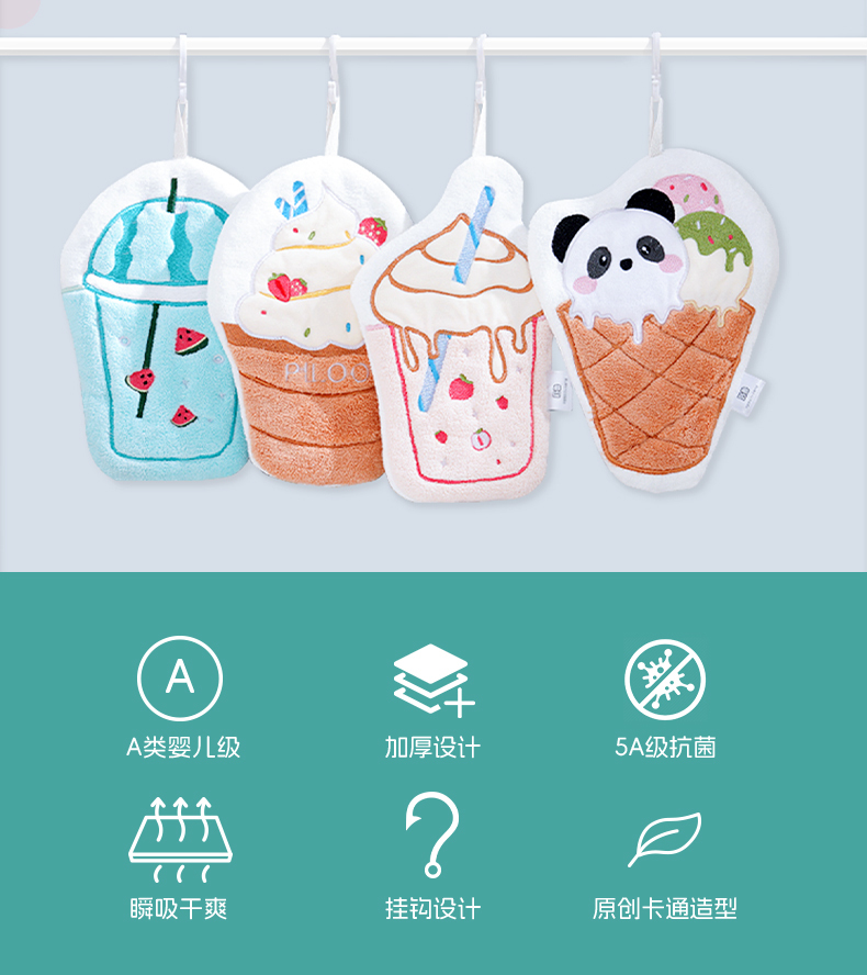 匹鲁夏日饮品系列瞬吸擦手巾挂式可爱卡通吸水巾单条装两条装