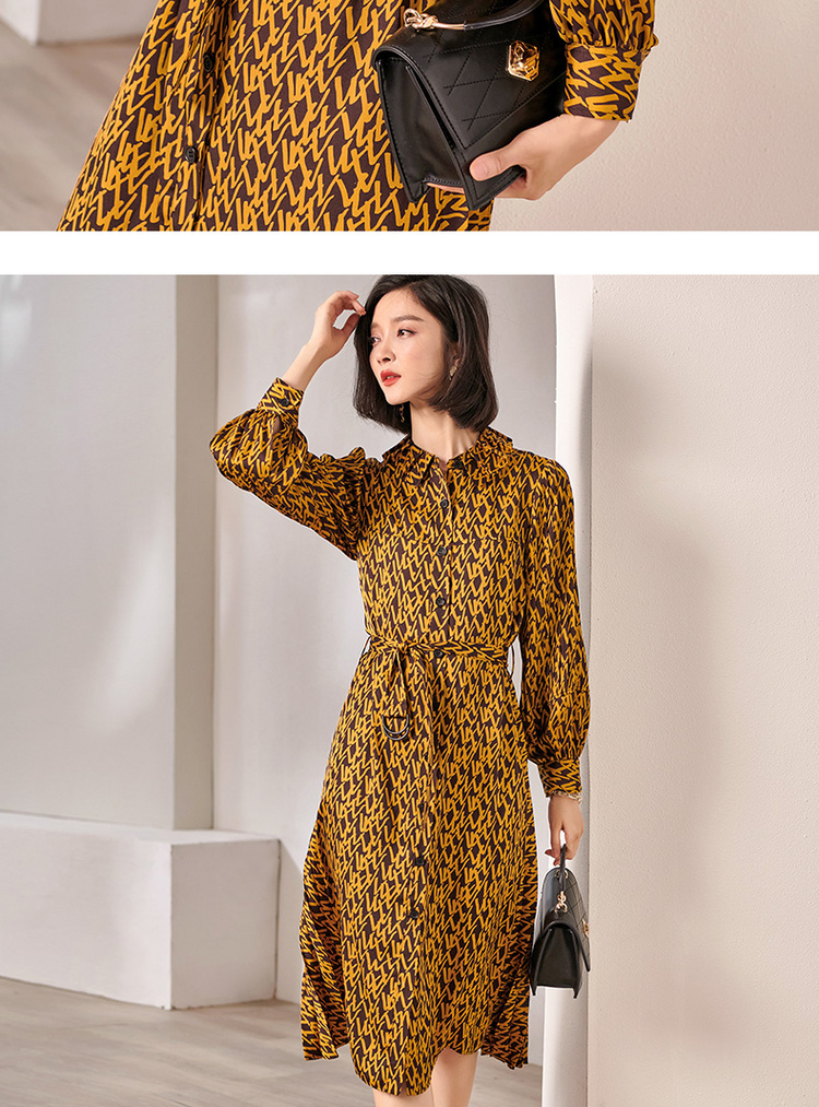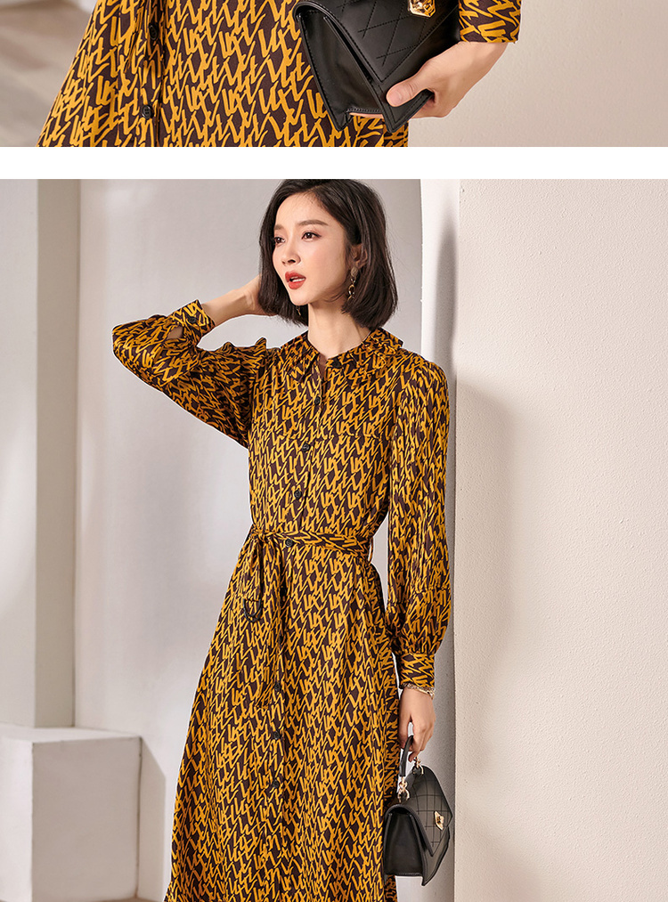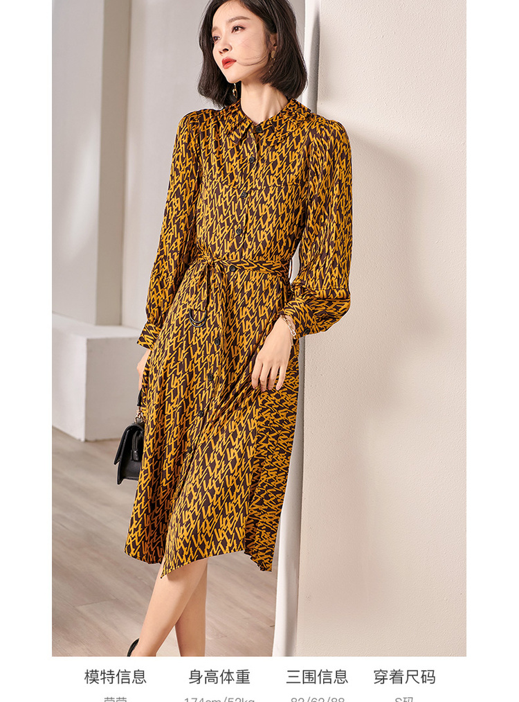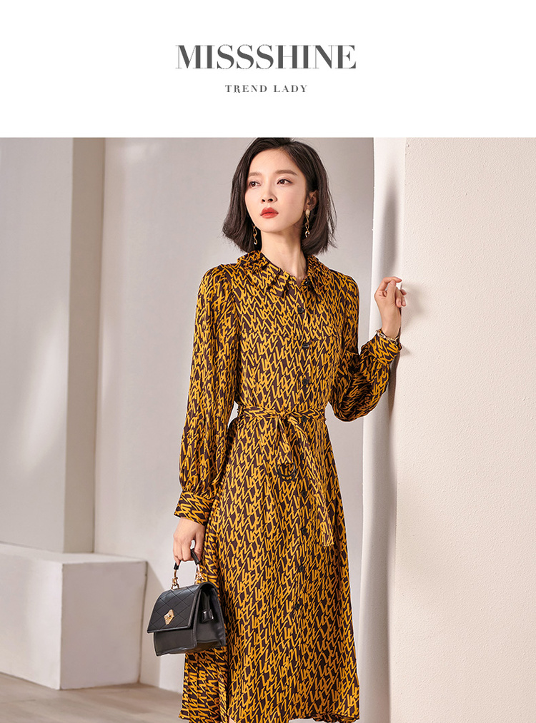 剩S/M 米思阳雪纺连衣裙女2025秋装新款收腰显瘦气质修身衬衫长袖裙子