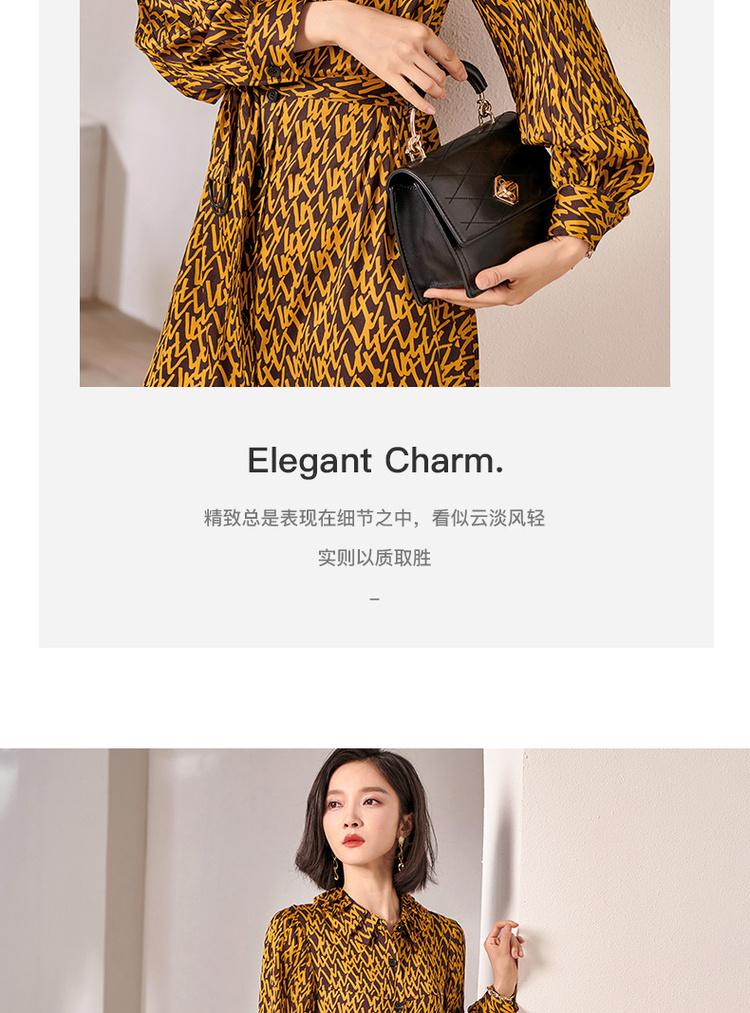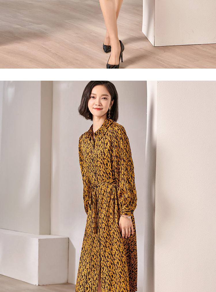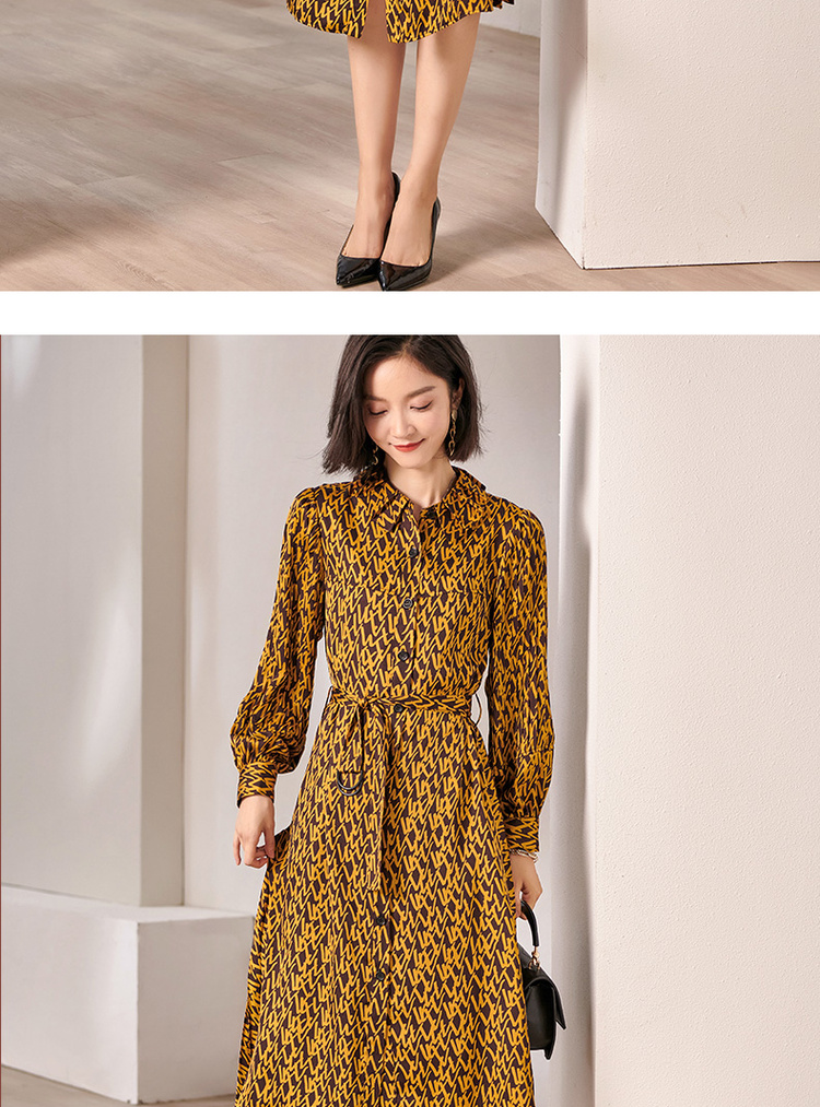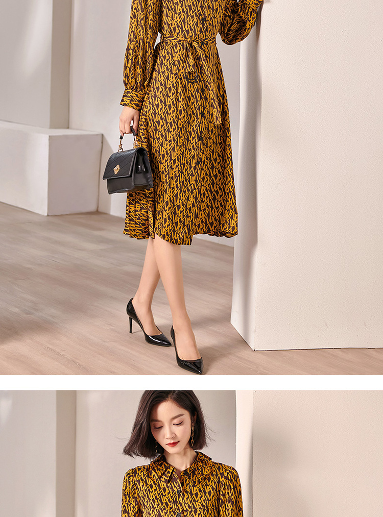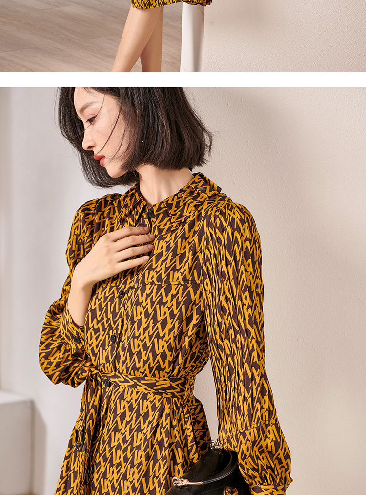 剩S/M 米思阳雪纺连衣裙女2025秋装新款收腰显瘦气质修身衬衫长袖裙子