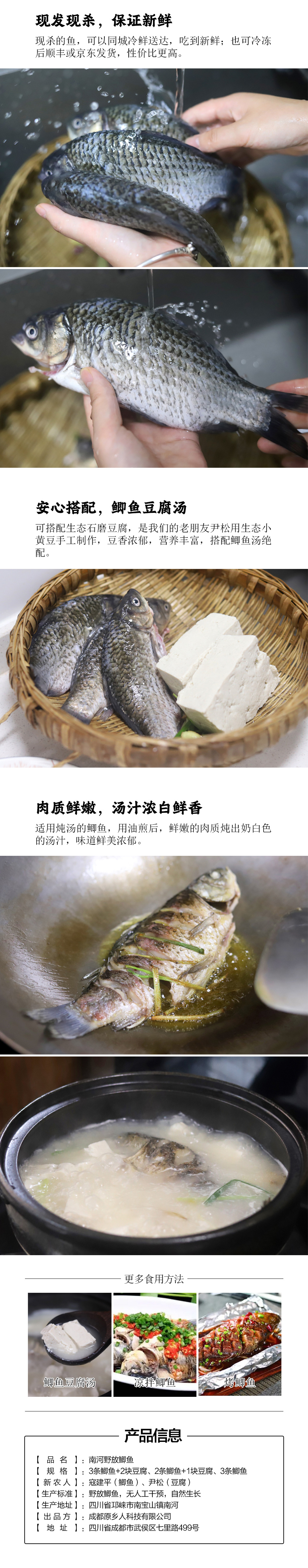 【品名】:南河野放鲫鱼 【规格】:3条鲫鱼+两块豆腐、3条鲫鱼、2条鲫鱼+1块豆腐 【重量】:鲫鱼250g/条、豆腐500g/块 【新农人】:寇建平(鲫鱼)、尹松(豆腐) 【生产标准】:野放鲫鱼,无人工干预,自然生长 【生产地址】:四川省邛崃市南宝山镇南河 【售后说明】: 1.生鲜请签收后及时食用或者存放冰箱,如有问题,8小时内尽快售后,提供包装及货损照片。 2.石磨老豆腐,运输可能会稍微变渣,不影响食用跟口感,属于正常现象。 3.成都同城配送的鲫鱼泡沫箱装水发,鲜活发出,两小时左右能收到,收到可能出现死亡情况,属于正常现象,保鲜不保活。 |